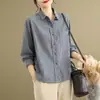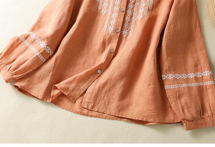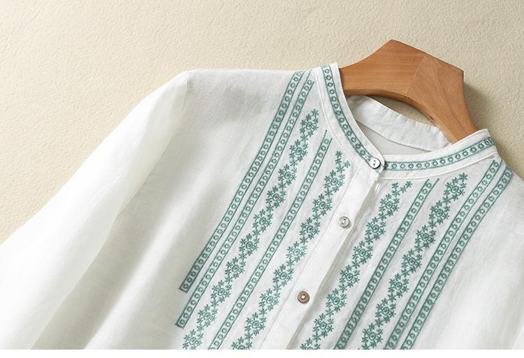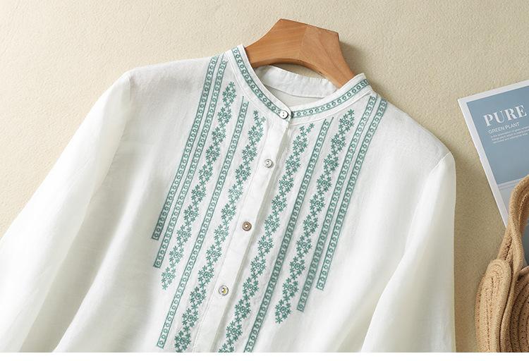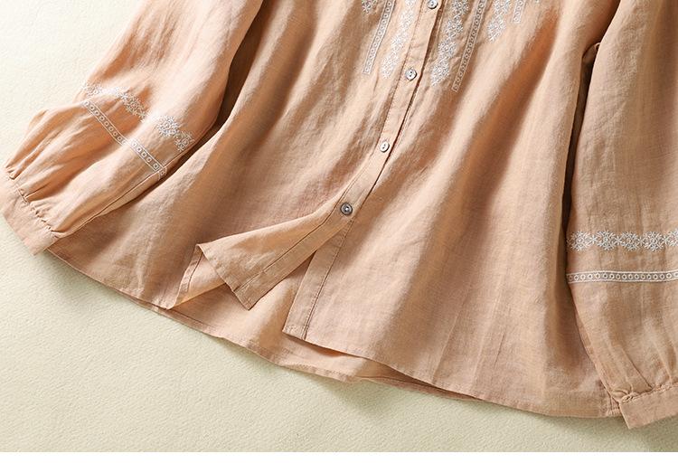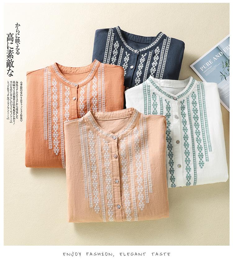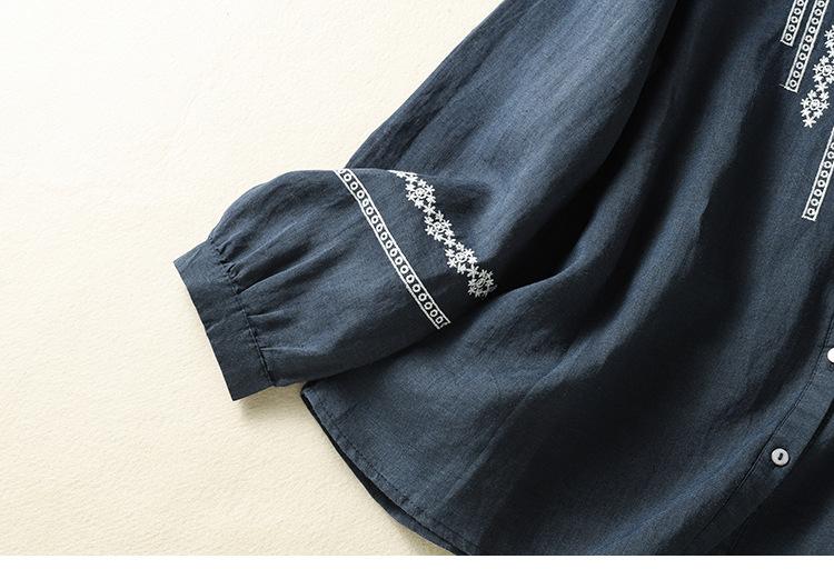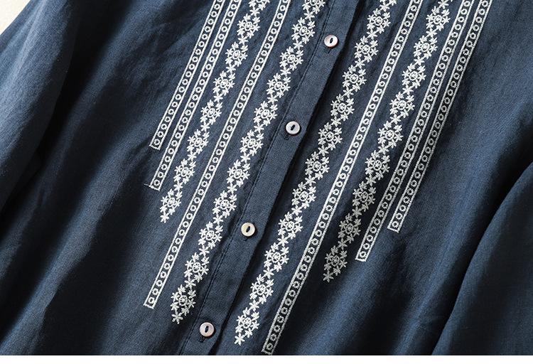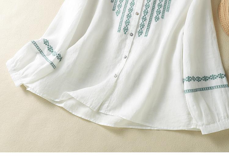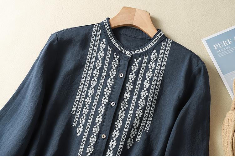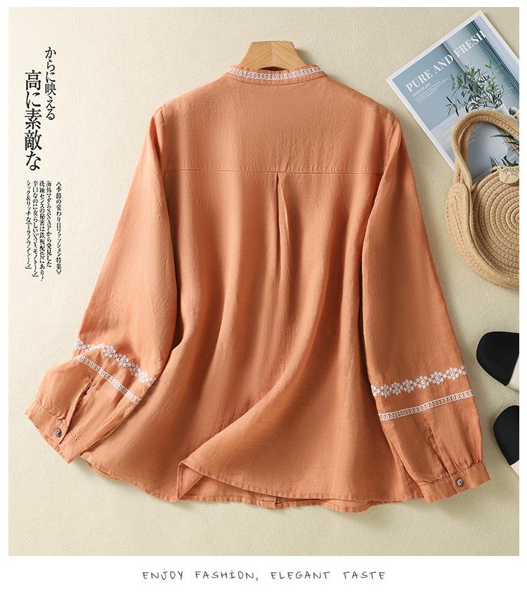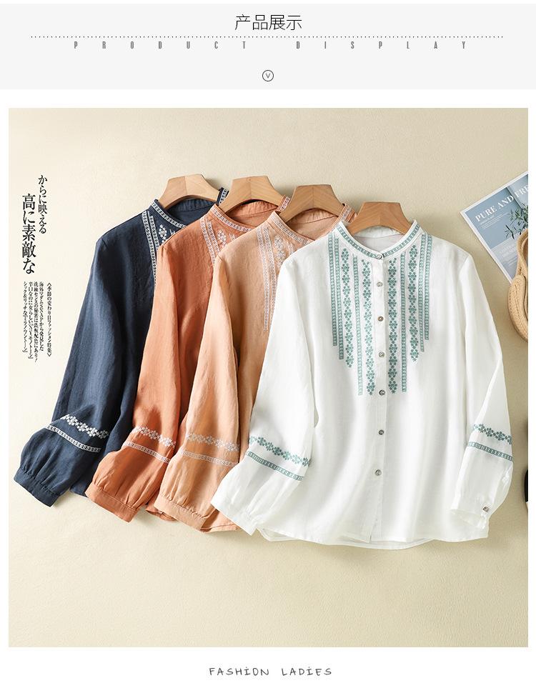 Foto Real Primavera y Otoño 2025 Nueva Bordado Simple Camisa de Manga Larga Mujer Literaria Retro Top Mujer Versátil