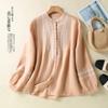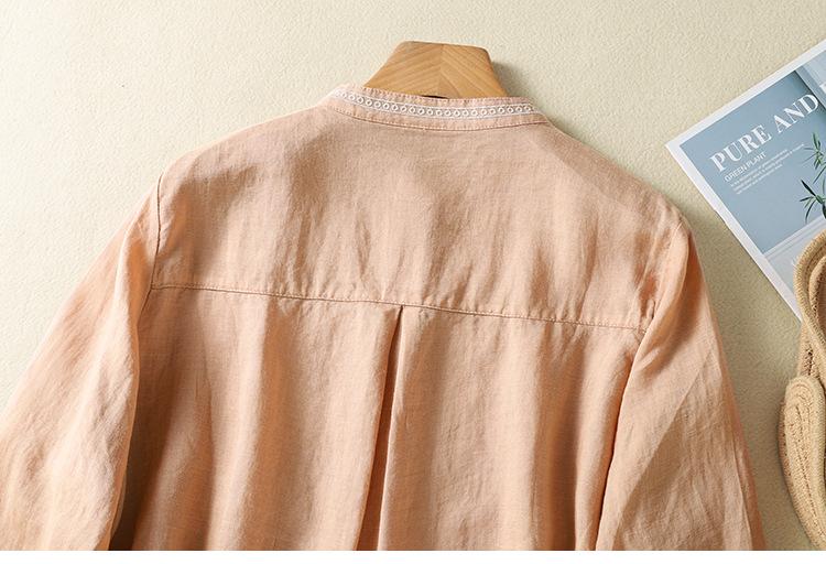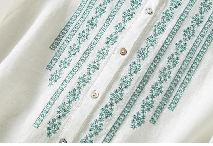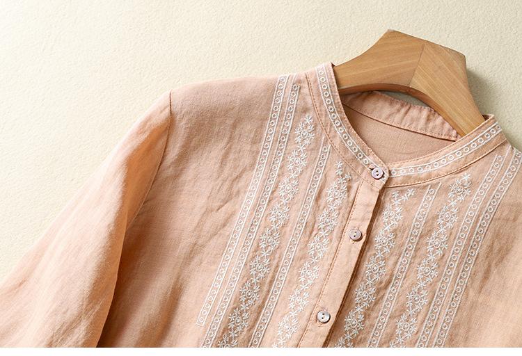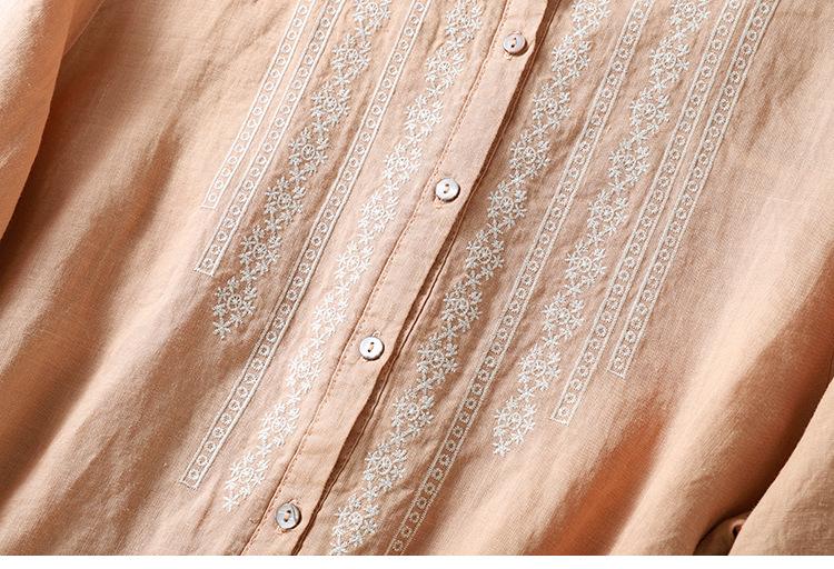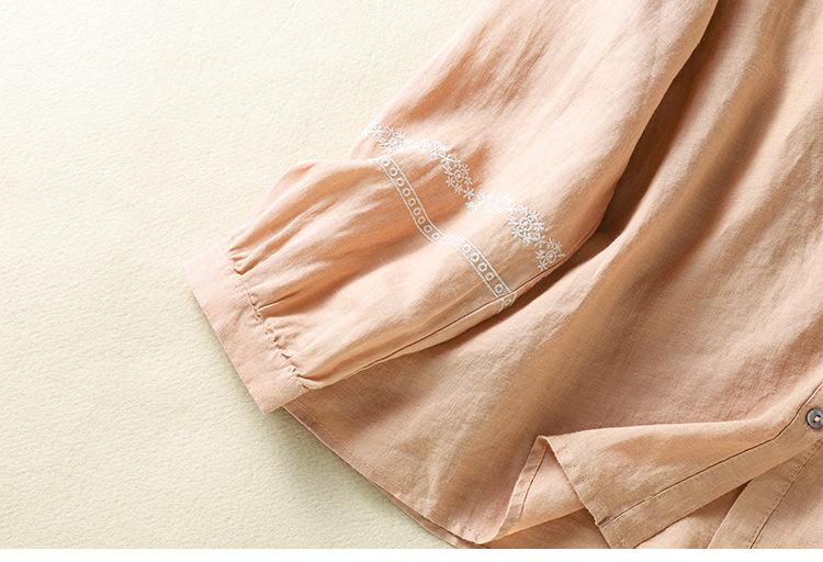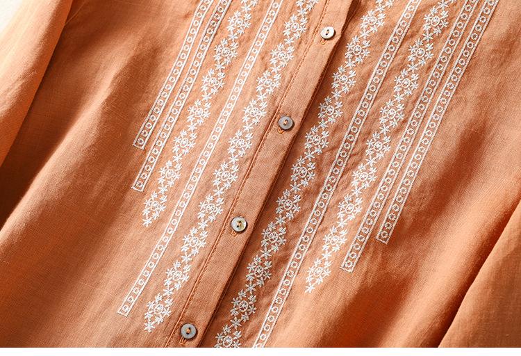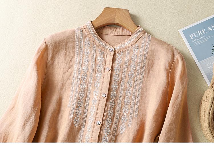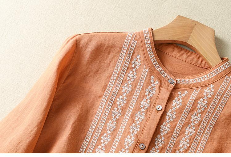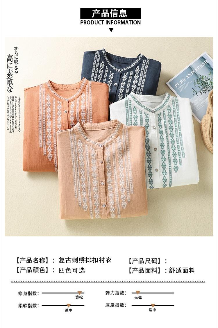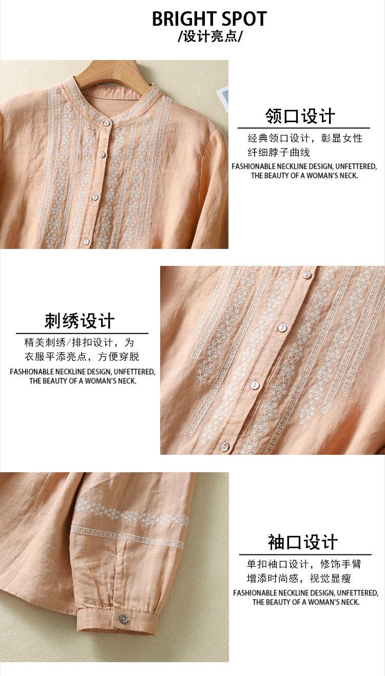 Foto Real Primavera y Otoño 2025 Nueva Bordado Simple Camisa de Manga Larga Mujer Literaria Retro Top Mujer Versátil