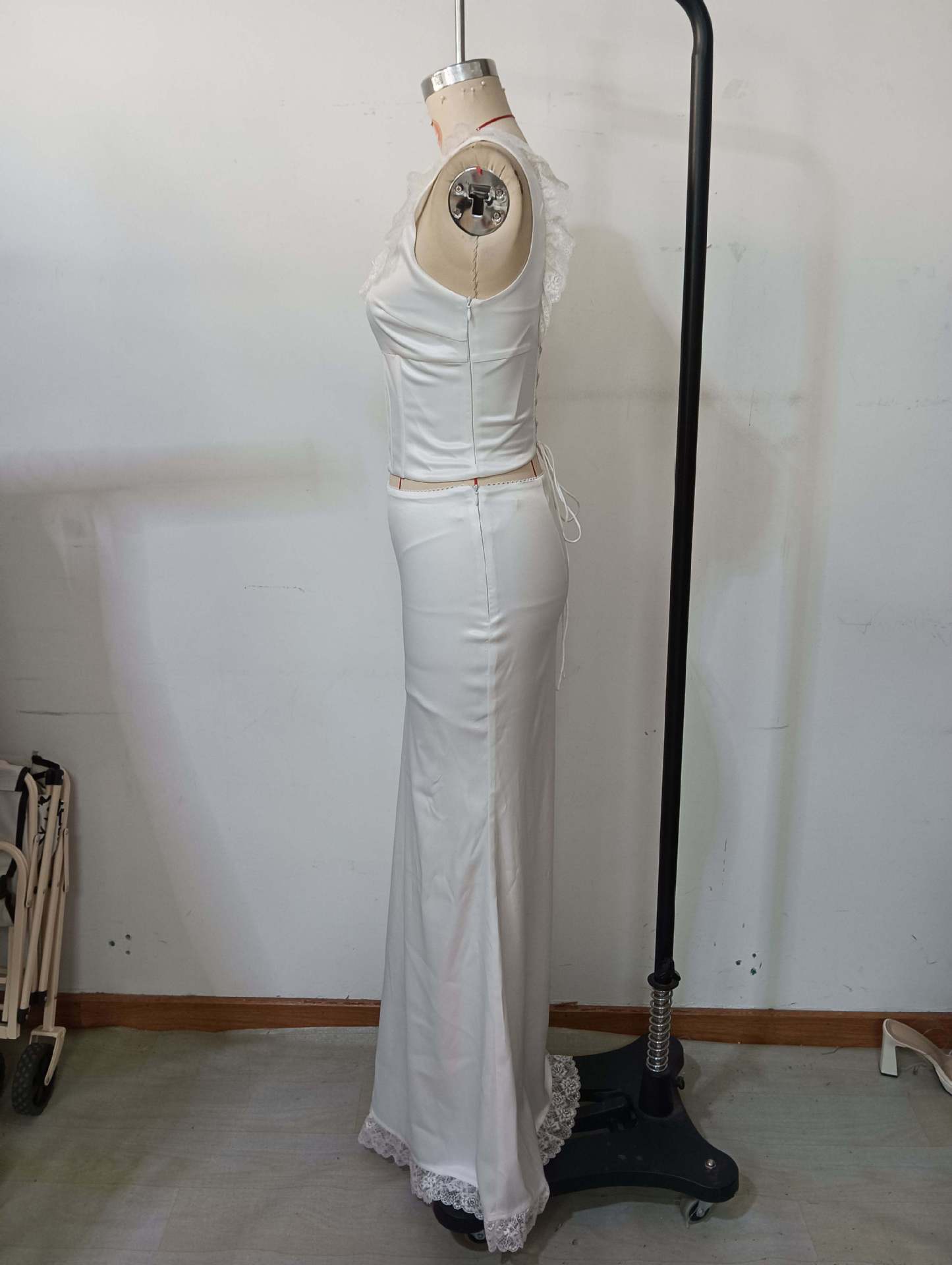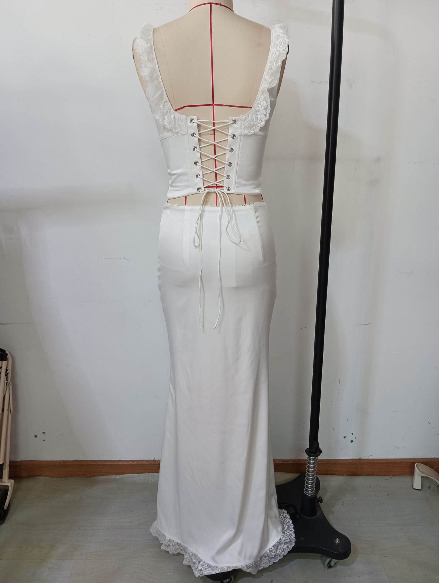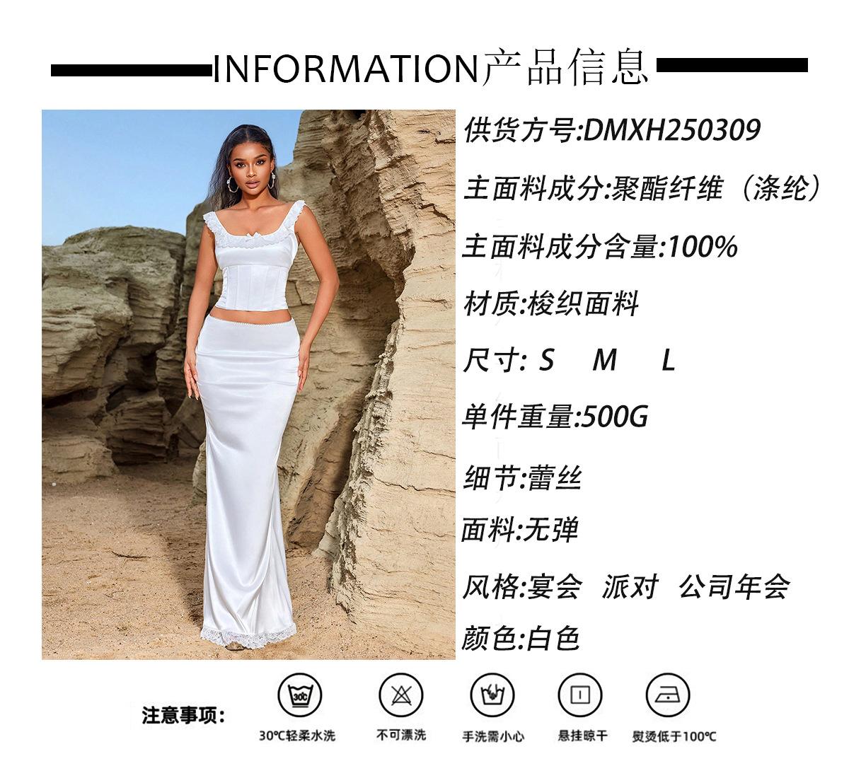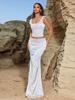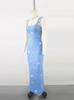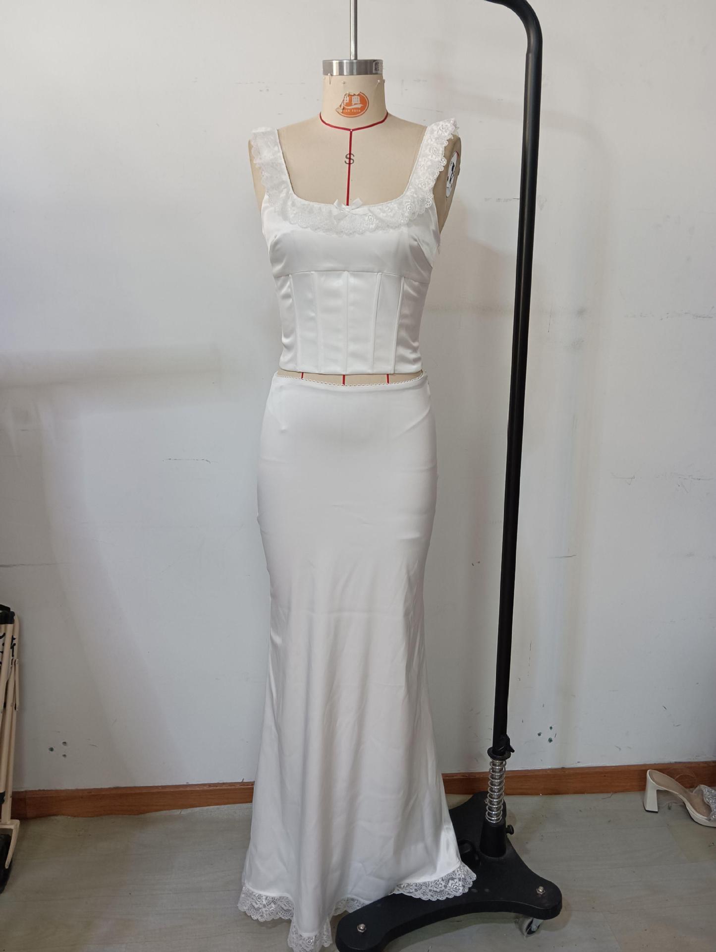 Vestido Largo de Encaje de Verano Europeo y Americano sin Mangas con Top de Lazo en la Espalda Exquisito Elegante Ajustado con Pequeña Cola Set de Vestido de Noche
