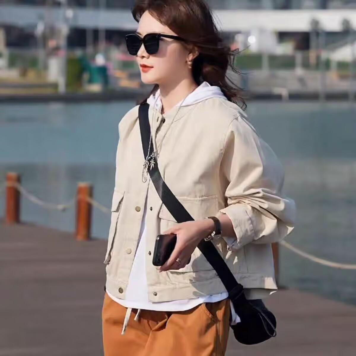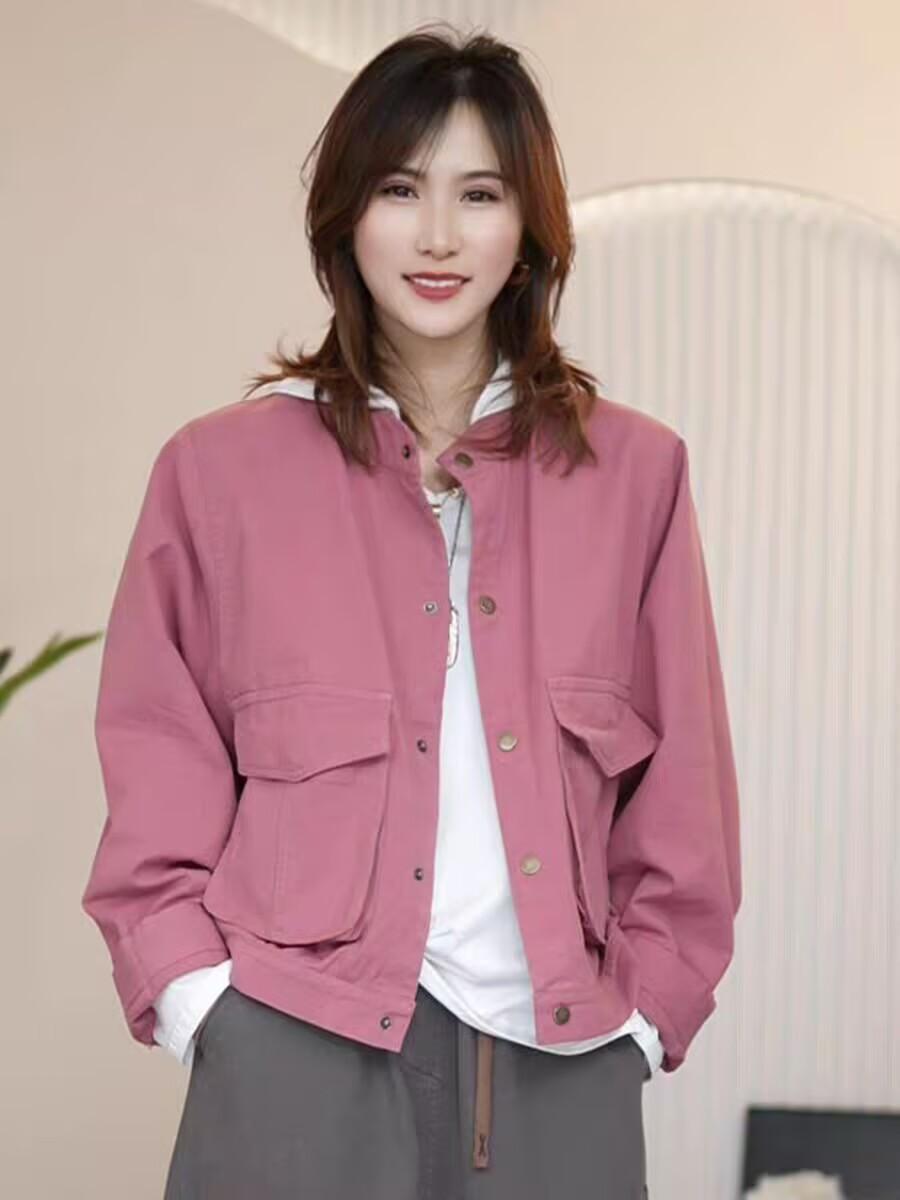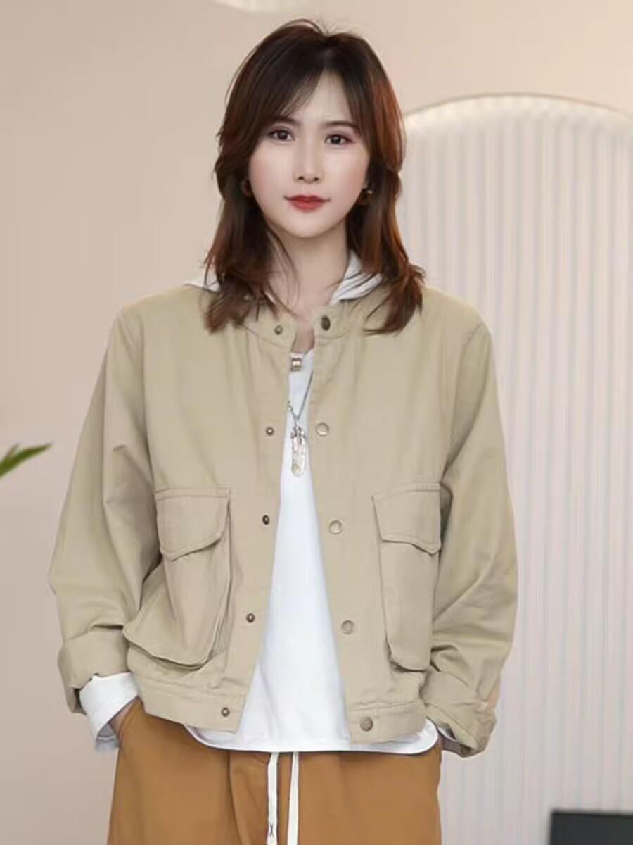 2025 Nueva Moda Versátil Chaqueta Corta de Cuello Alto para Mujer Casual Reductor de Edad Holgado Adelgazante Top Chaqueta Casual para Mujer