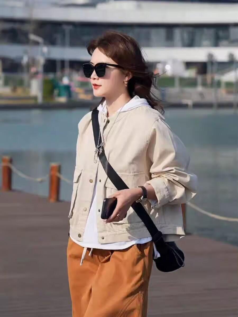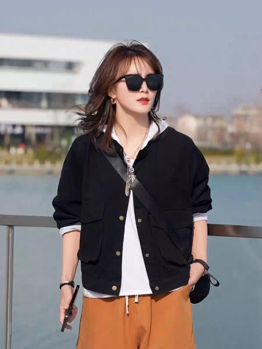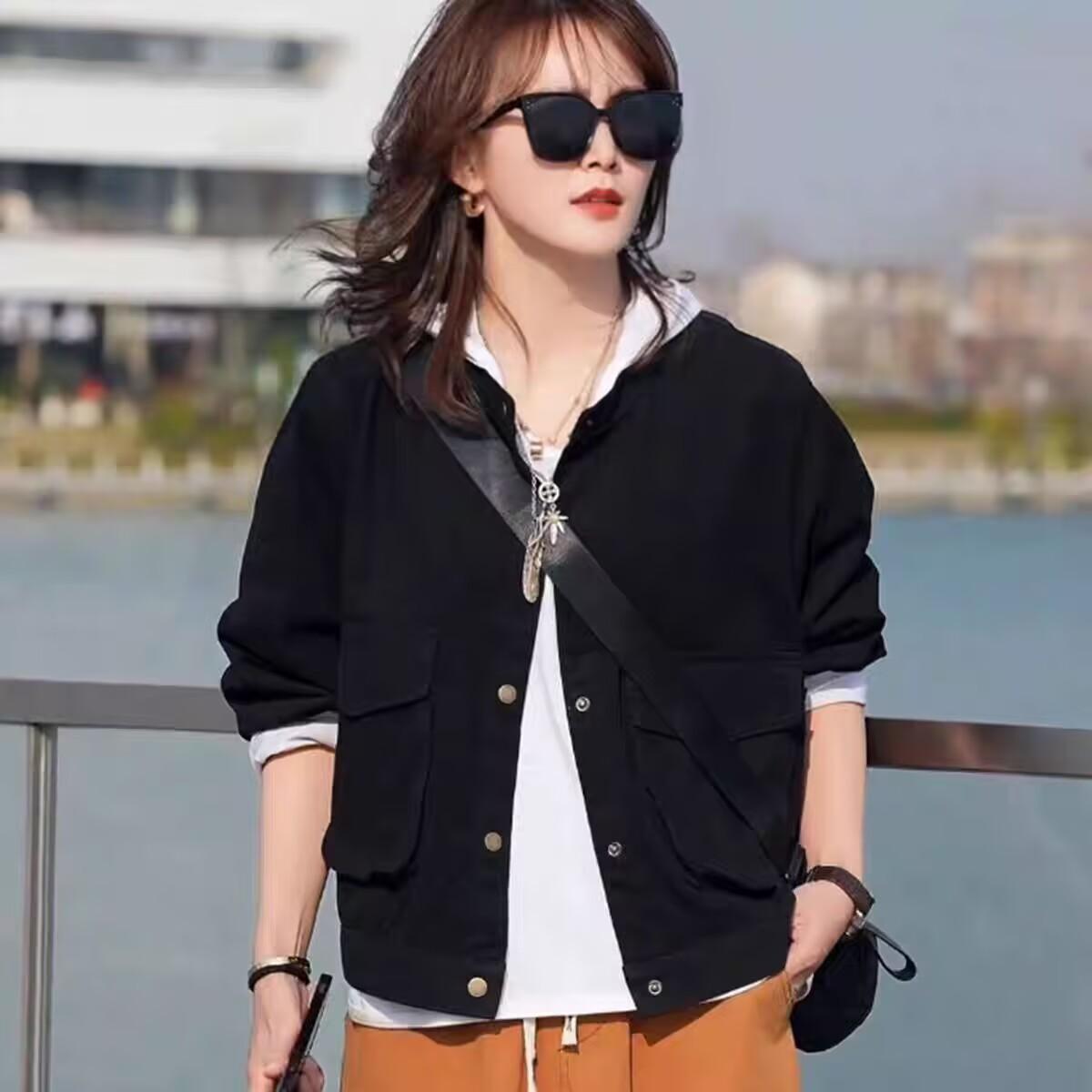 2025 Nueva Moda Versátil Chaqueta Corta de Cuello Alto para Mujer Casual Reductor de Edad Holgado Adelgazante Top Chaqueta Casual para Mujer
