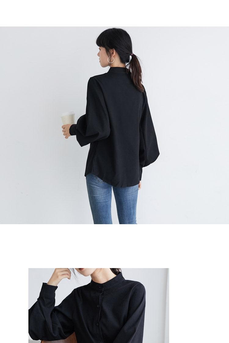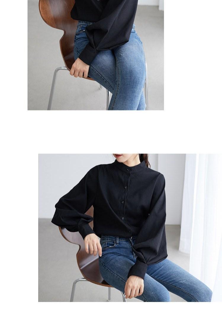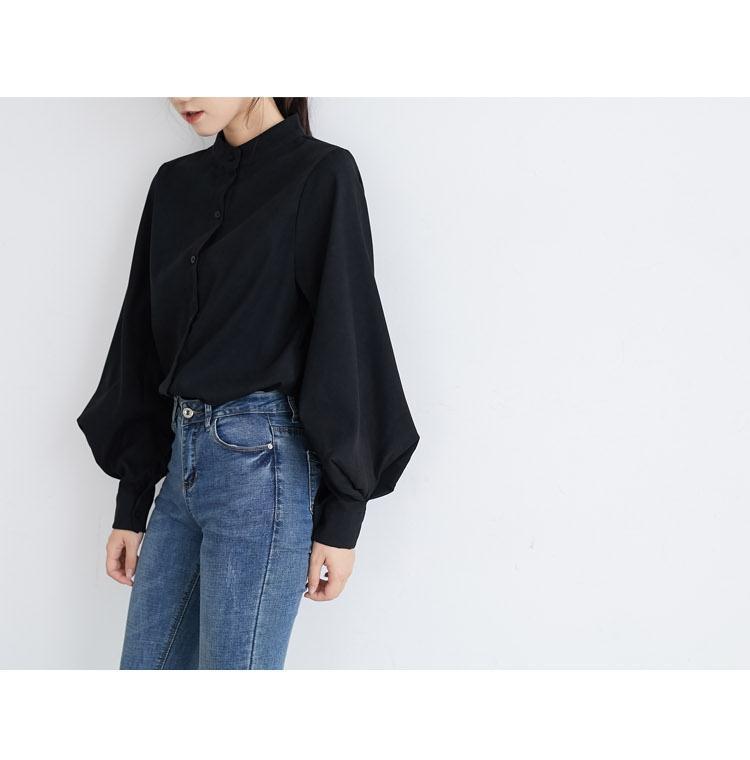 Camisa negra de cuello alto para mujer, diseño nicho, camisa de temperamento francés maduro, top de manga farol estilo retro de Hong Kong