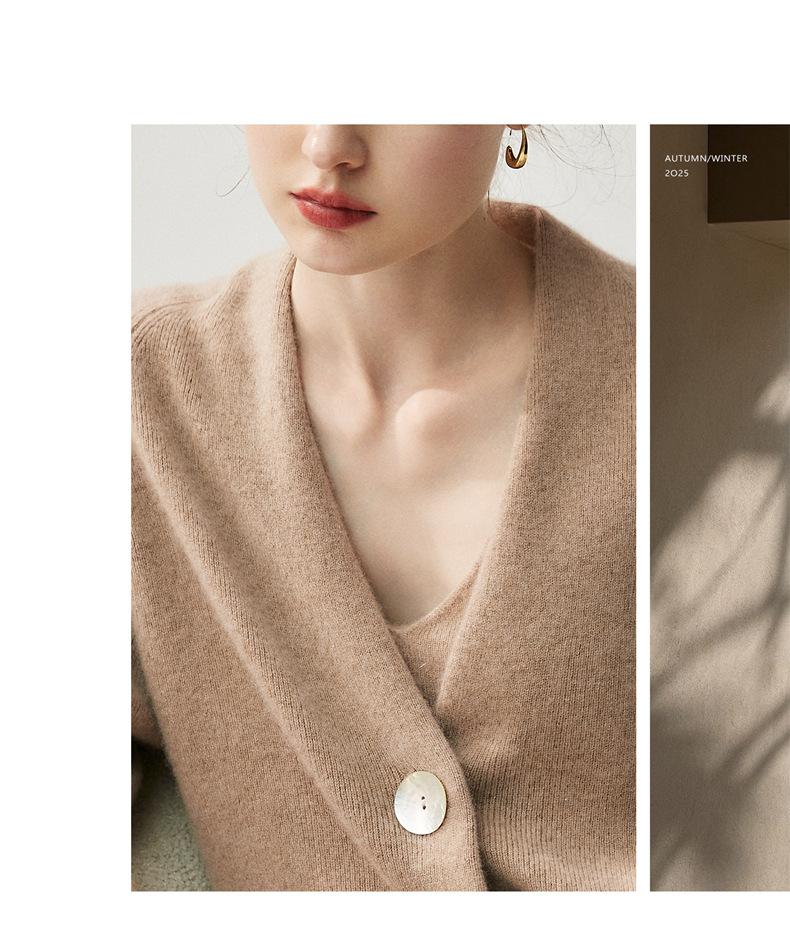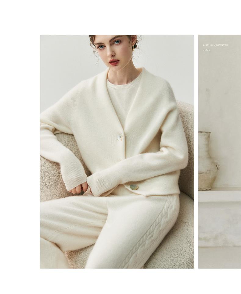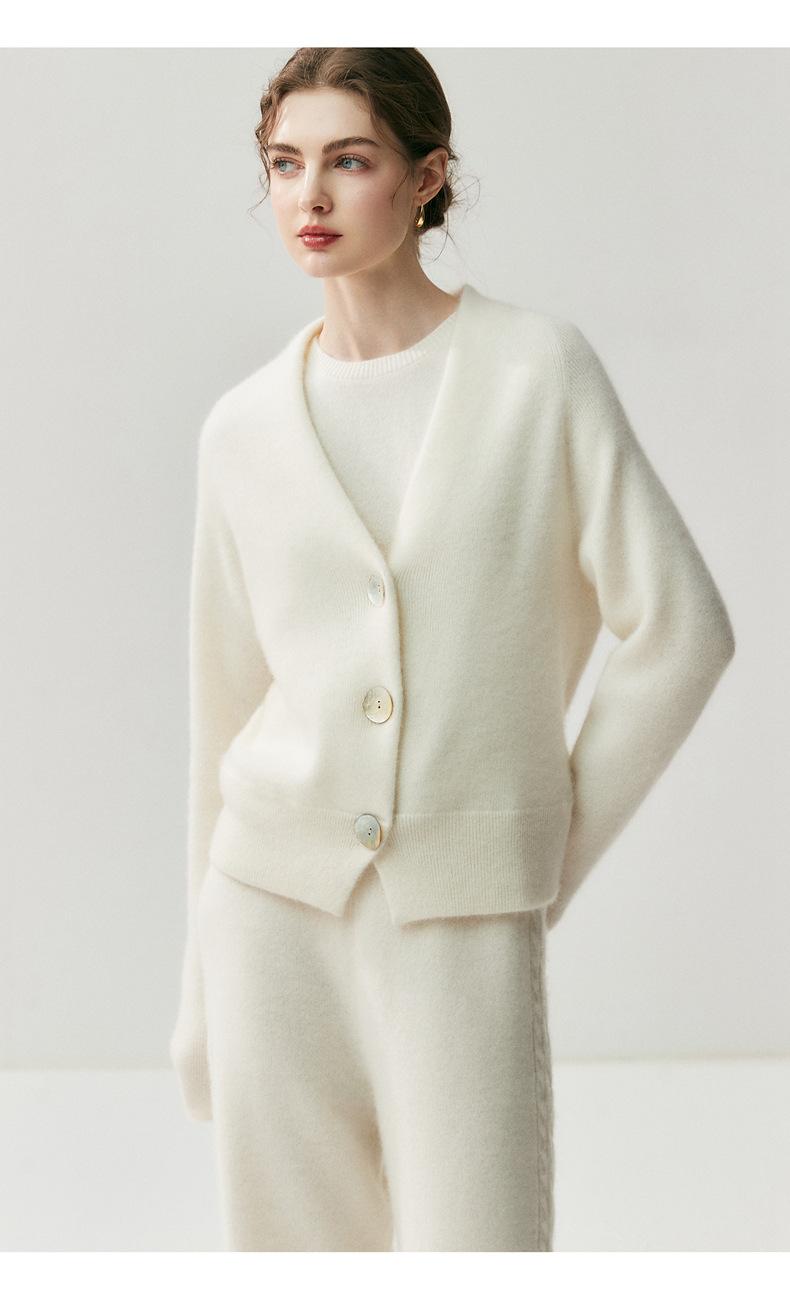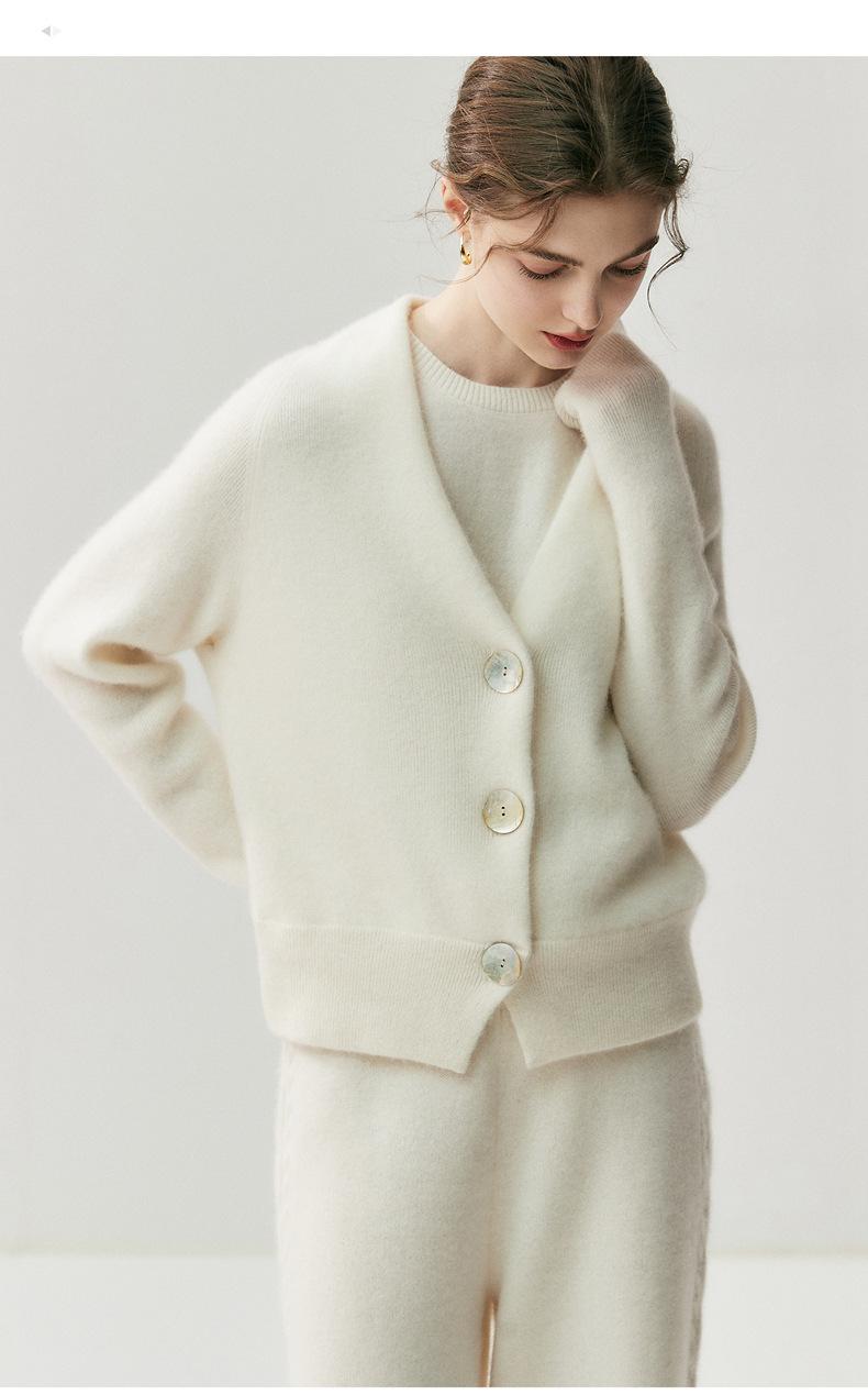 Nuevo Otoño/Invierno Estilo Perezoso Cuello en V Tres Botones Color Sólido Cárdigan de Punto de Cachemira para Mujer Holgado Adelgazante Grueso