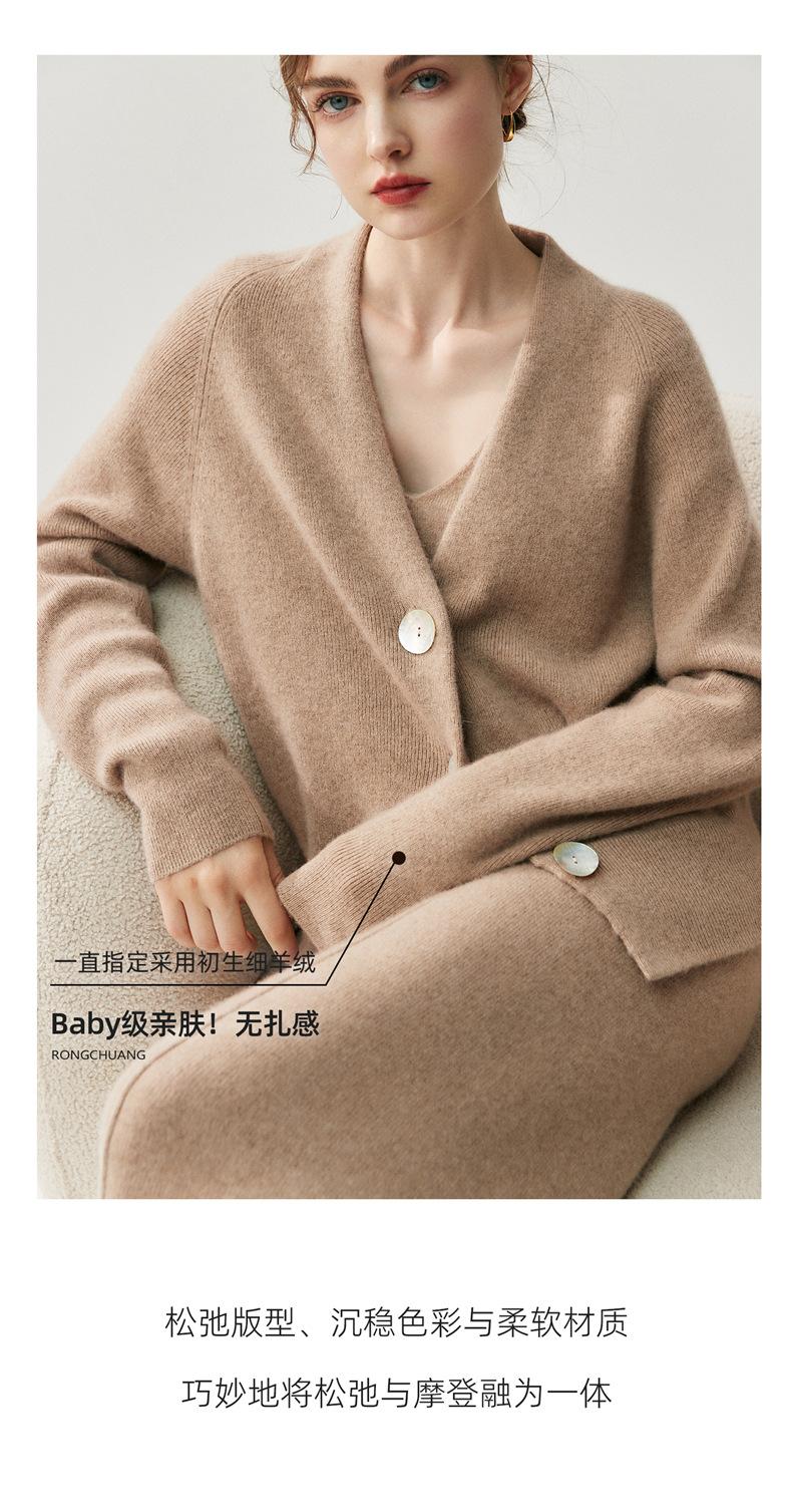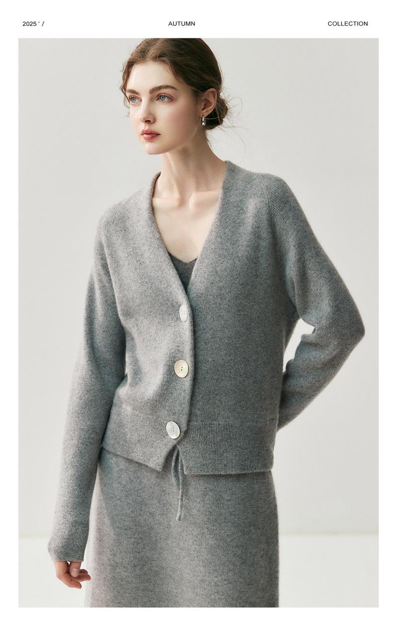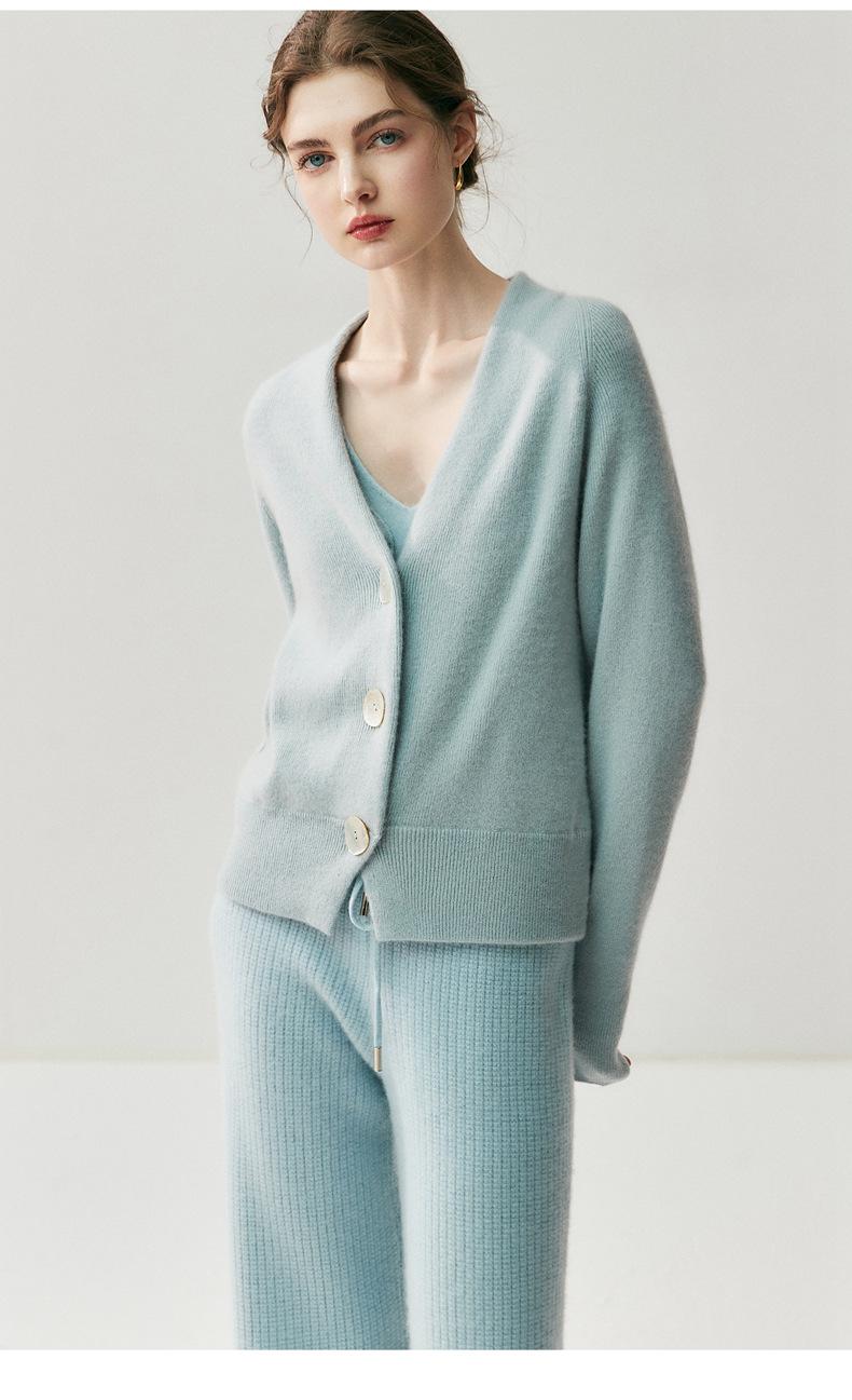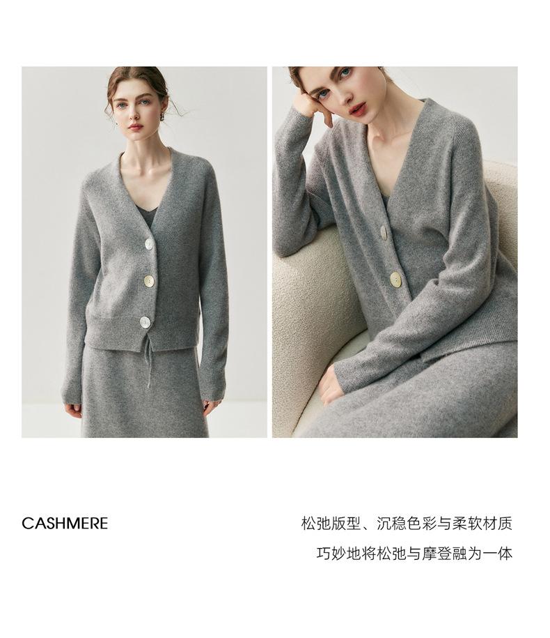 Nuevo Otoño/Invierno Estilo Perezoso Cuello en V Tres Botones Color Sólido Cárdigan de Punto de Cachemira para Mujer Holgado Adelgazante Grueso