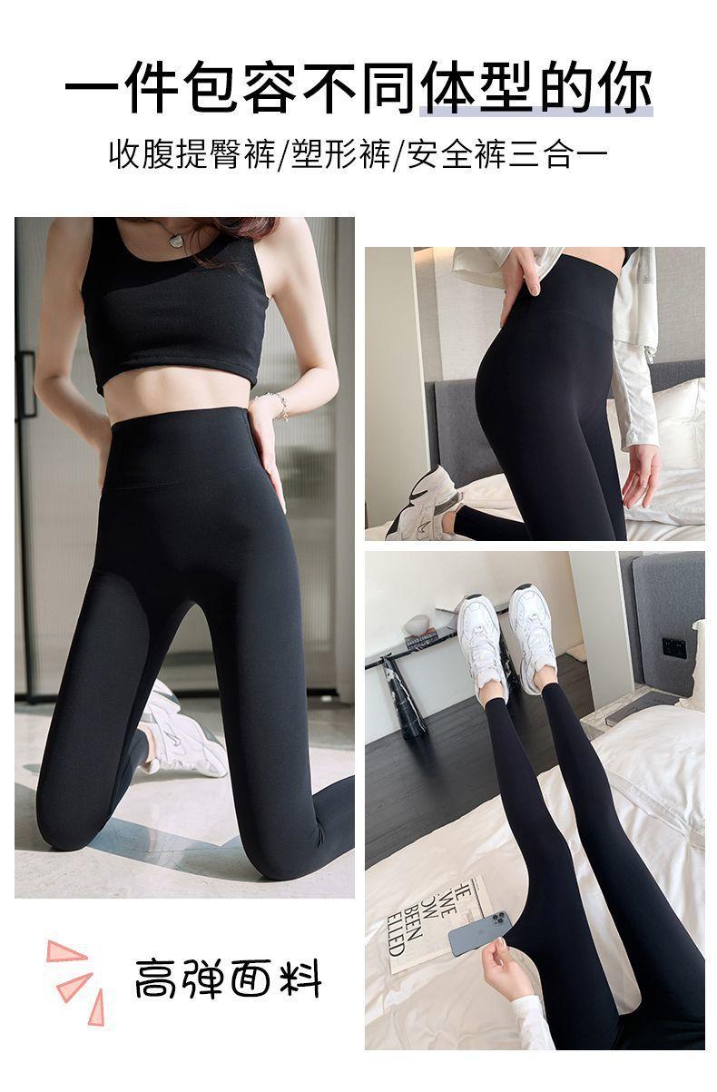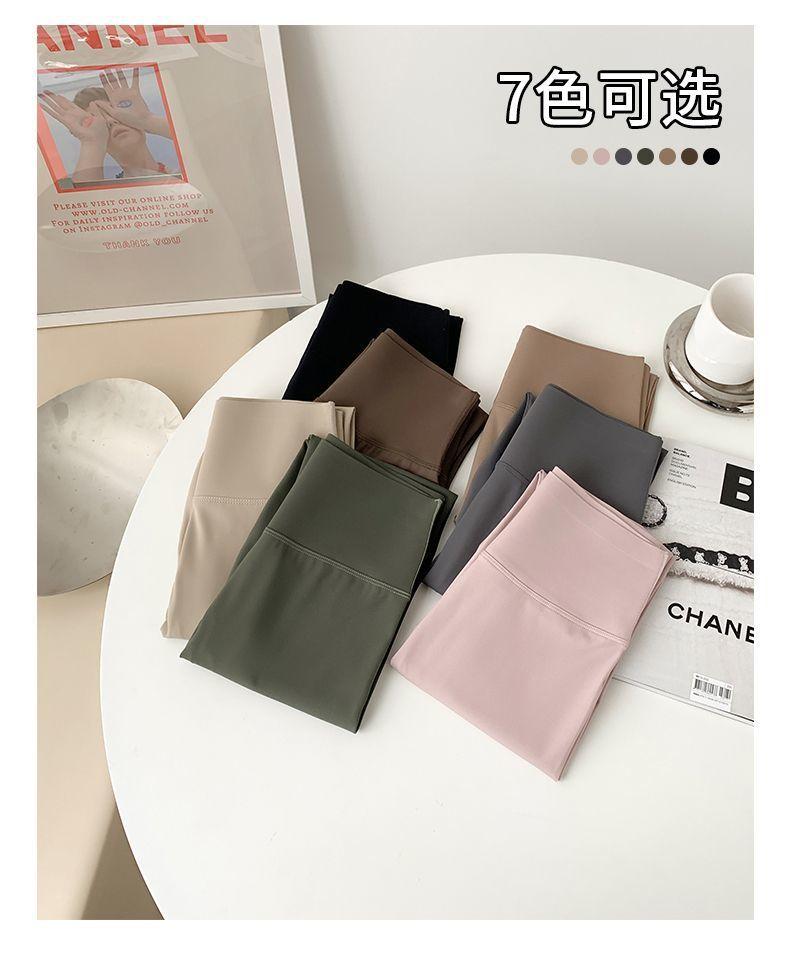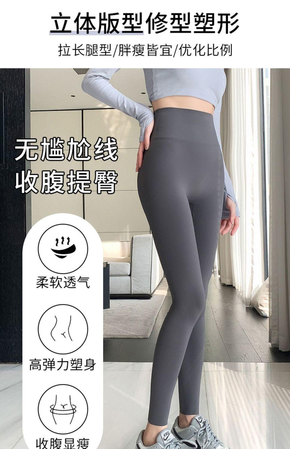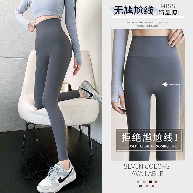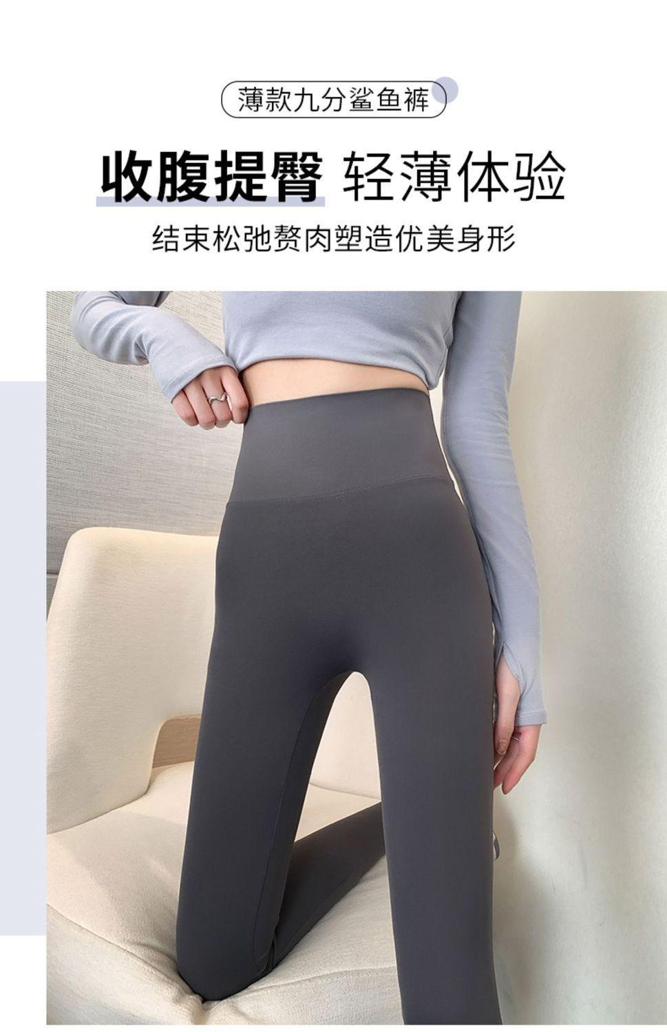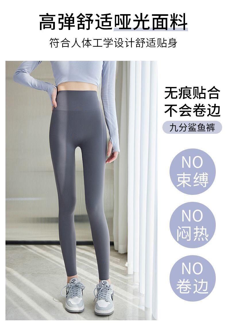 Pantalones Tiburón Línea Sin Vergüenza Ropa Exterior para Mujer Delgados Cintura Alta Control de Abdomen Levantamiento de Cadera Leggings Seamless Nueve Puntos Primavera y Otoño