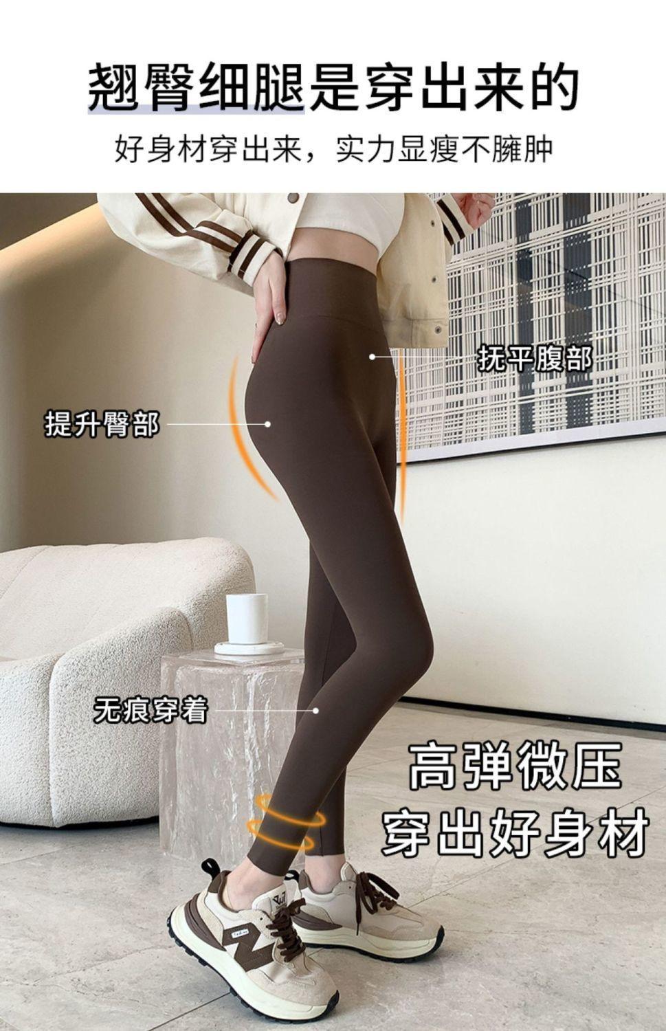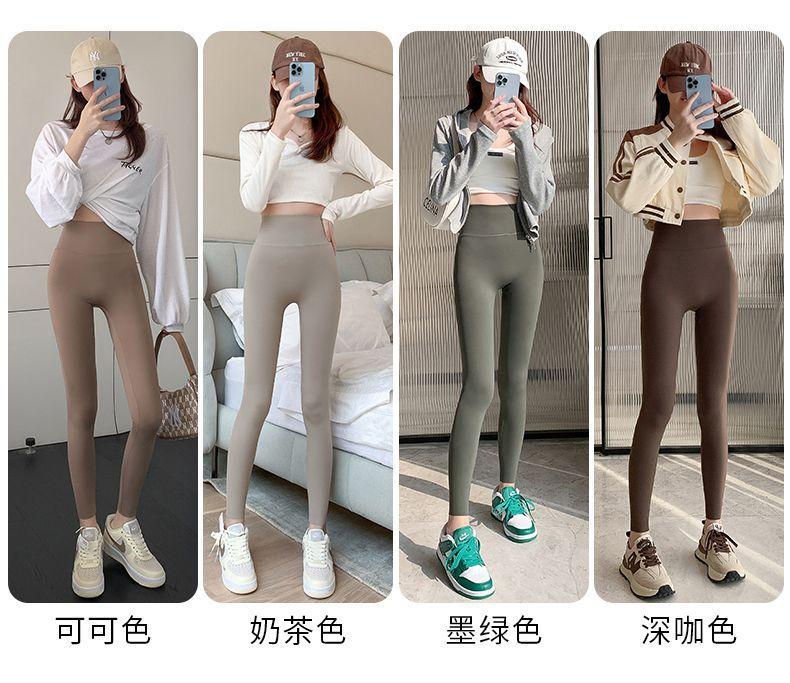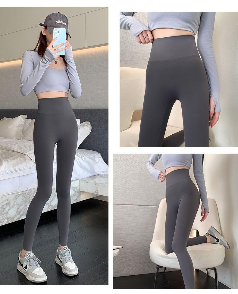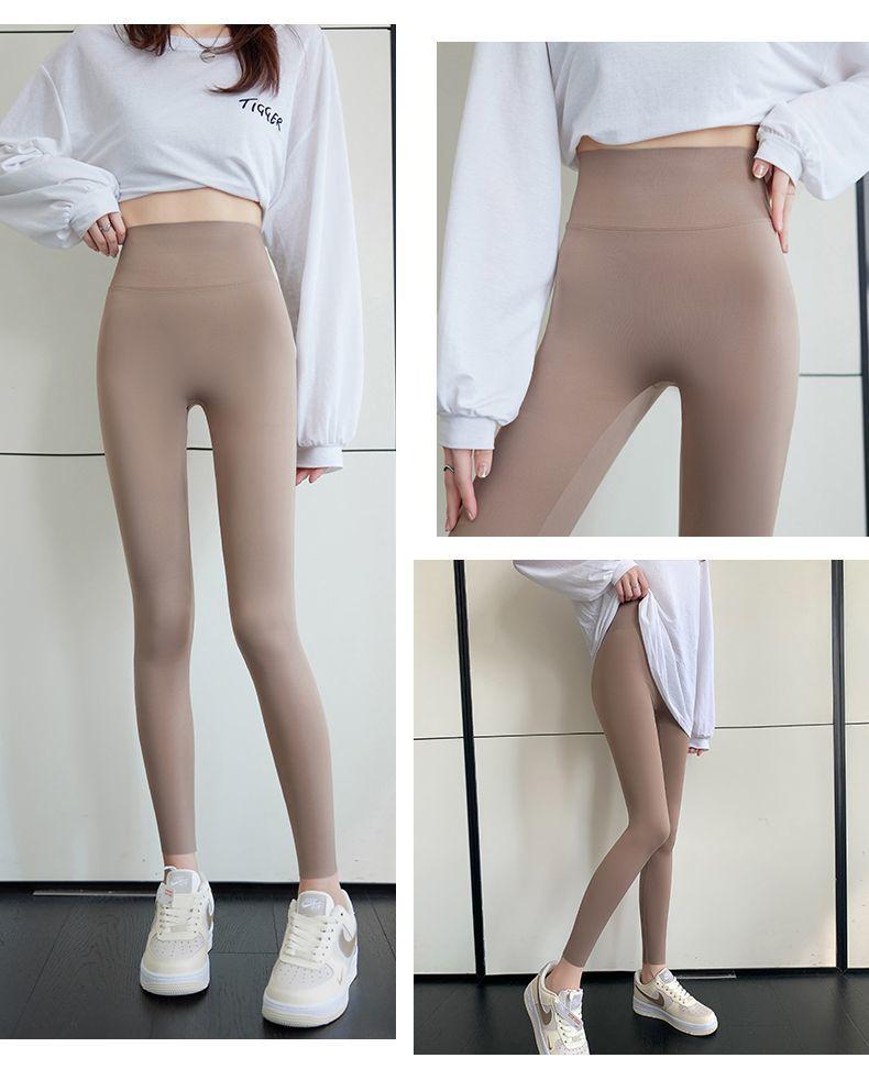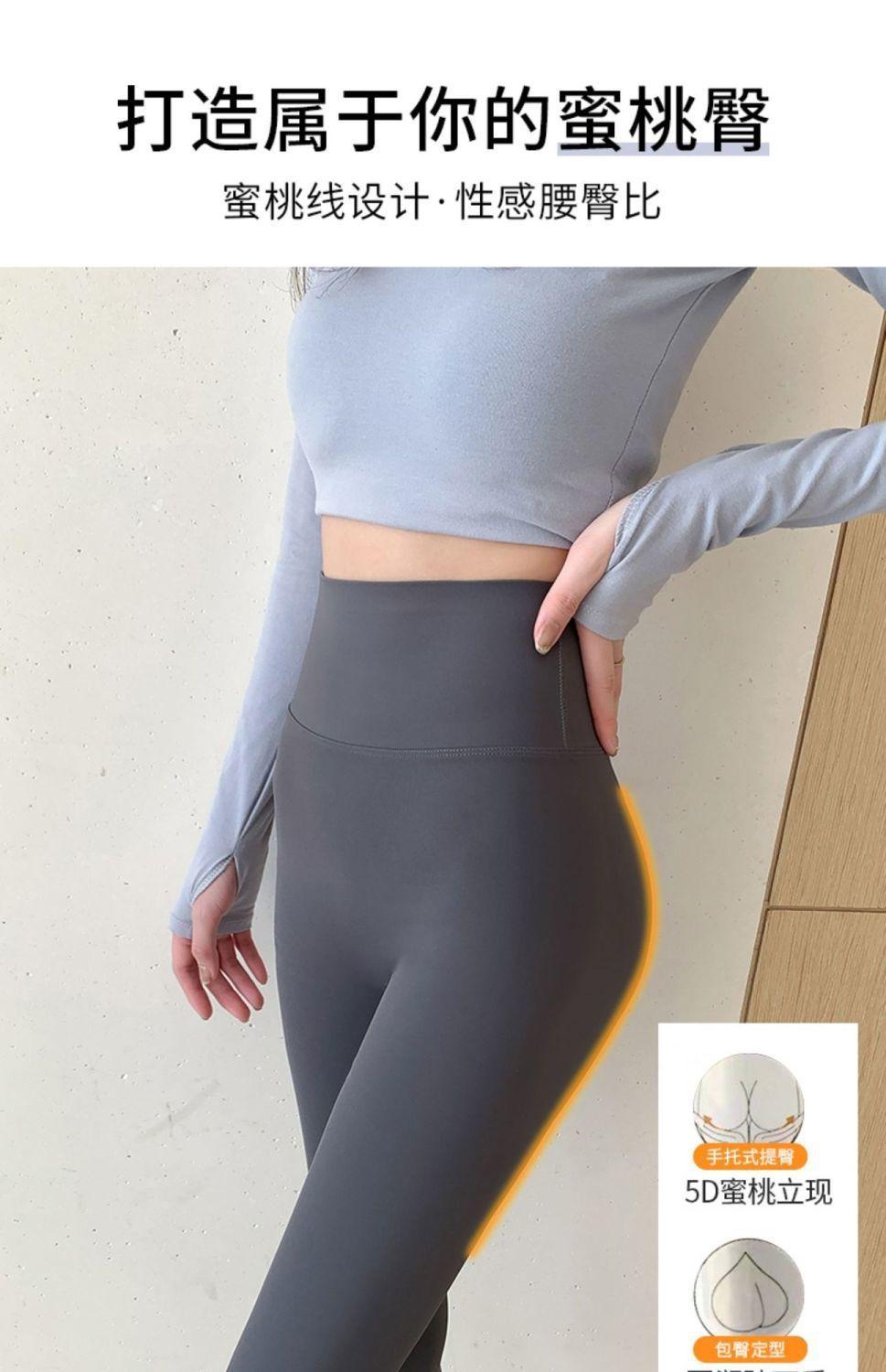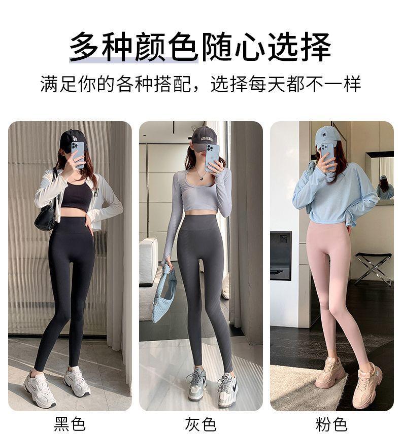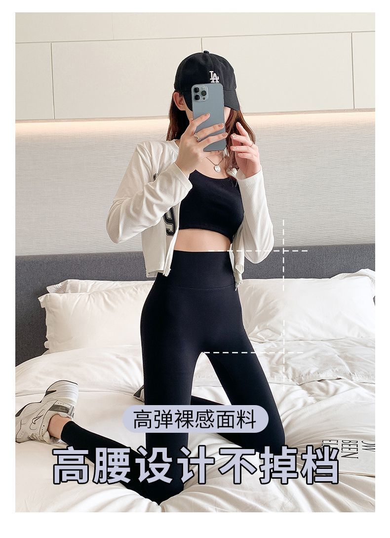 Pantalones Tiburón Línea Sin Vergüenza Ropa Exterior para Mujer Delgados Cintura Alta Control de Abdomen Levantamiento de Cadera Leggings Seamless Nueve Puntos Primavera y Otoño