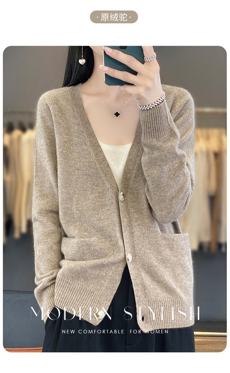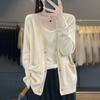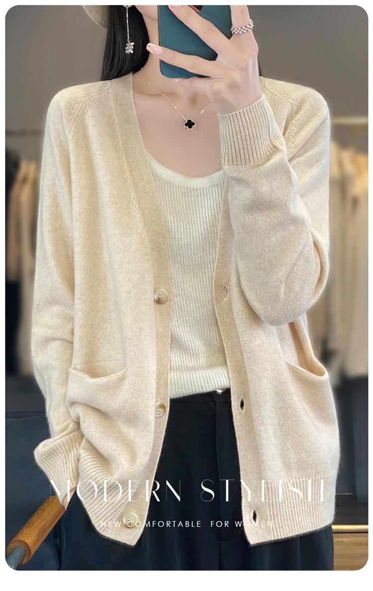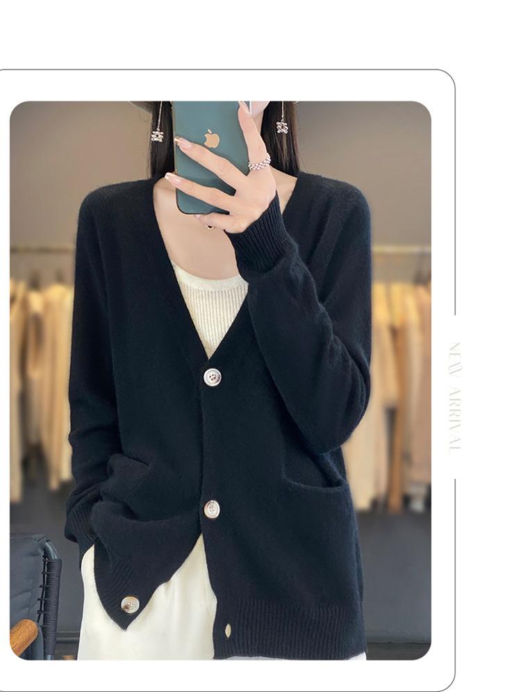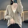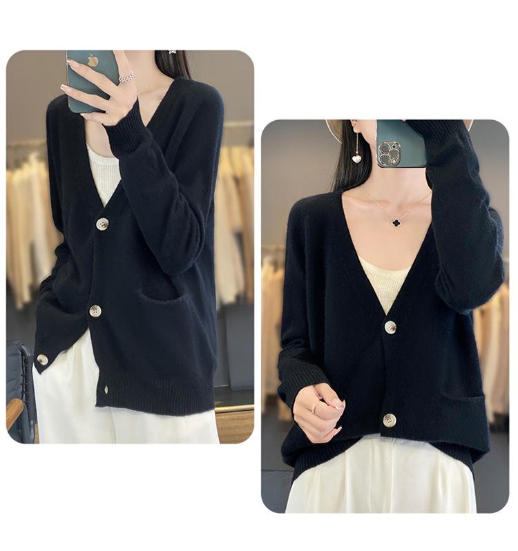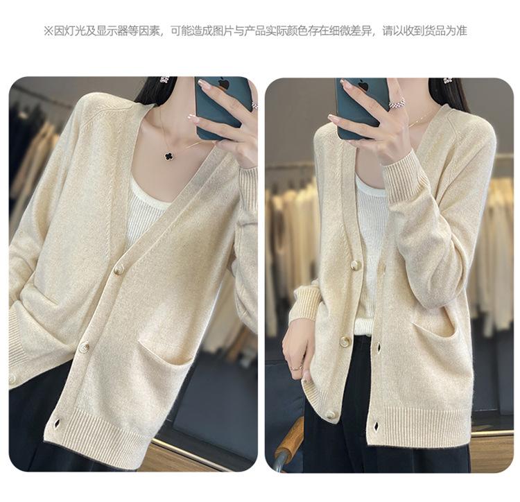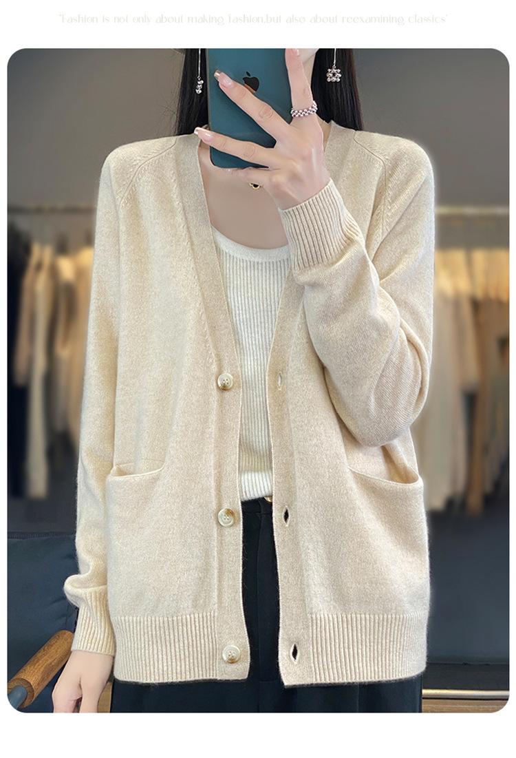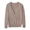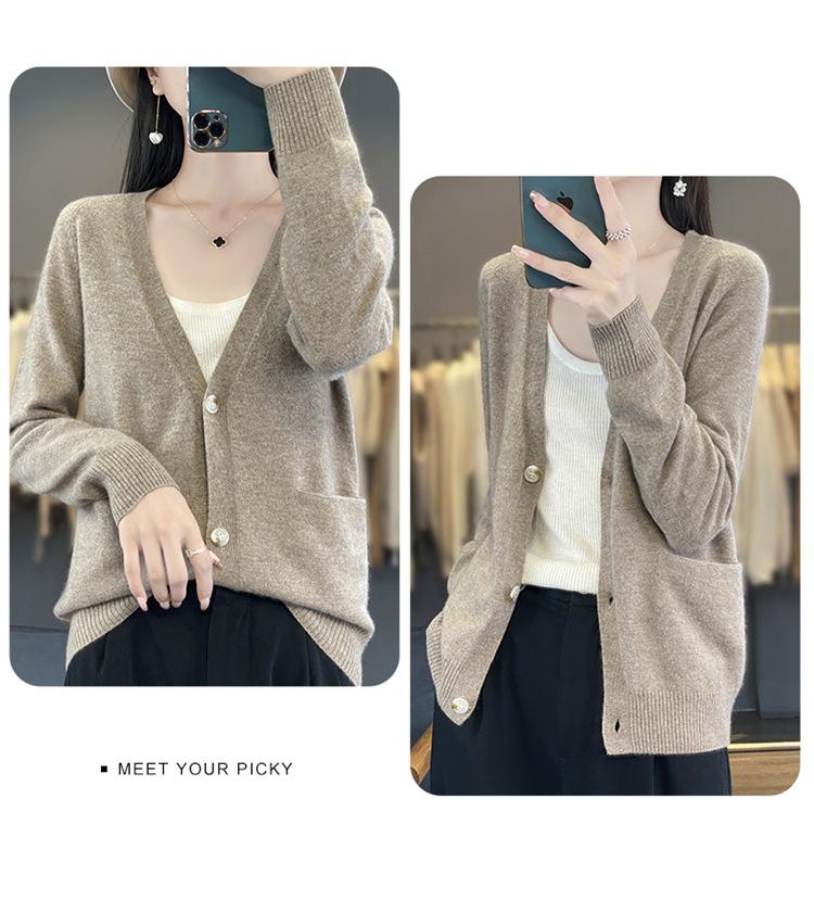 Cárdigan de punto de otoño e invierno 2024 nuevo con cuello en V, manga larga, color sólido para mujer con bolsillo, holgado, combinable, elegante, top, chaqueta