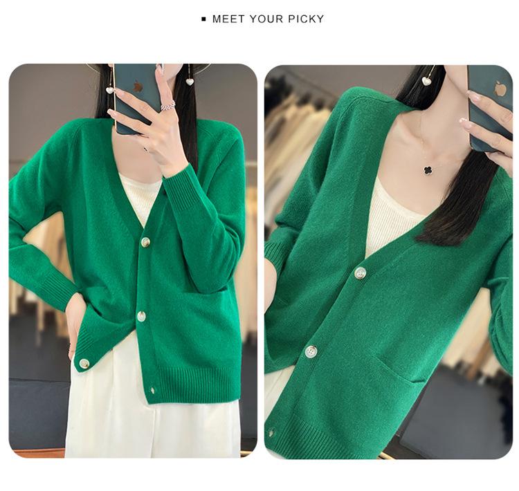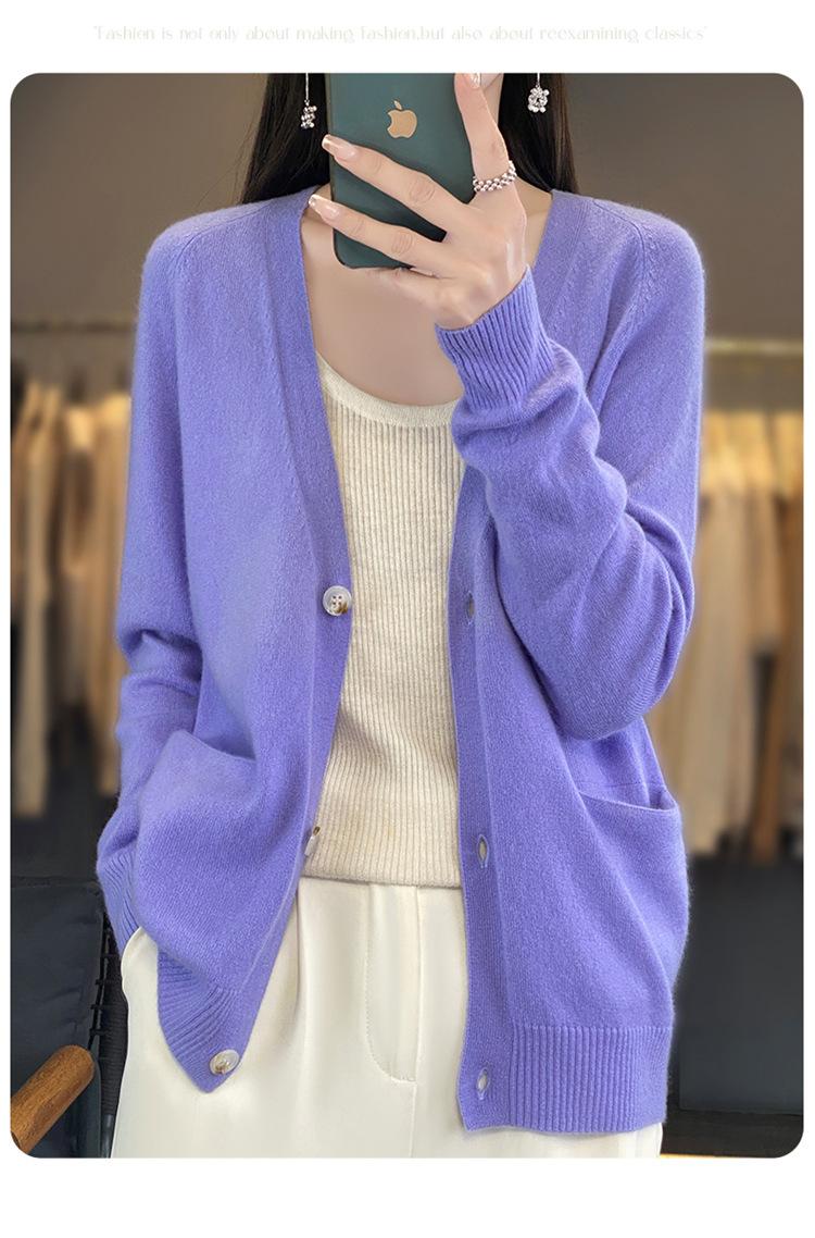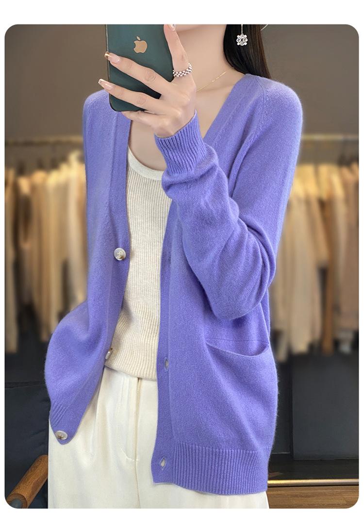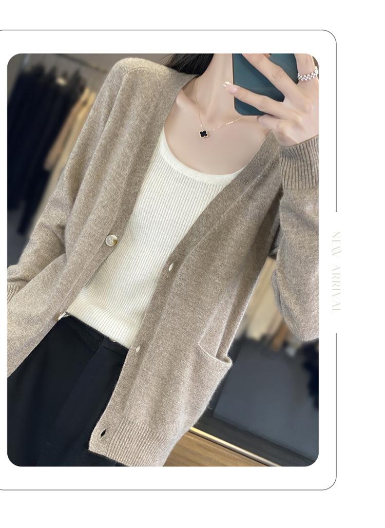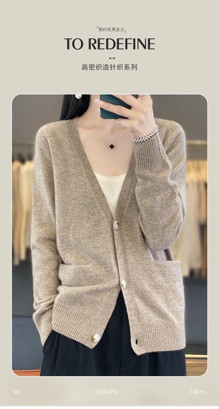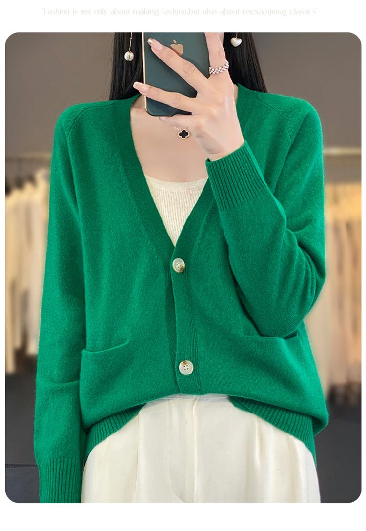 Cárdigan de punto de otoño e invierno 2024 nuevo con cuello en V, manga larga, color sólido para mujer con bolsillo, holgado, combinable, elegante, top, chaqueta