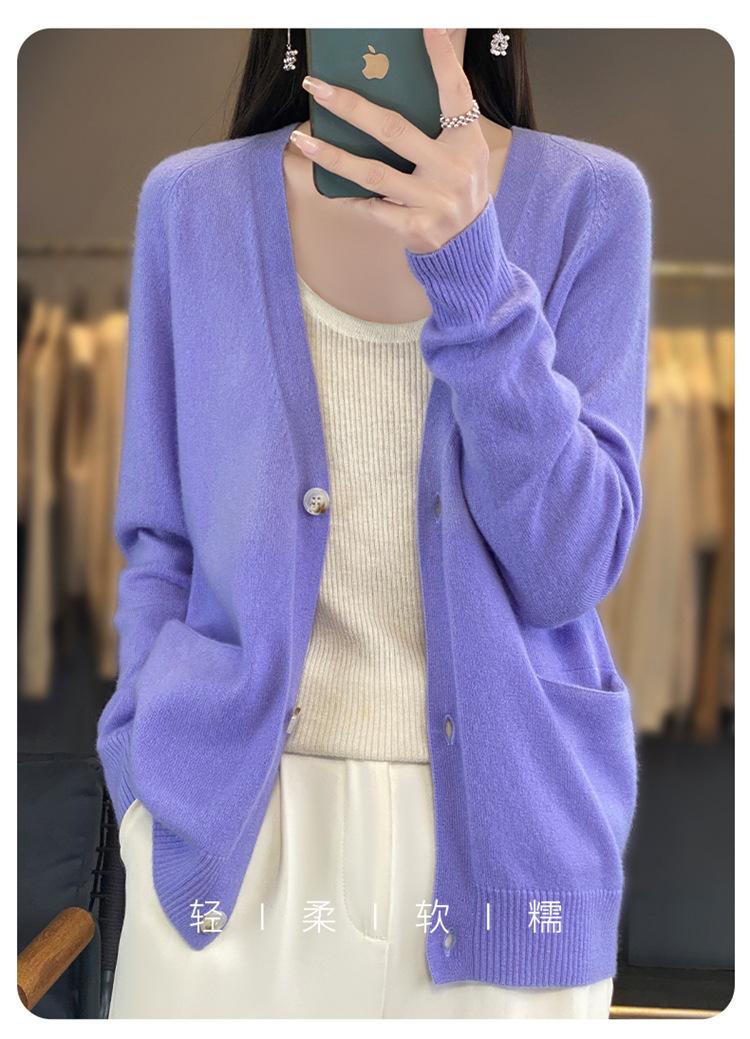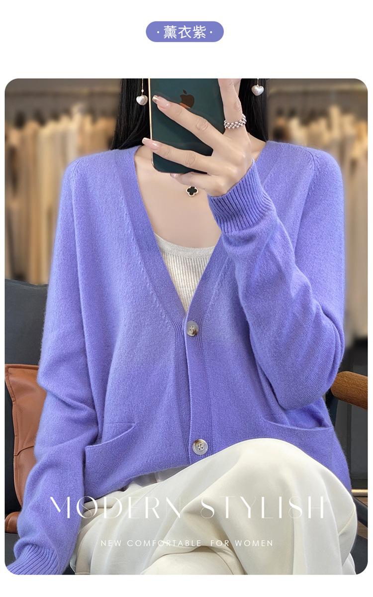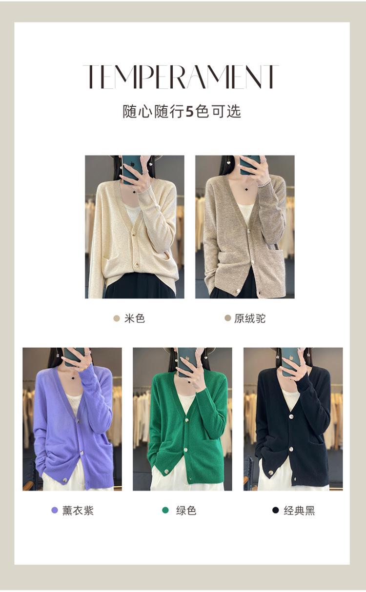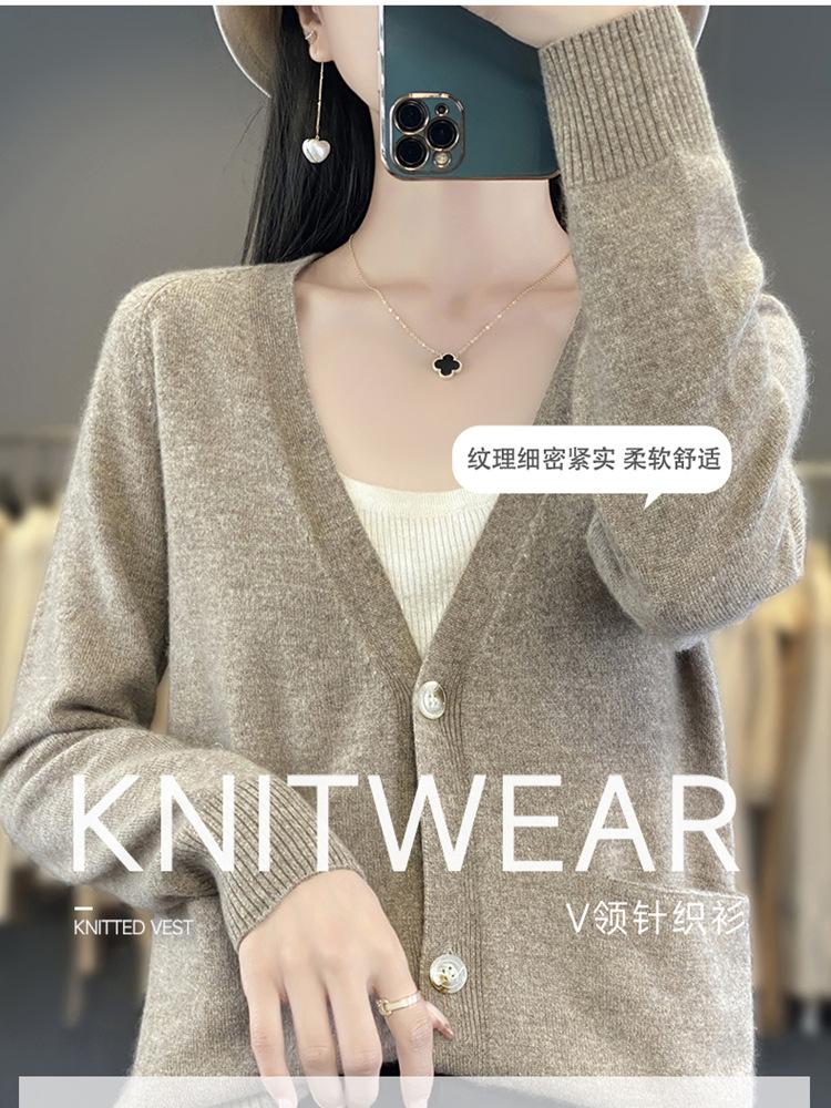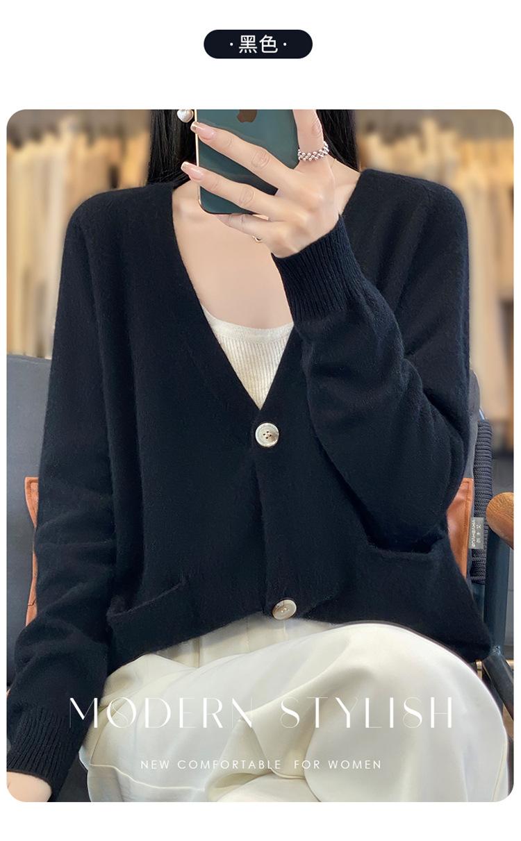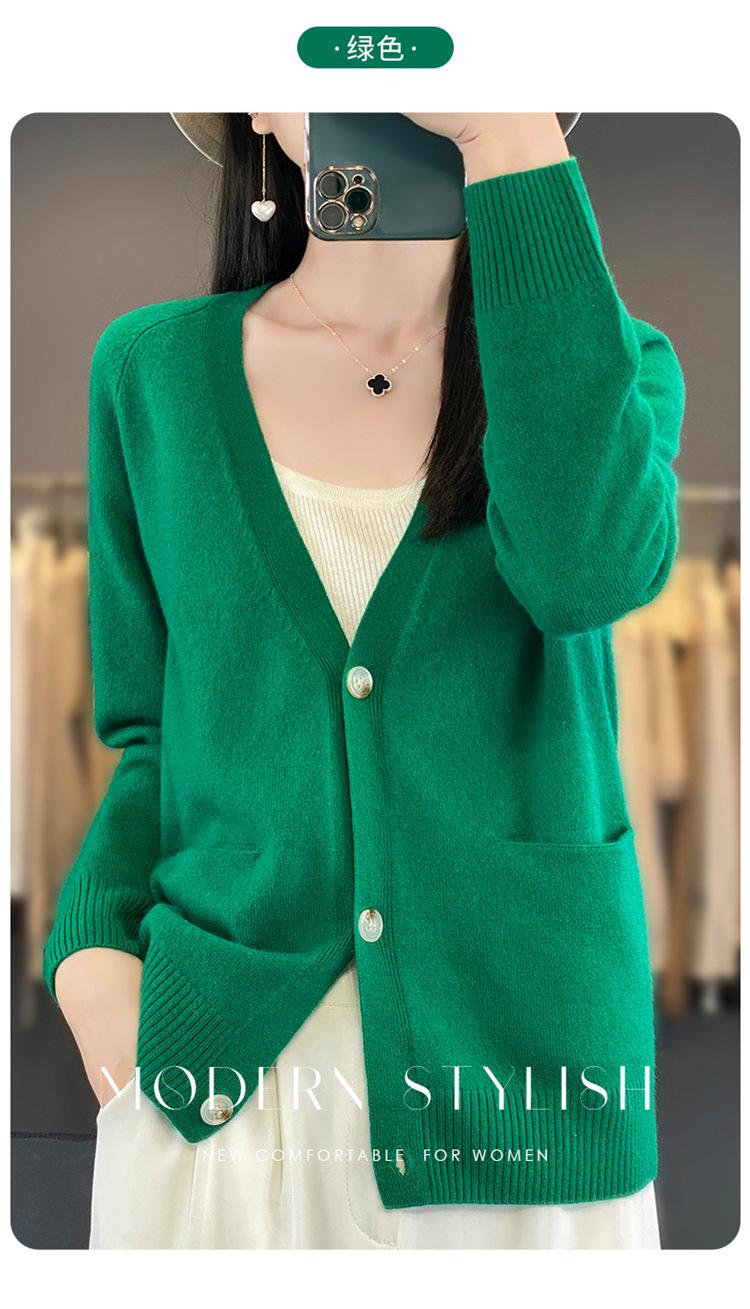 Cárdigan de punto de otoño e invierno 2024 nuevo con cuello en V, manga larga, color sólido para mujer con bolsillo, holgado, combinable, elegante, top, chaqueta