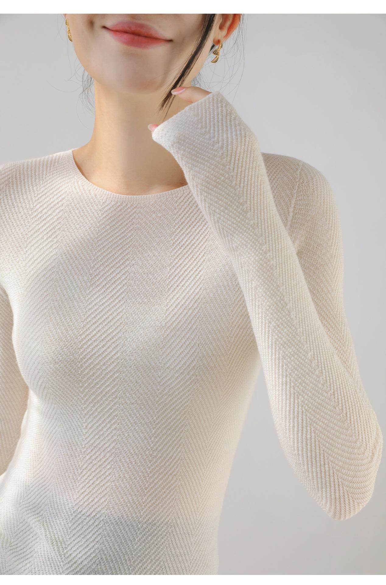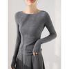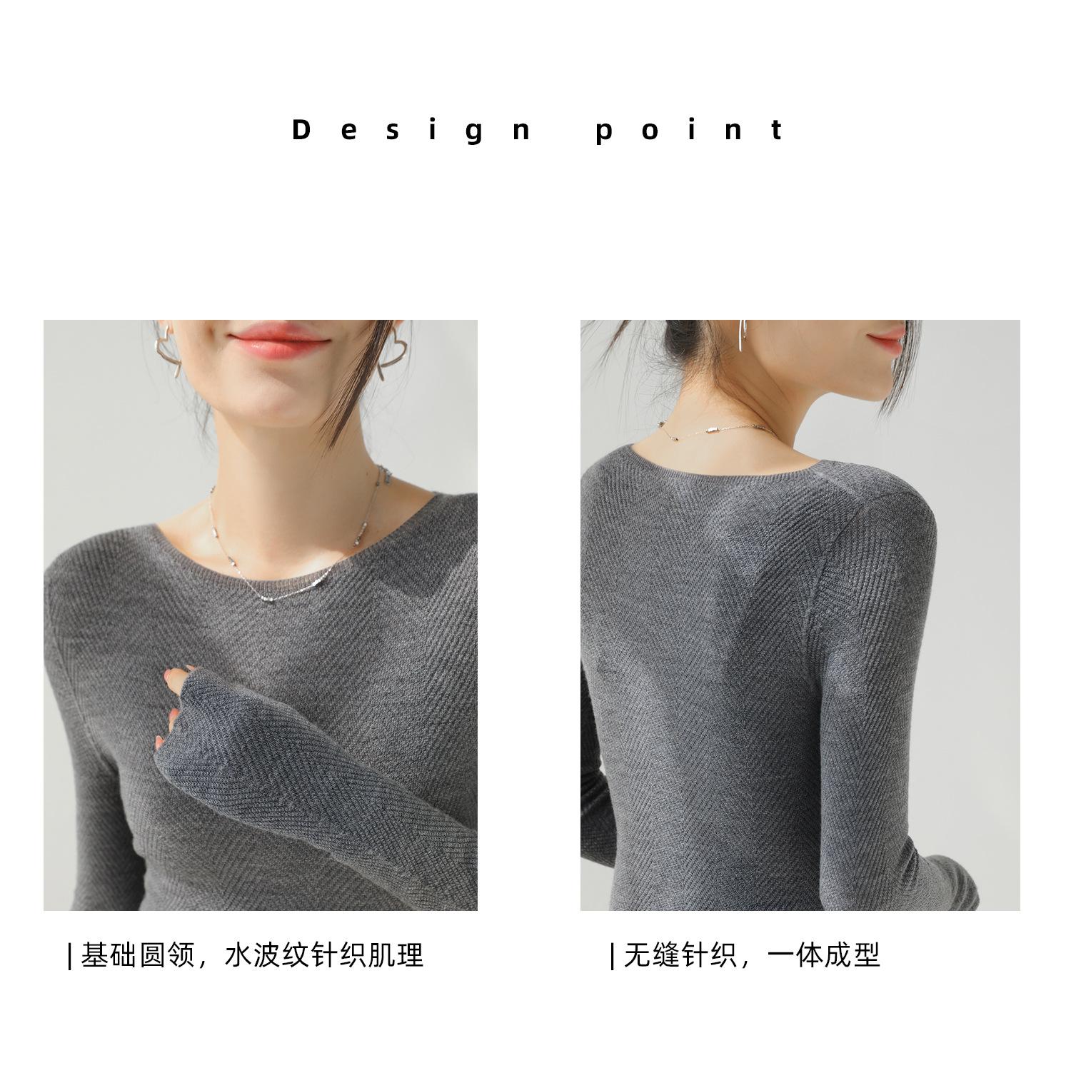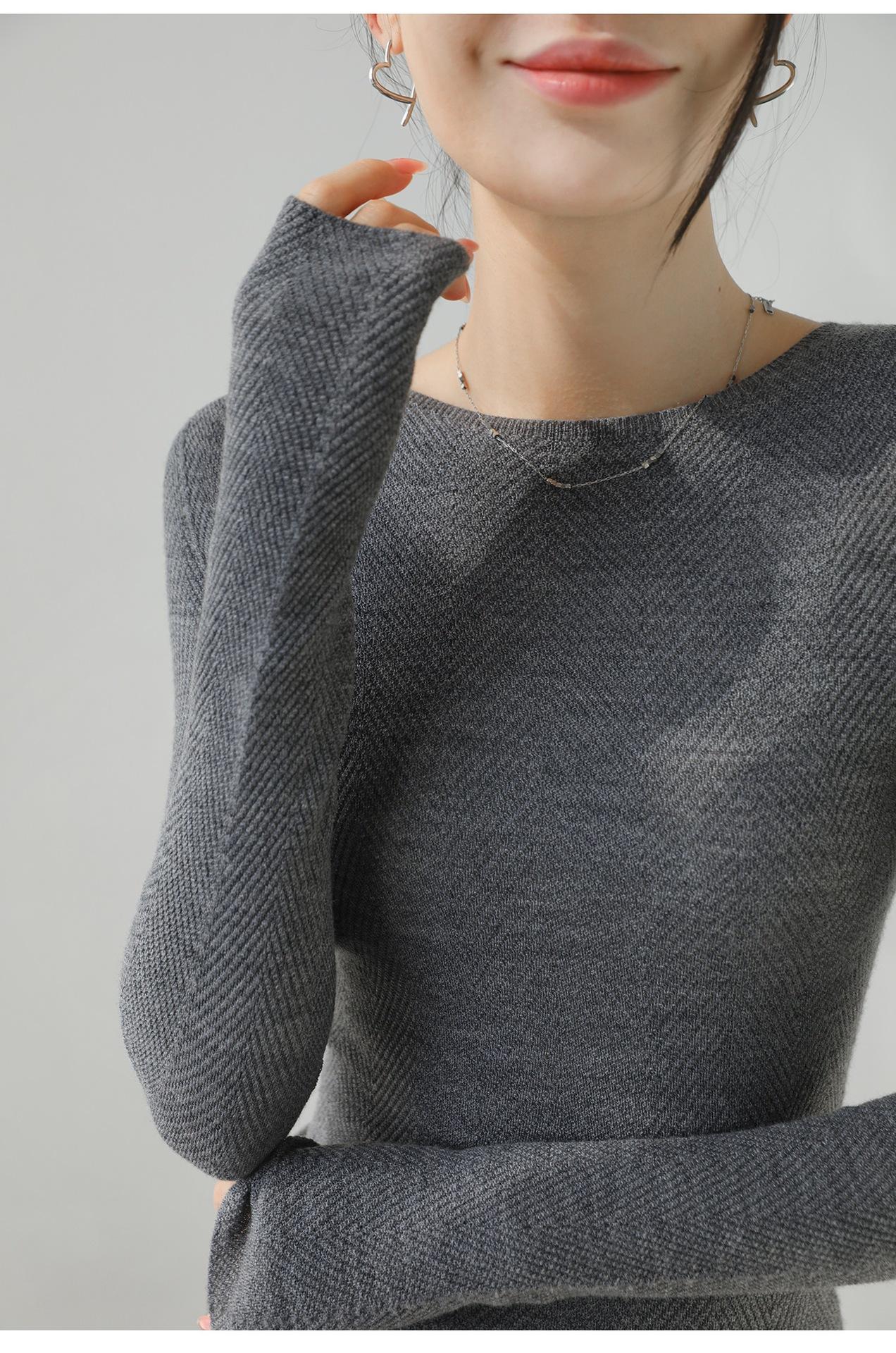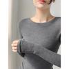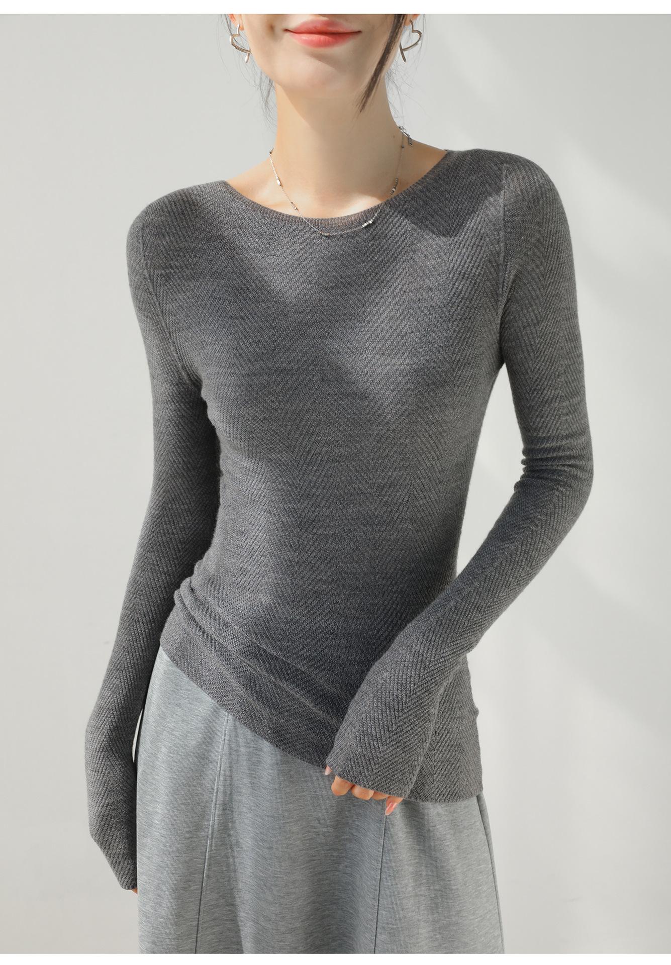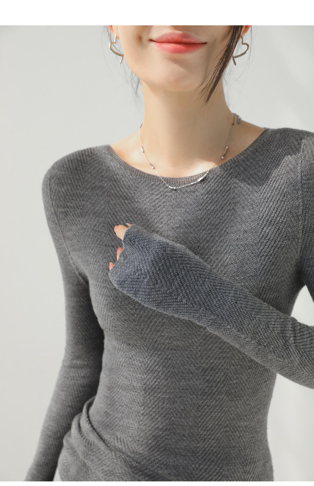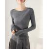 Suéter de Lana Tejido de Cuello Redondo para Mujer Ajustado Otoño Manga Larga Hilo Yangtze Ondulado Sin Costuras Jersey Camiseta Interior Top Gris Claro