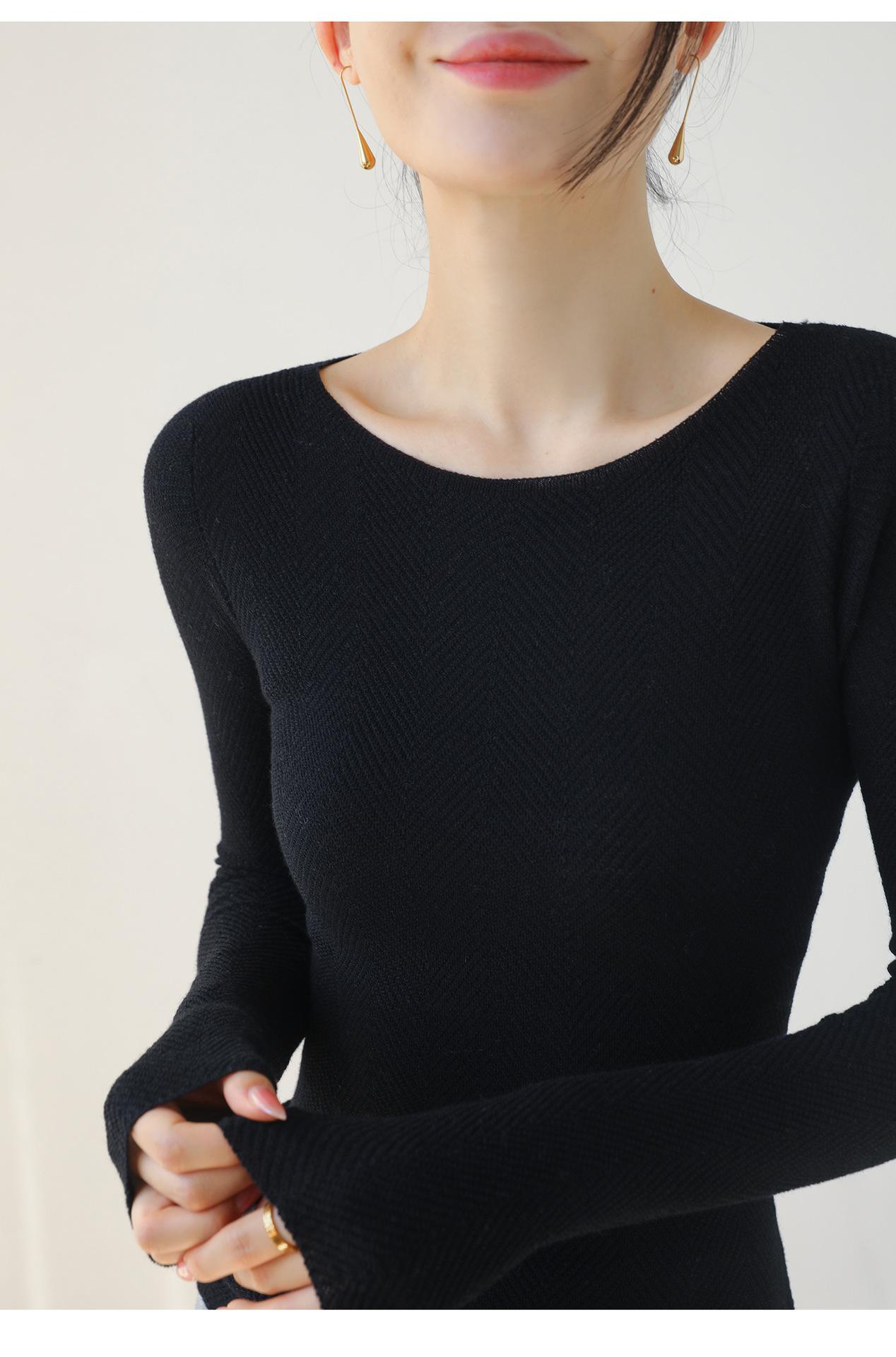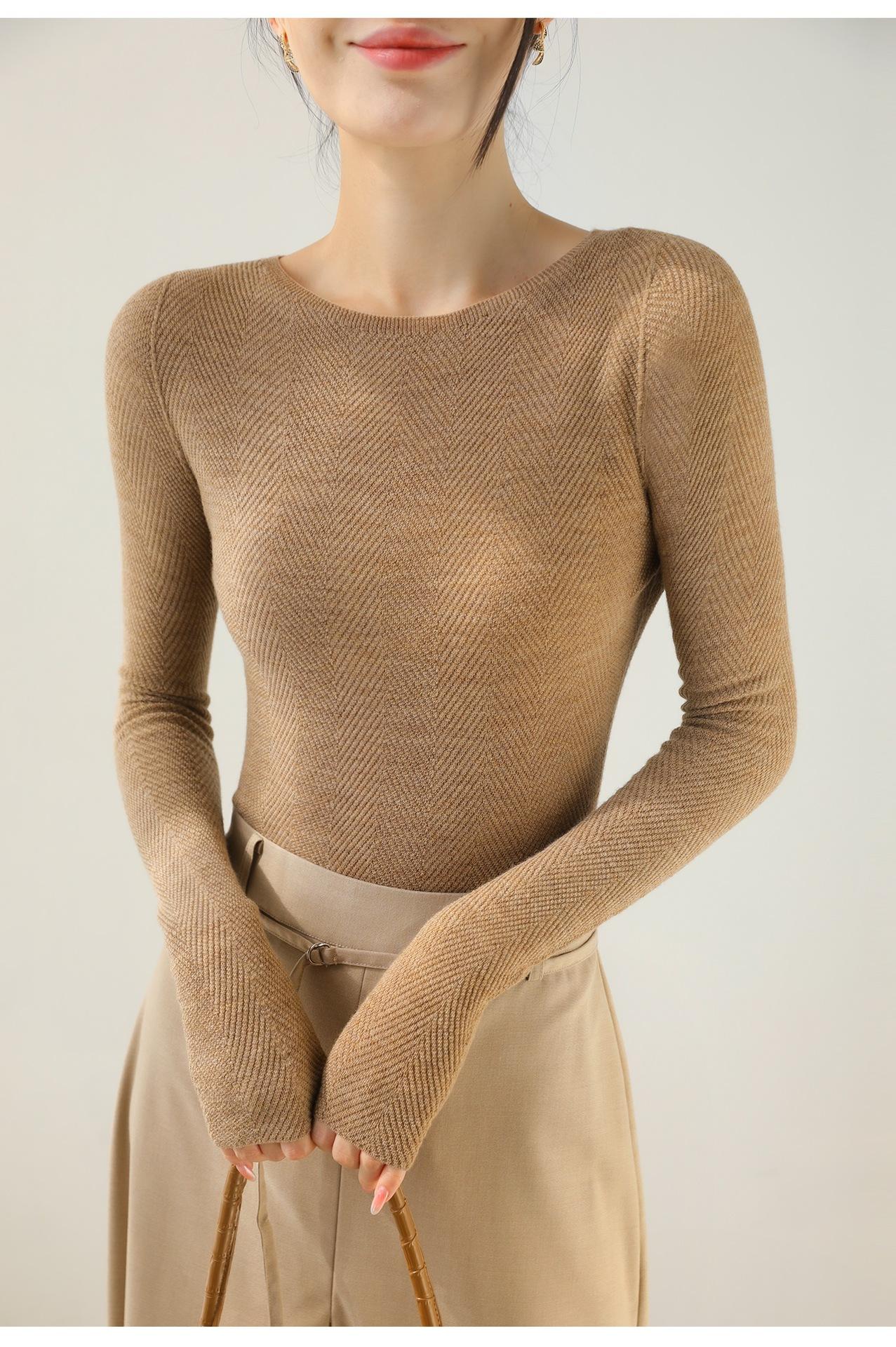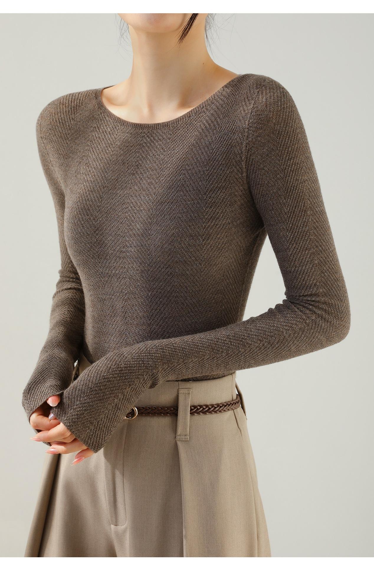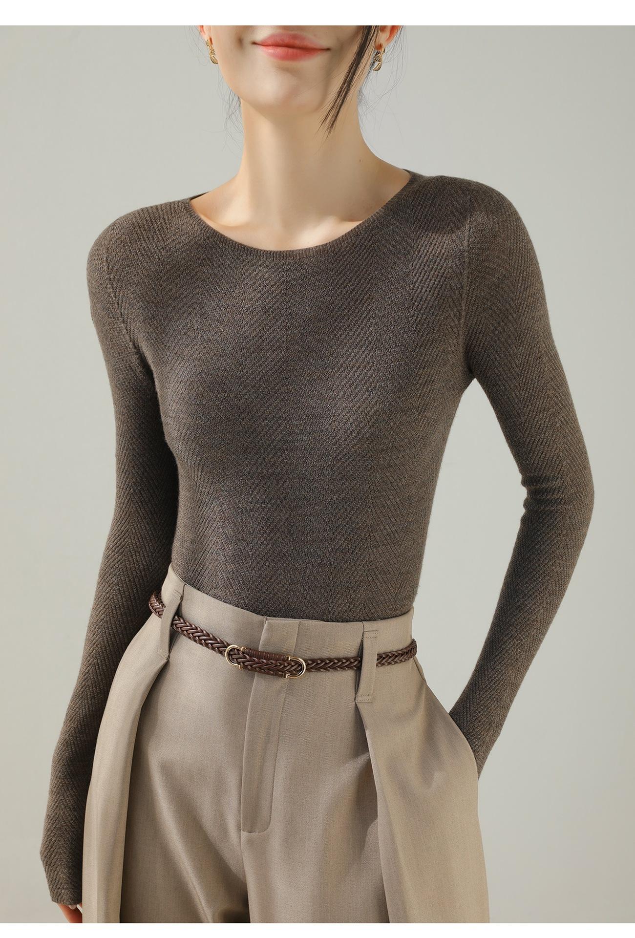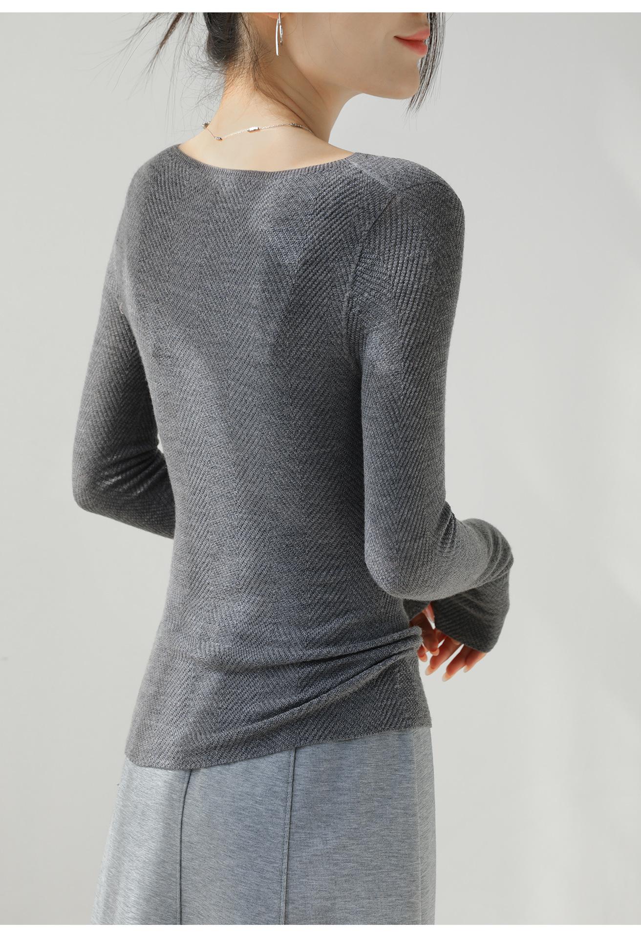 Suéter de Lana Tejido de Cuello Redondo para Mujer Ajustado Otoño Manga Larga Hilo Yangtze Ondulado Sin Costuras Jersey Camiseta Interior Top Gris Claro