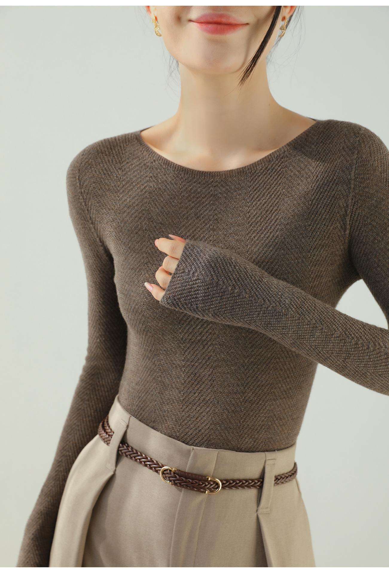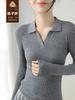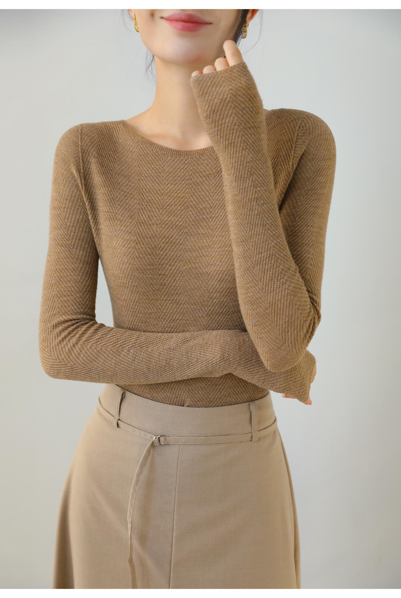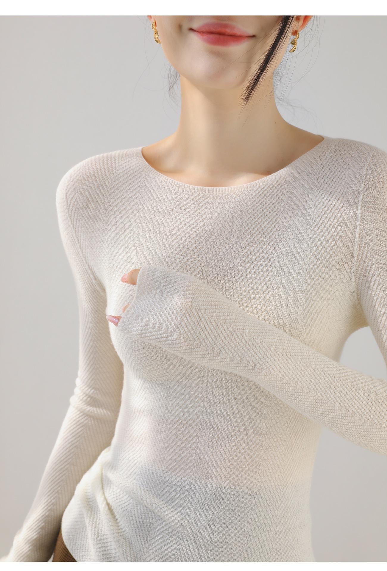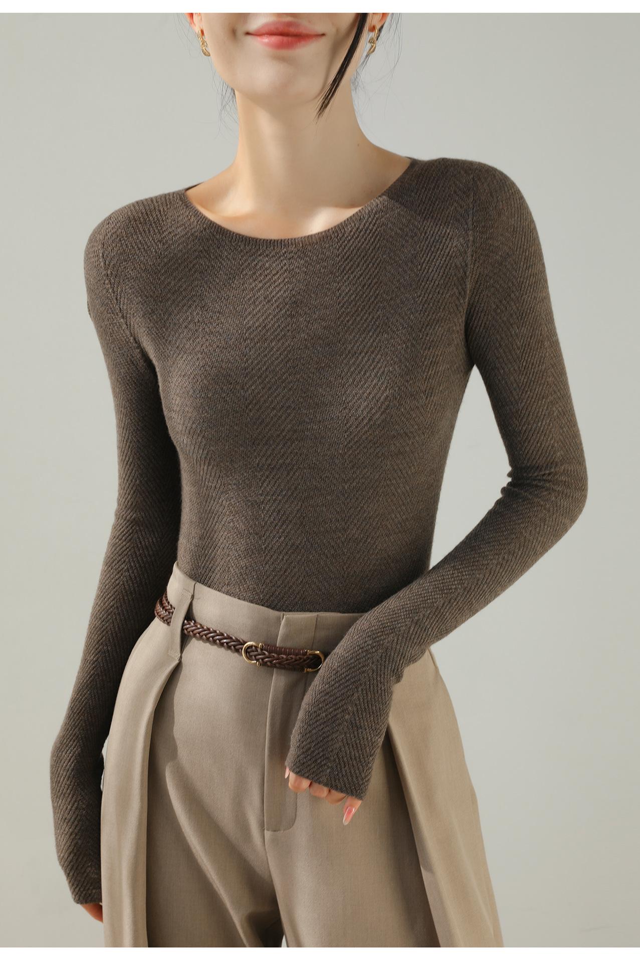 Suéter de Lana Tejido de Cuello Redondo para Mujer Ajustado Otoño Manga Larga Hilo Yangtze Ondulado Sin Costuras Jersey Camiseta Interior Top Gris Claro