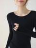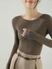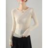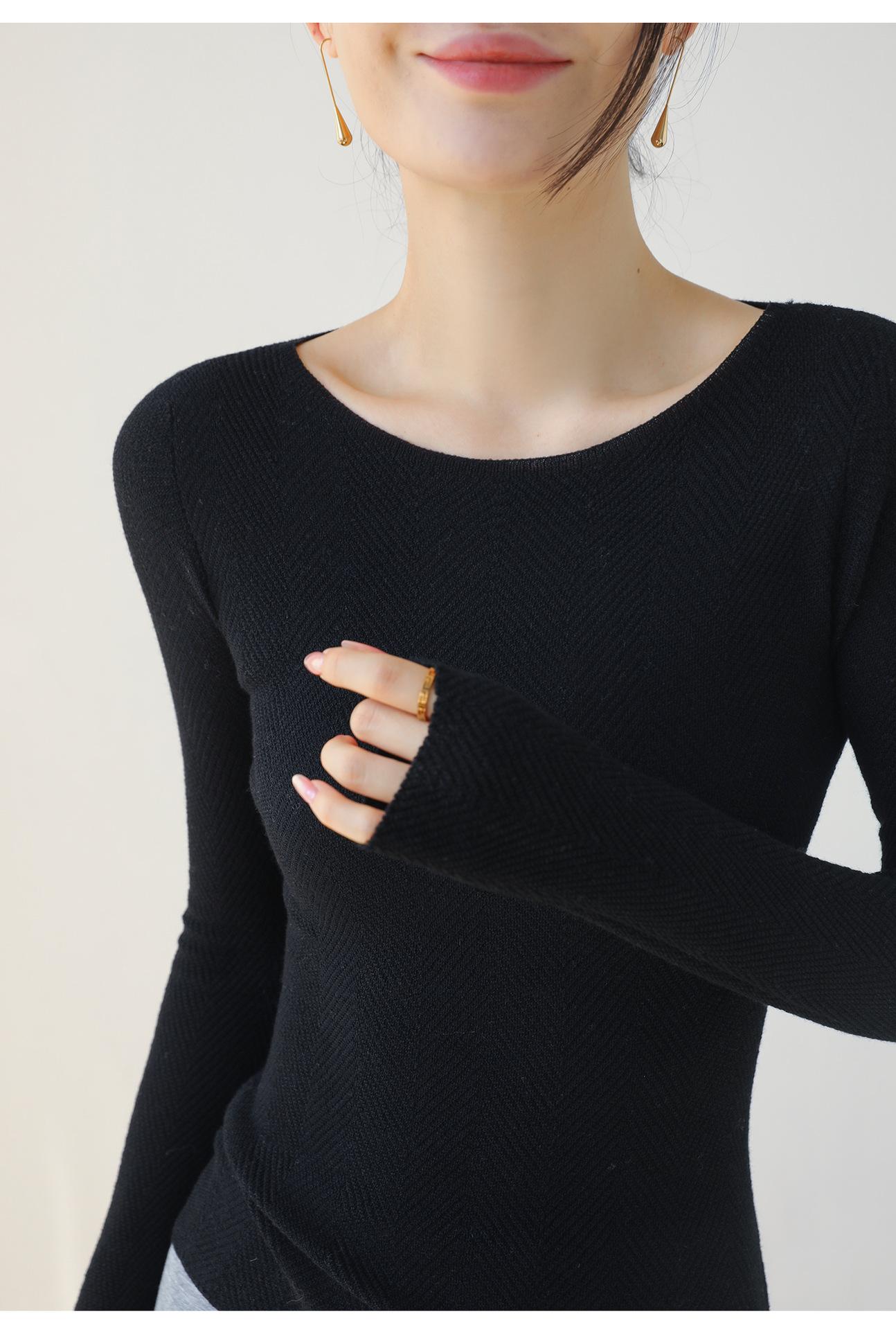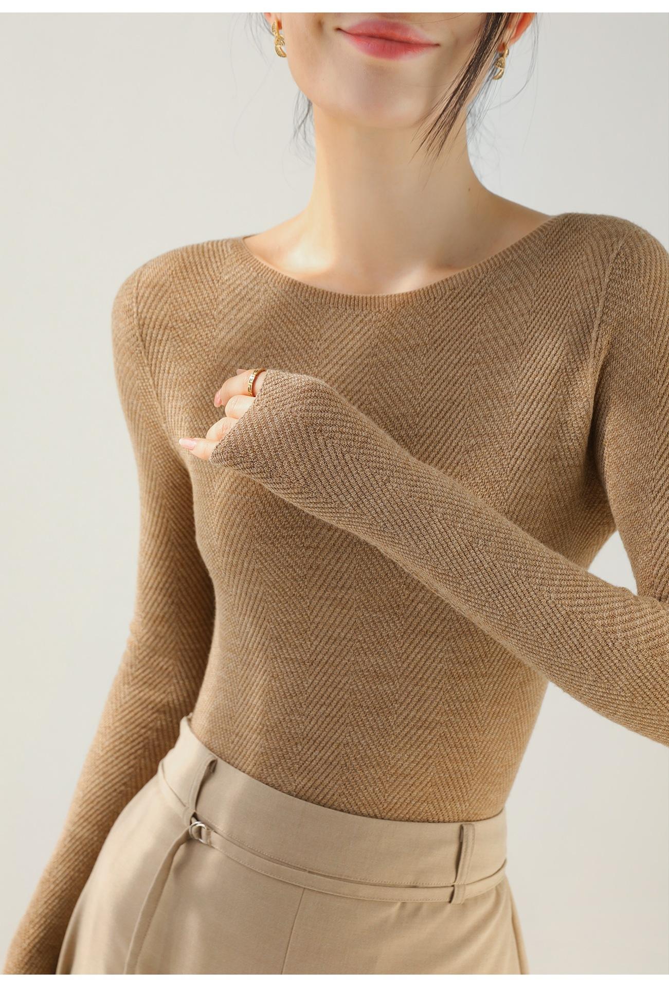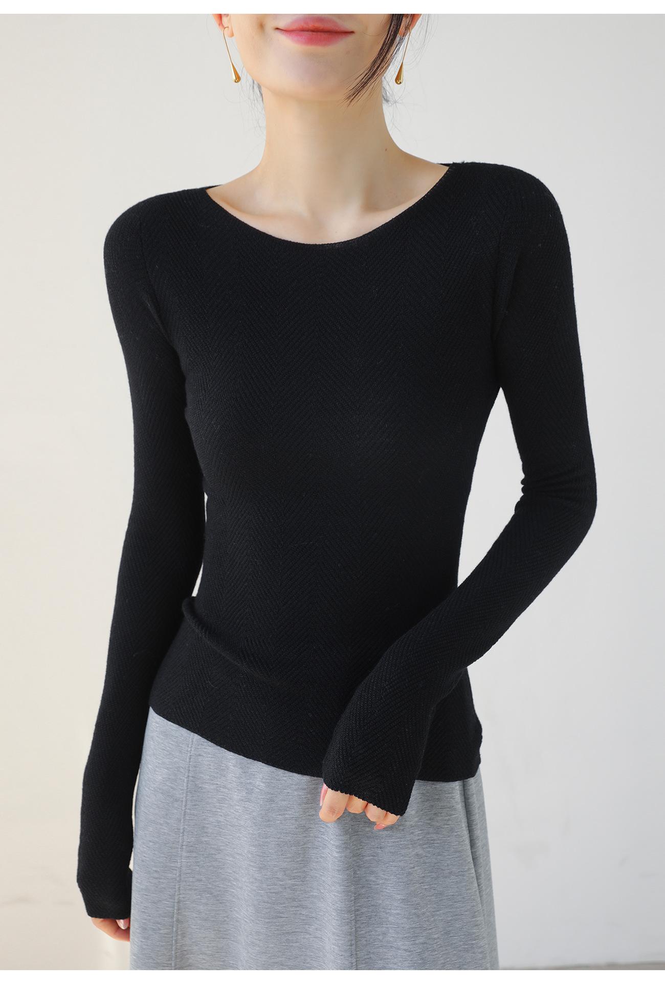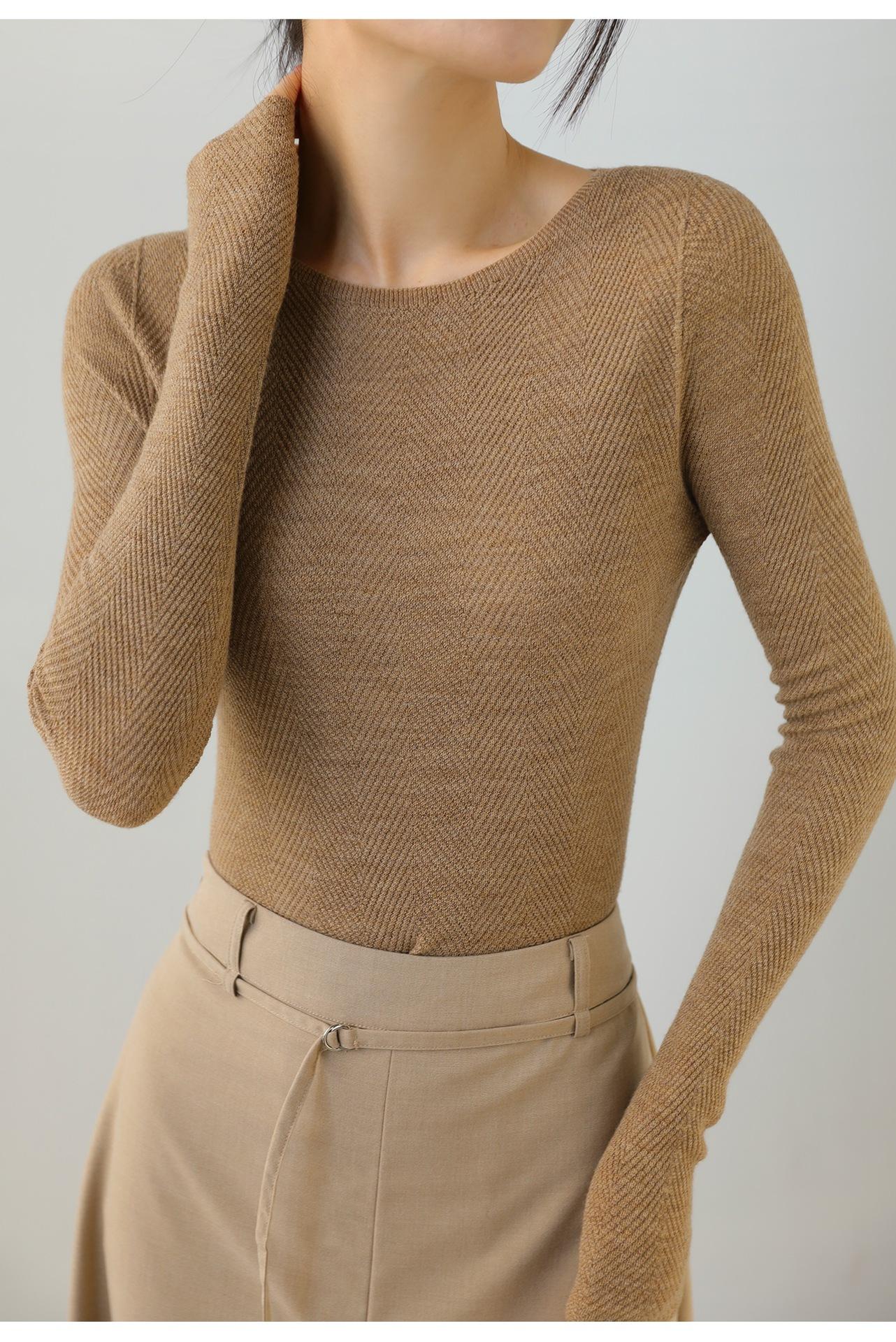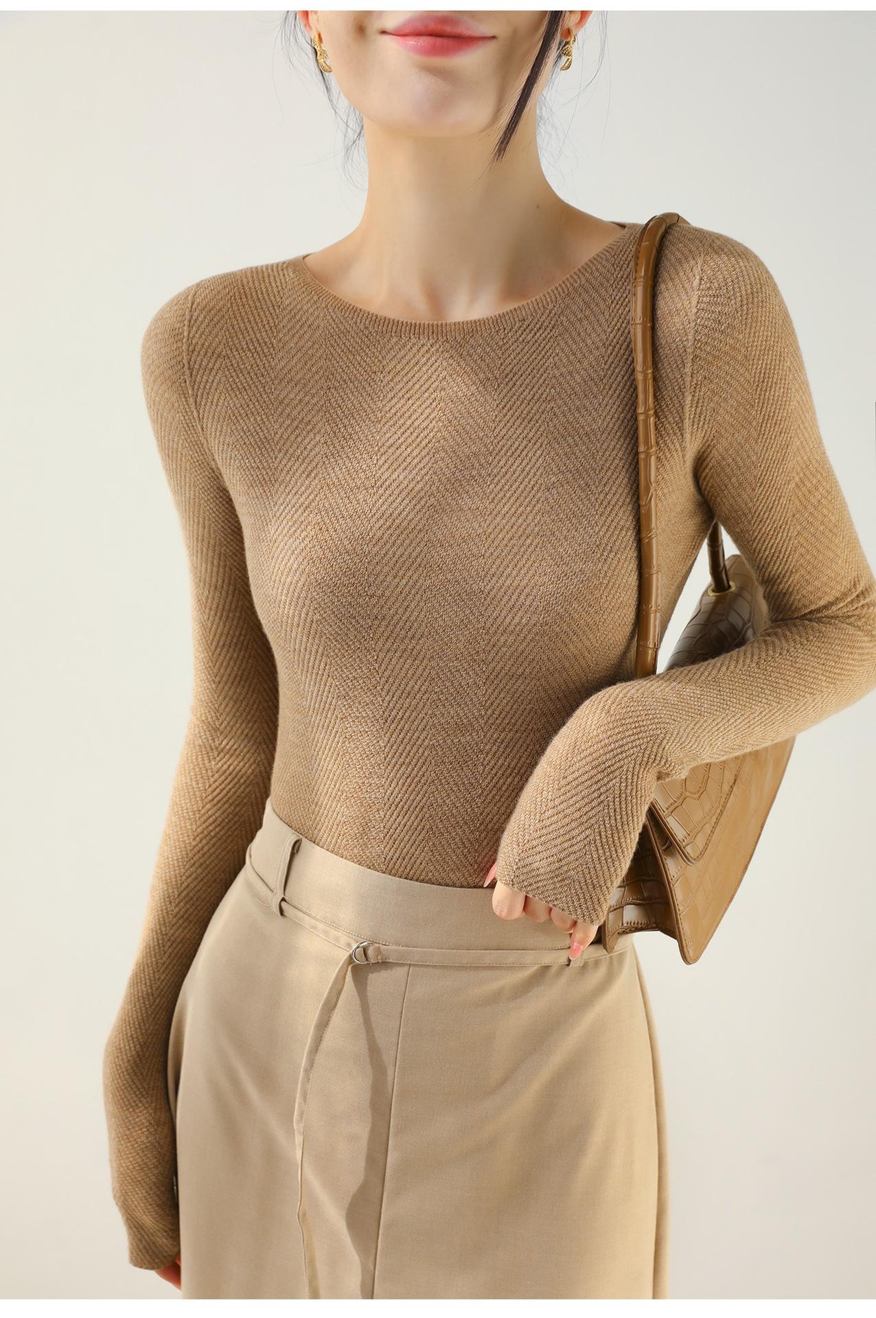 Suéter de Lana Tejido de Cuello Redondo para Mujer Ajustado Otoño Manga Larga Hilo Yangtze Ondulado Sin Costuras Jersey Camiseta Interior Top Gris Claro