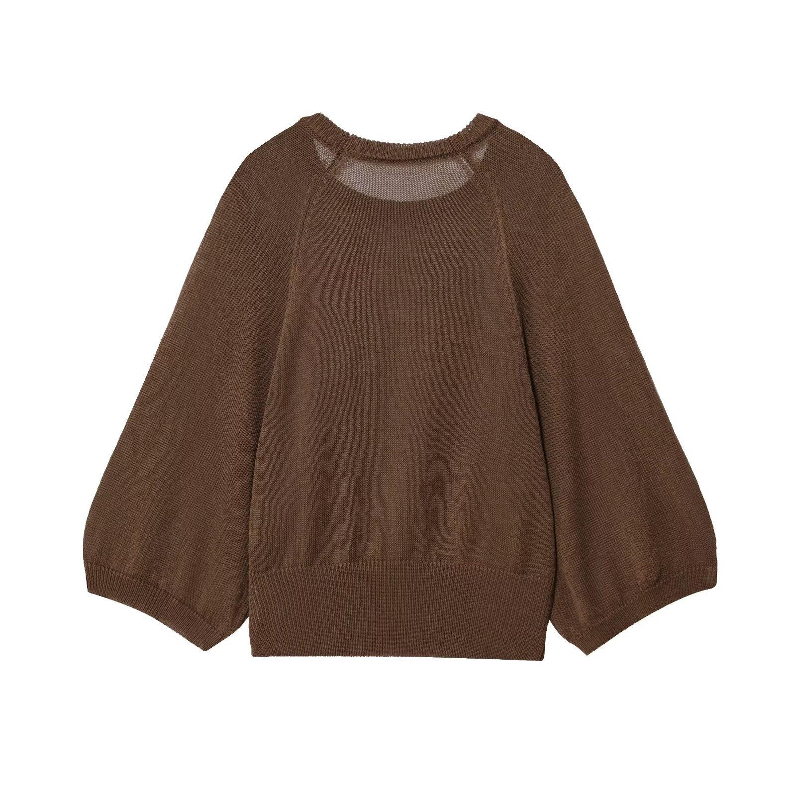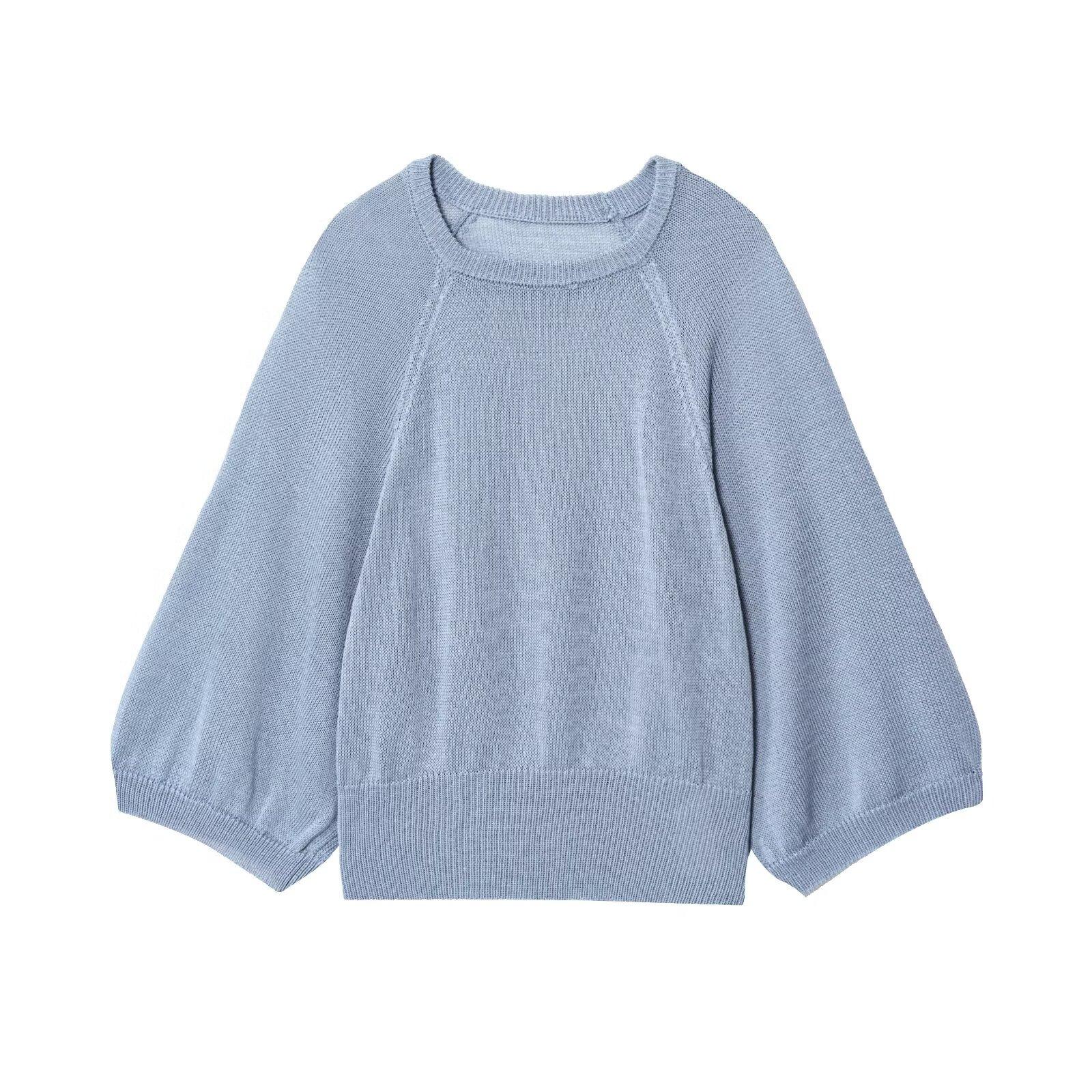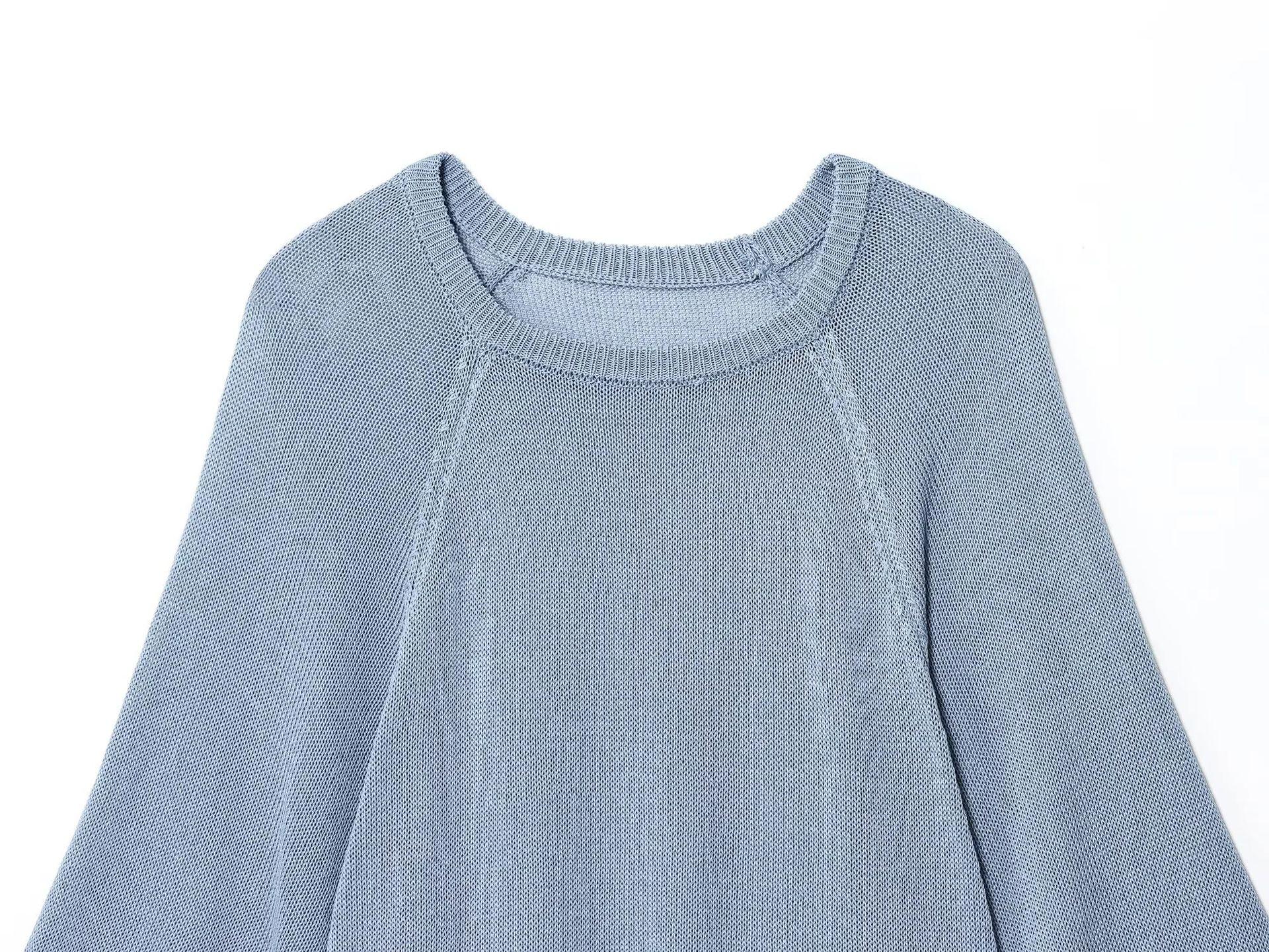 Ropa de mujer de comercio exterior transfronterizo de Amazon 2025 otoño nuevo estilo nicho minimalista moda suéter de punto holgado de cuello redondo de color sólido