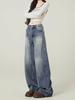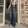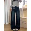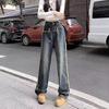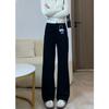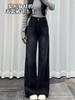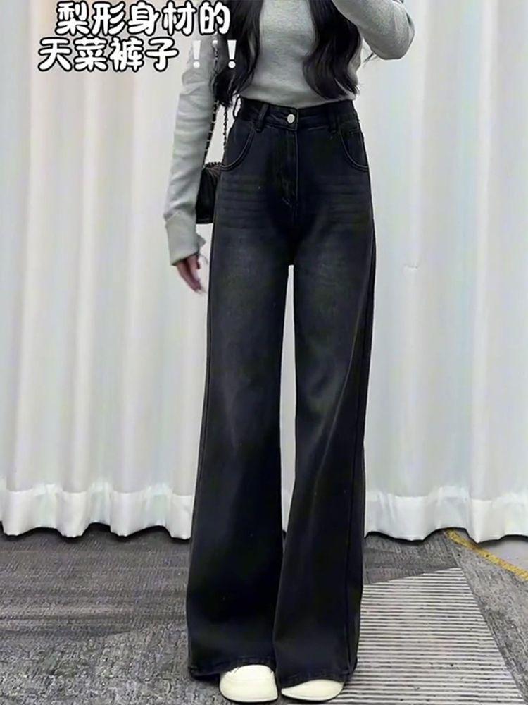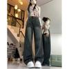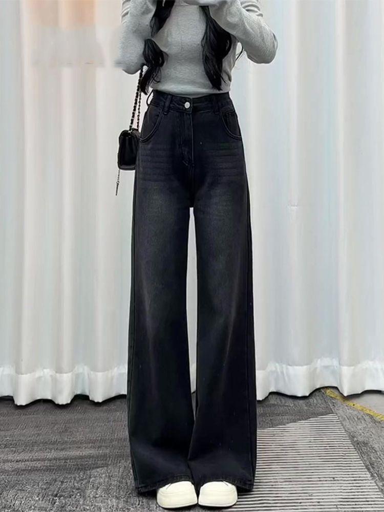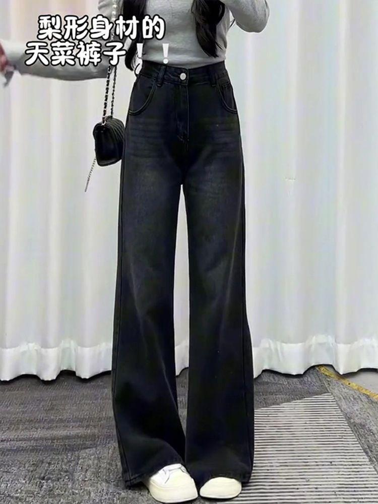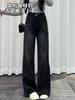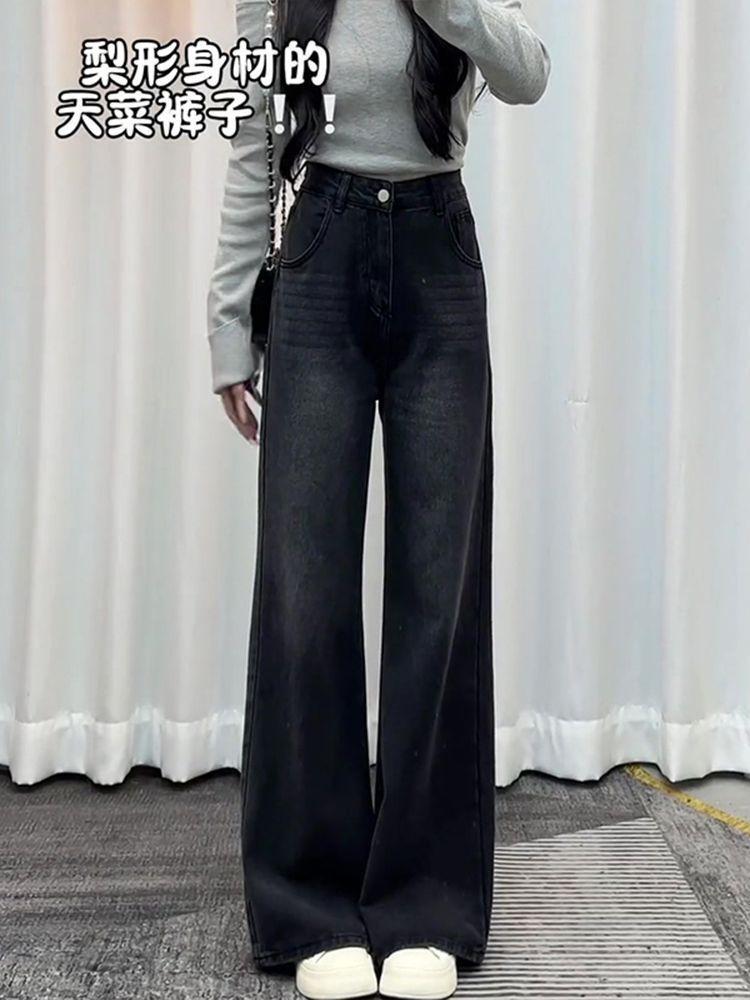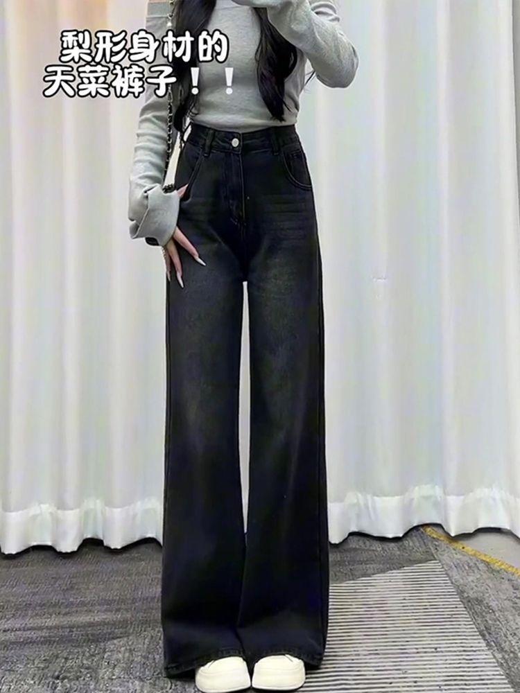 Jeans holgados adelgazantes de pierna ancha negro-gris para mujer 2025 primavera y otoño nuevos talla grande pierna recta caída pantalones largos hasta el suelo