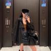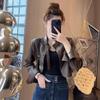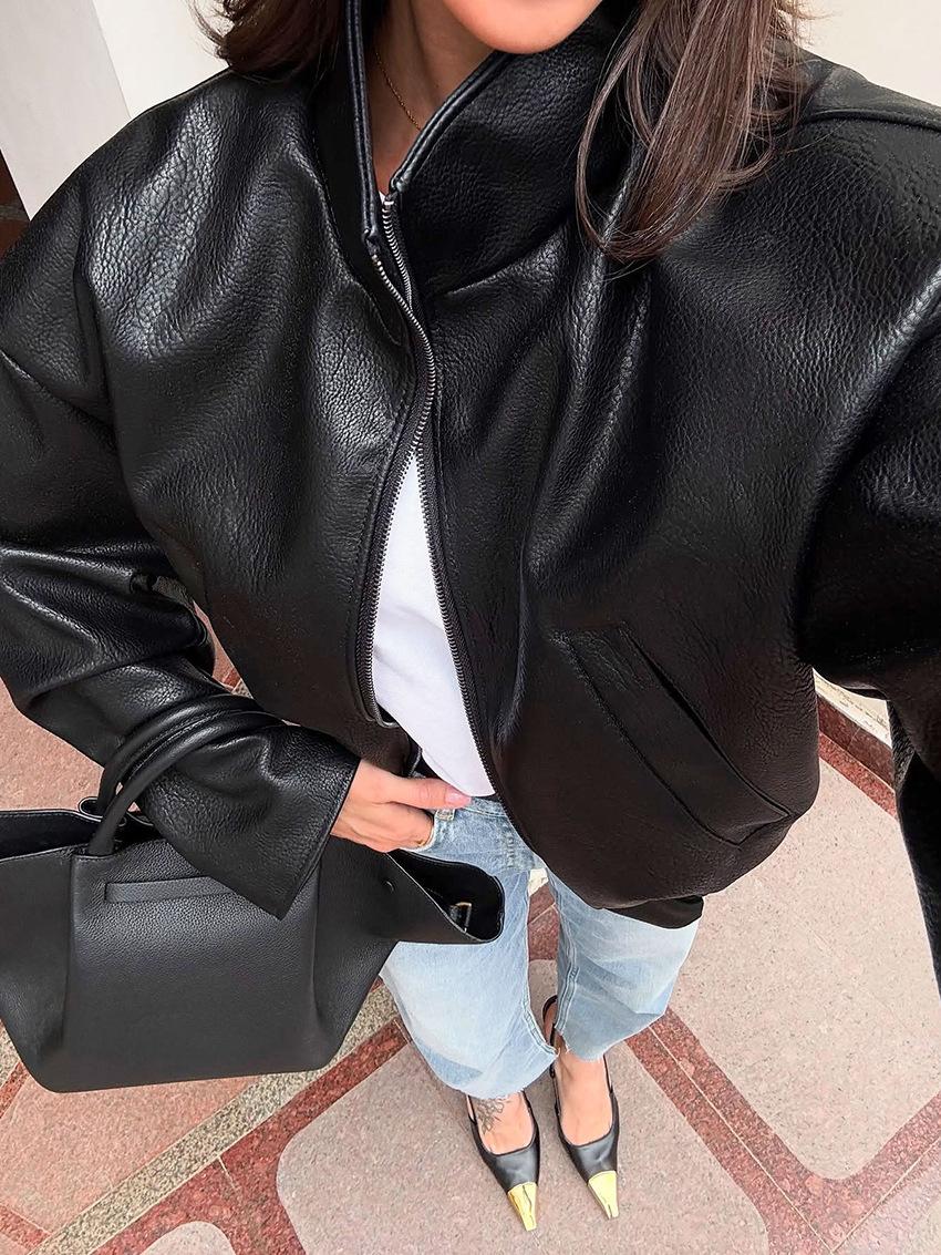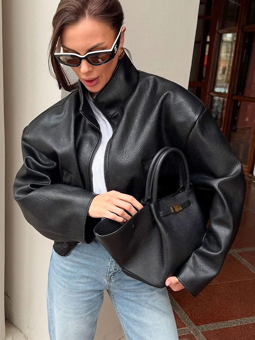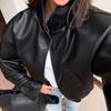 Otoño e invierno nuevo abrigo de chaqueta de cuero PU negro de alta gama mujer sentido del diseño temperamento moda 2025 transfronterizo para ir al trabajo