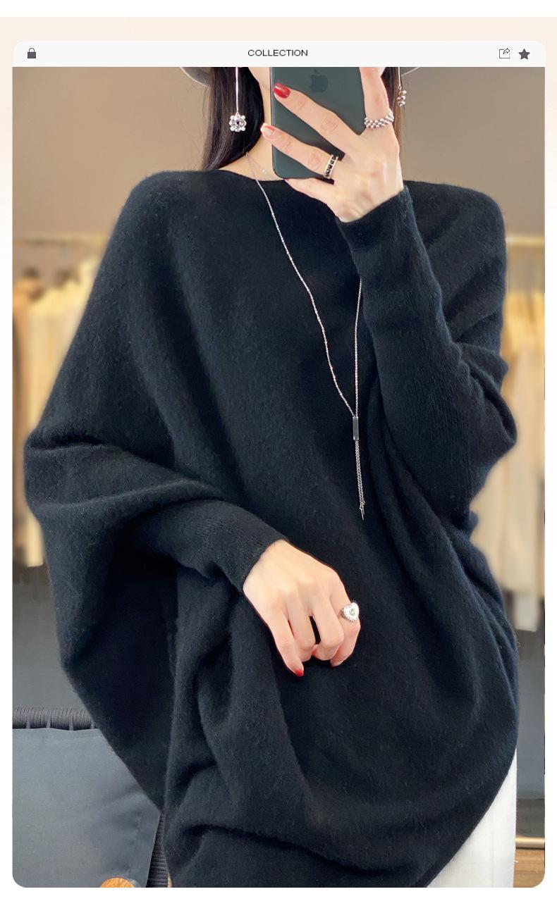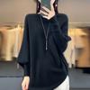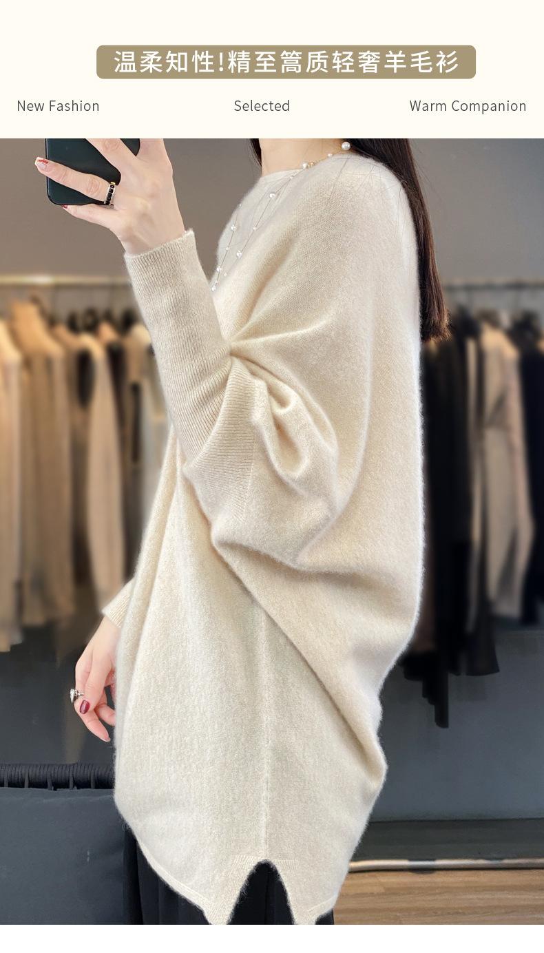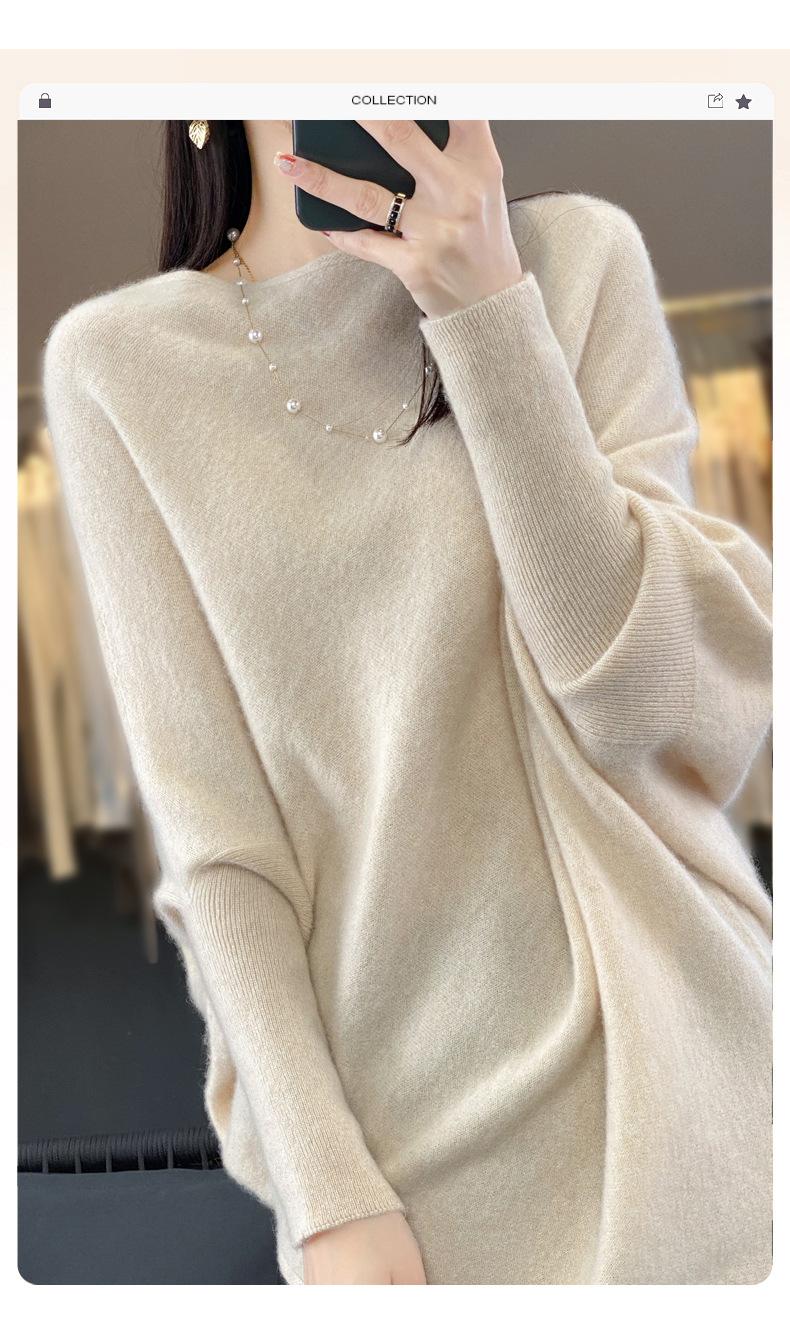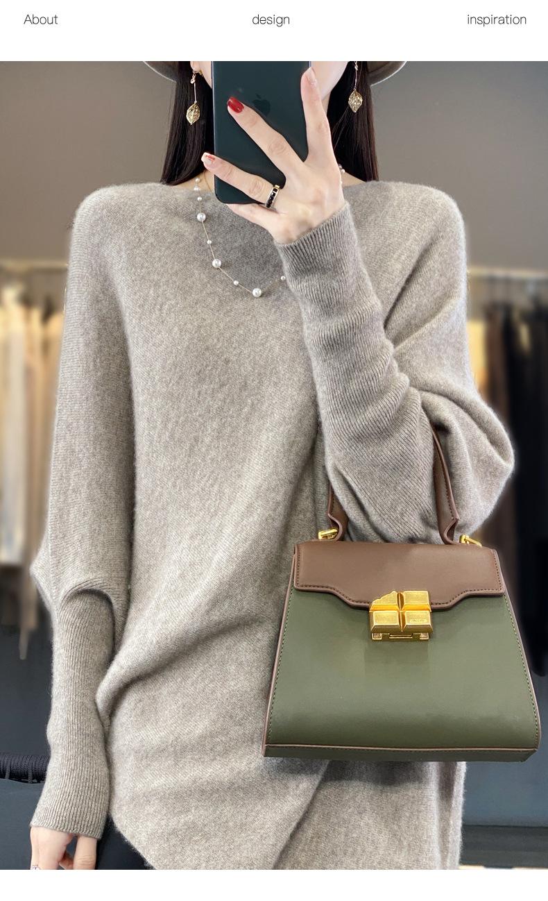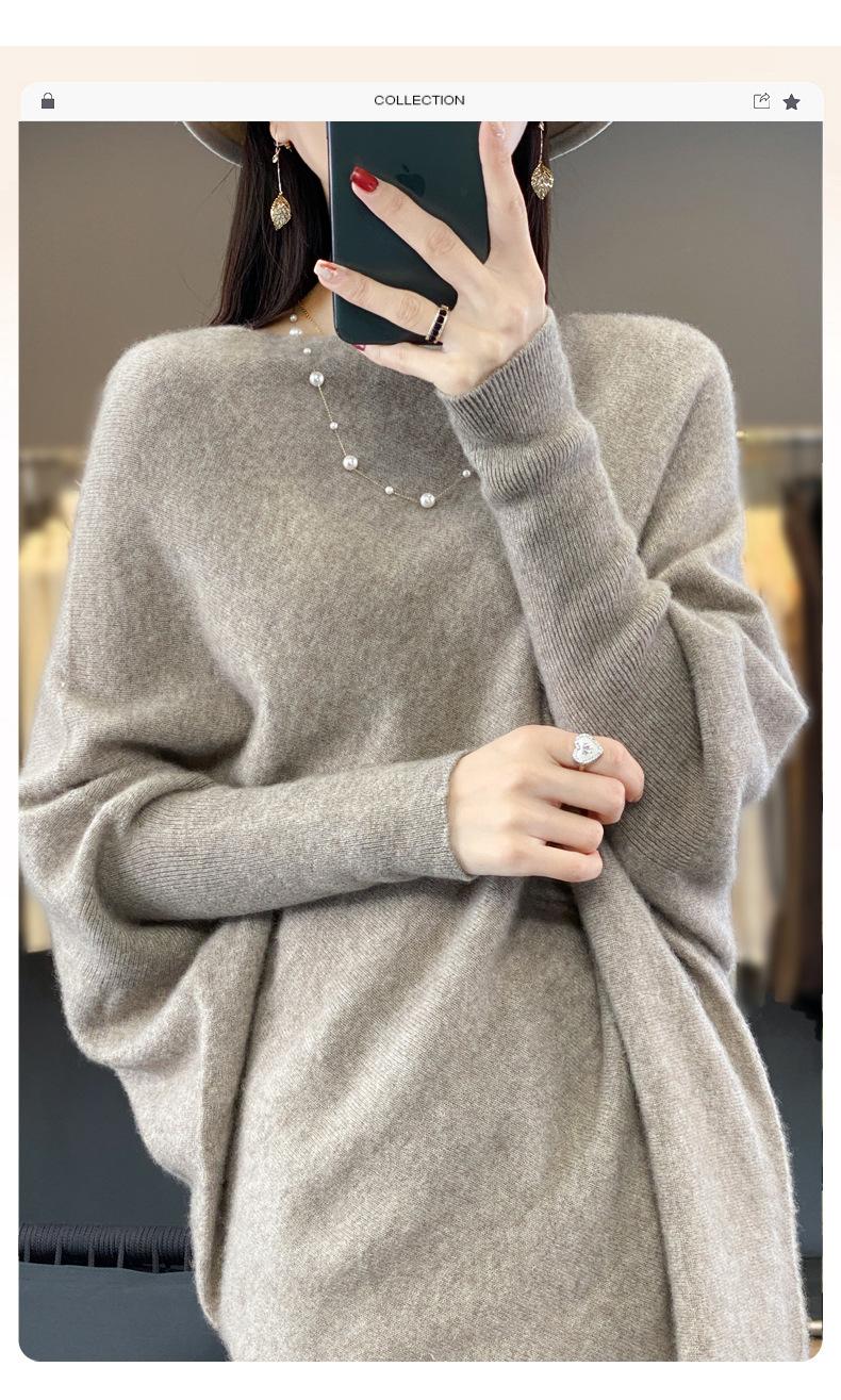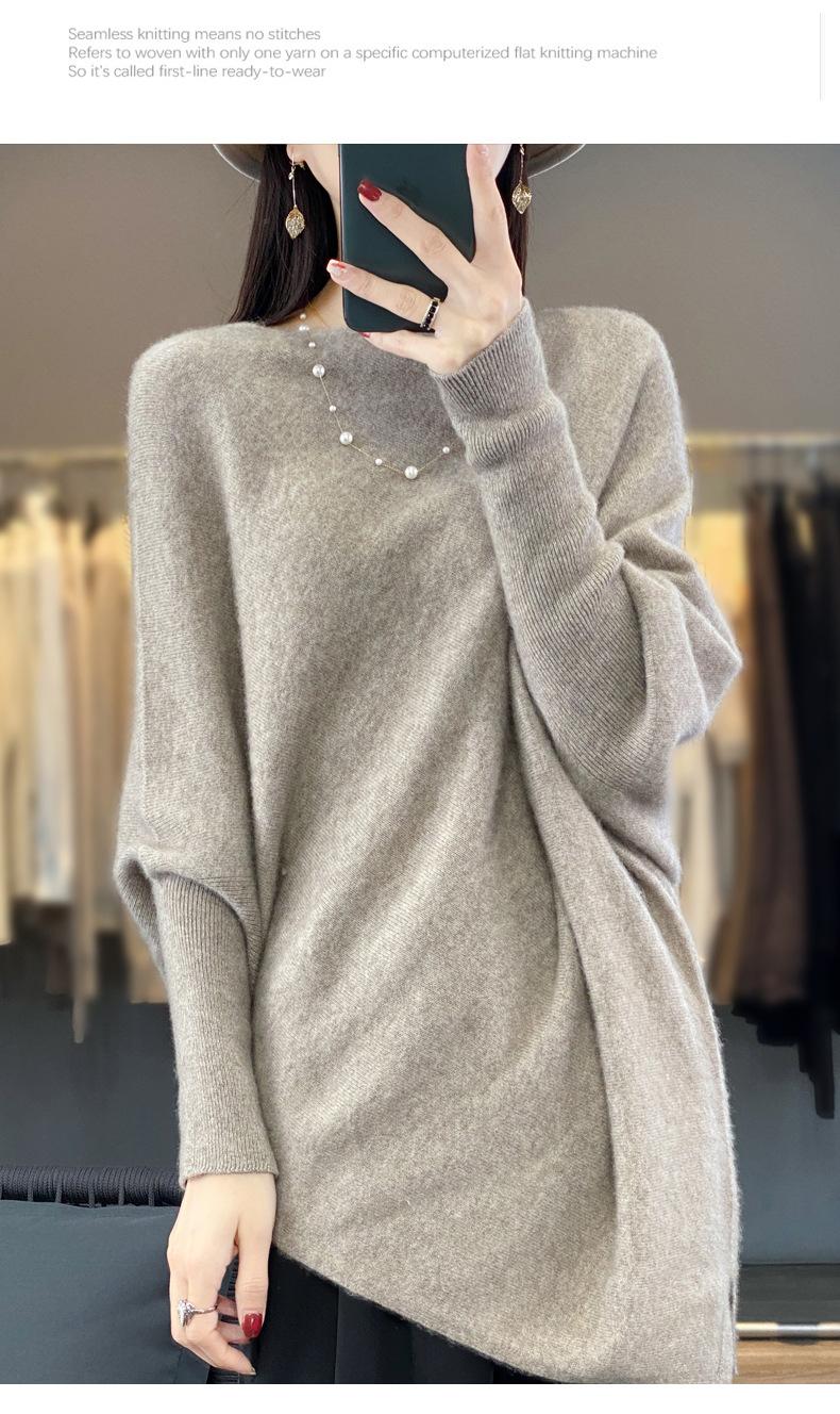 Suéter Nuevo Otoño/Invierno Lana Pura Mujer Jersey Un Hombro Suelto Largo Medio Abrigo Suéter Manga Murciélago Tejido Base