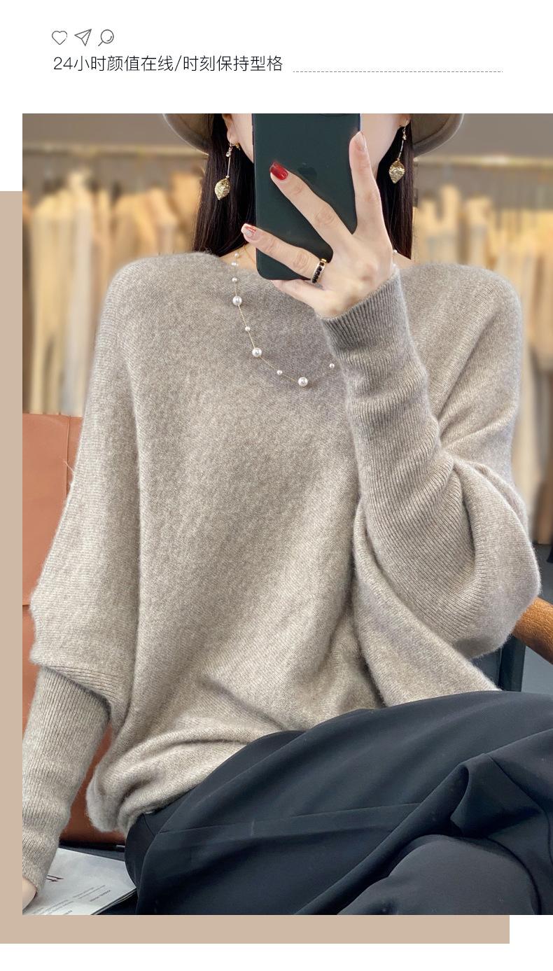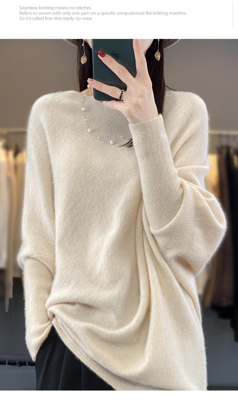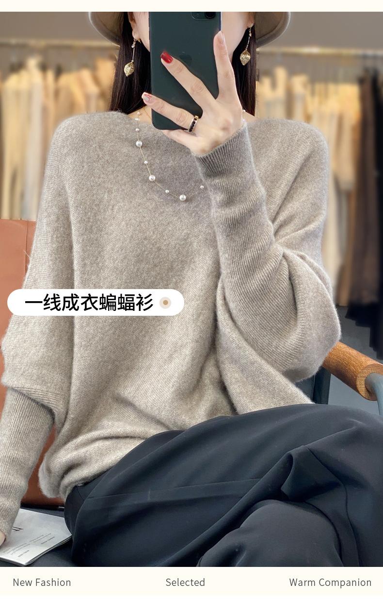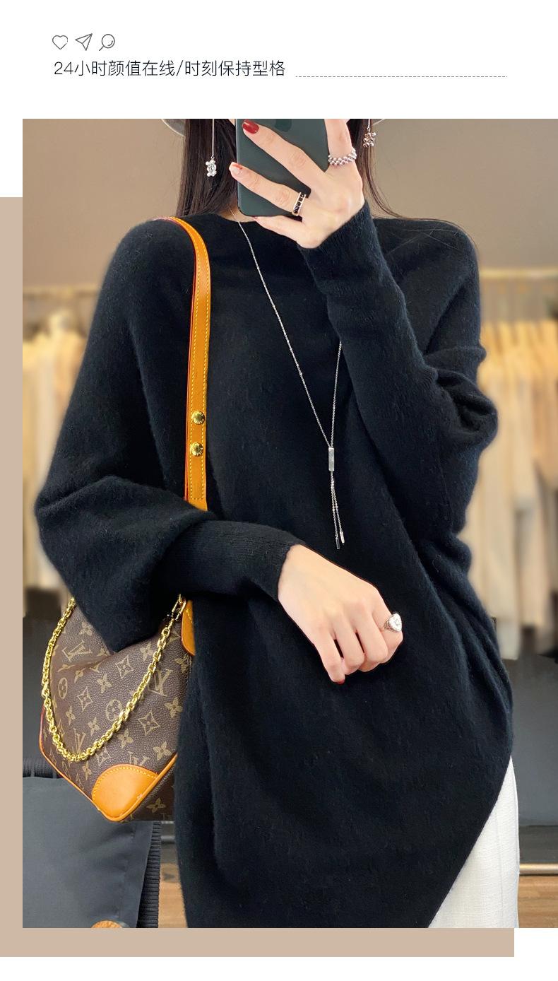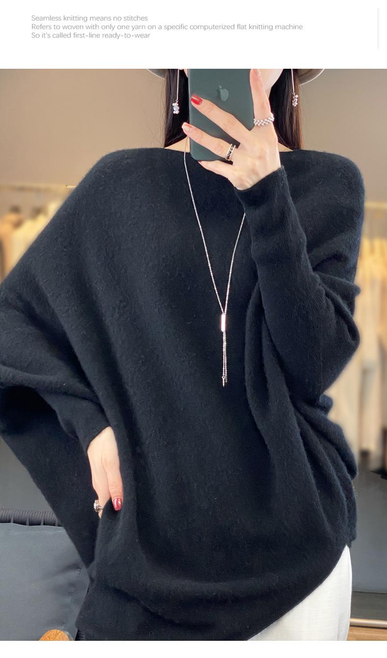 Suéter Nuevo Otoño/Invierno Lana Pura Mujer Jersey Un Hombro Suelto Largo Medio Abrigo Suéter Manga Murciélago Tejido Base
