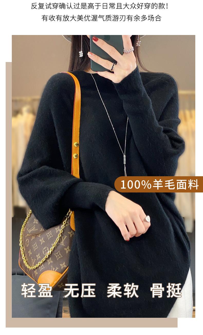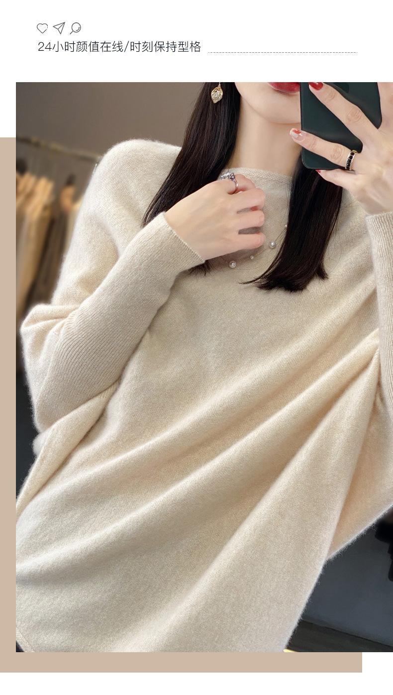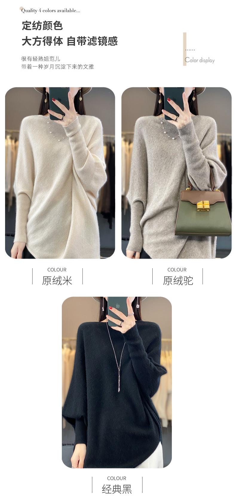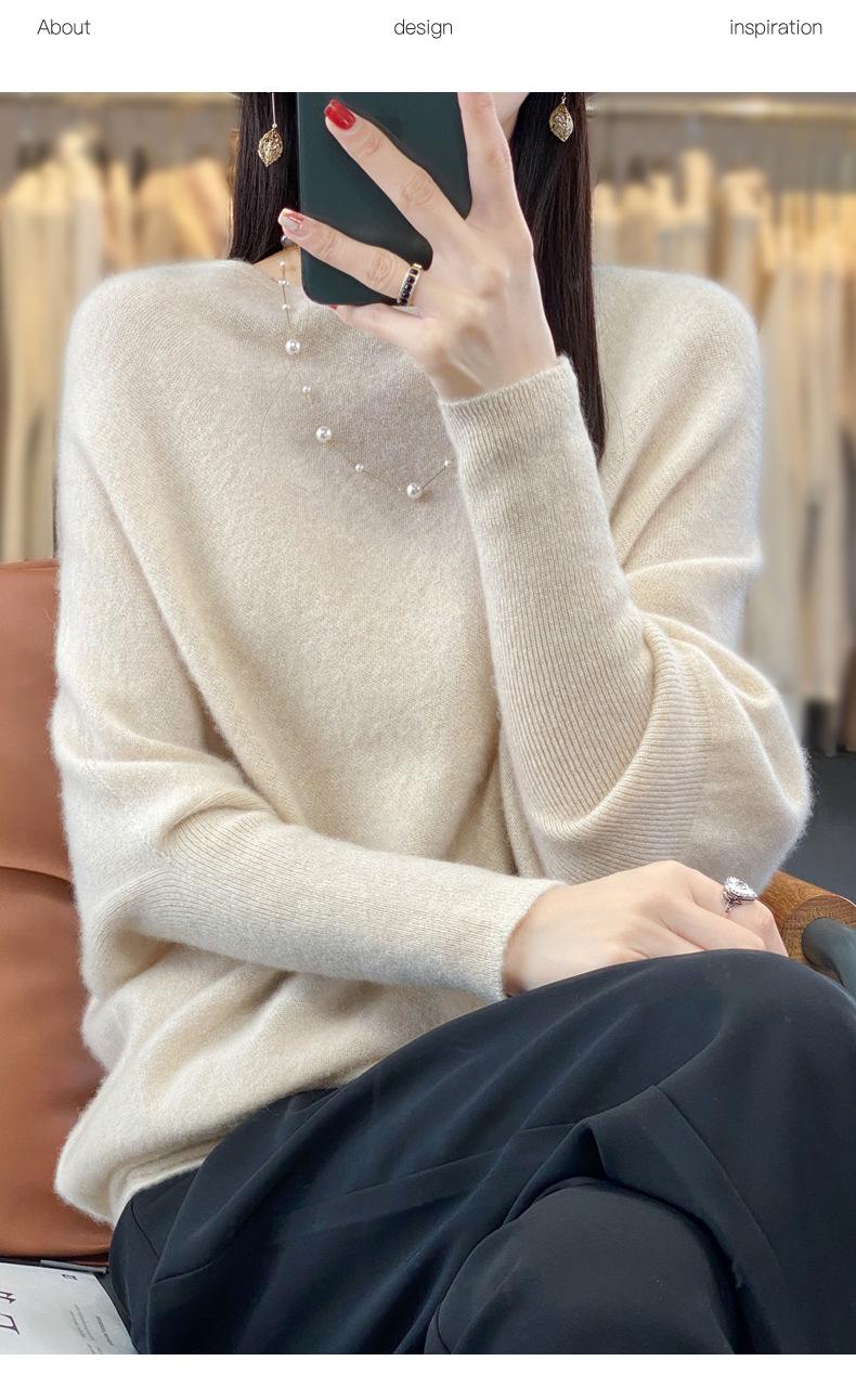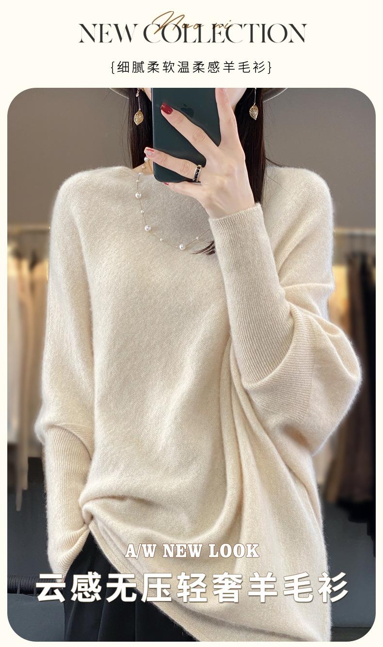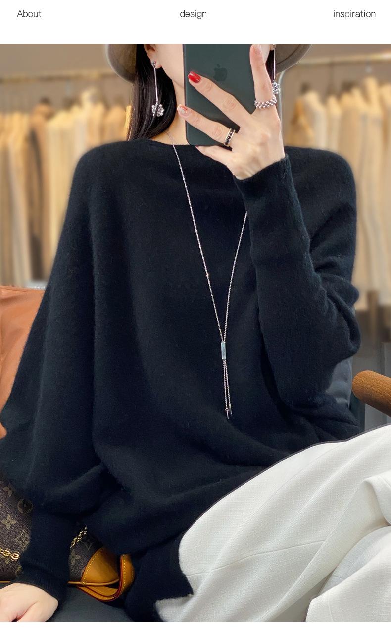 Suéter Nuevo Otoño/Invierno Lana Pura Mujer Jersey Un Hombro Suelto Largo Medio Abrigo Suéter Manga Murciélago Tejido Base