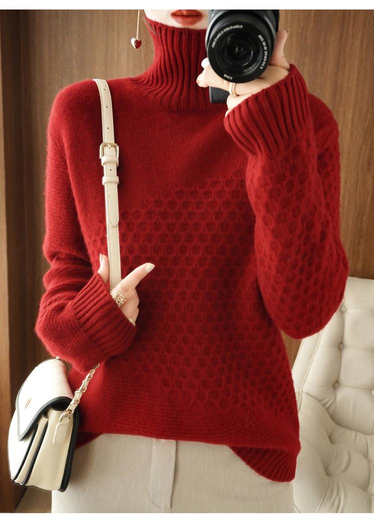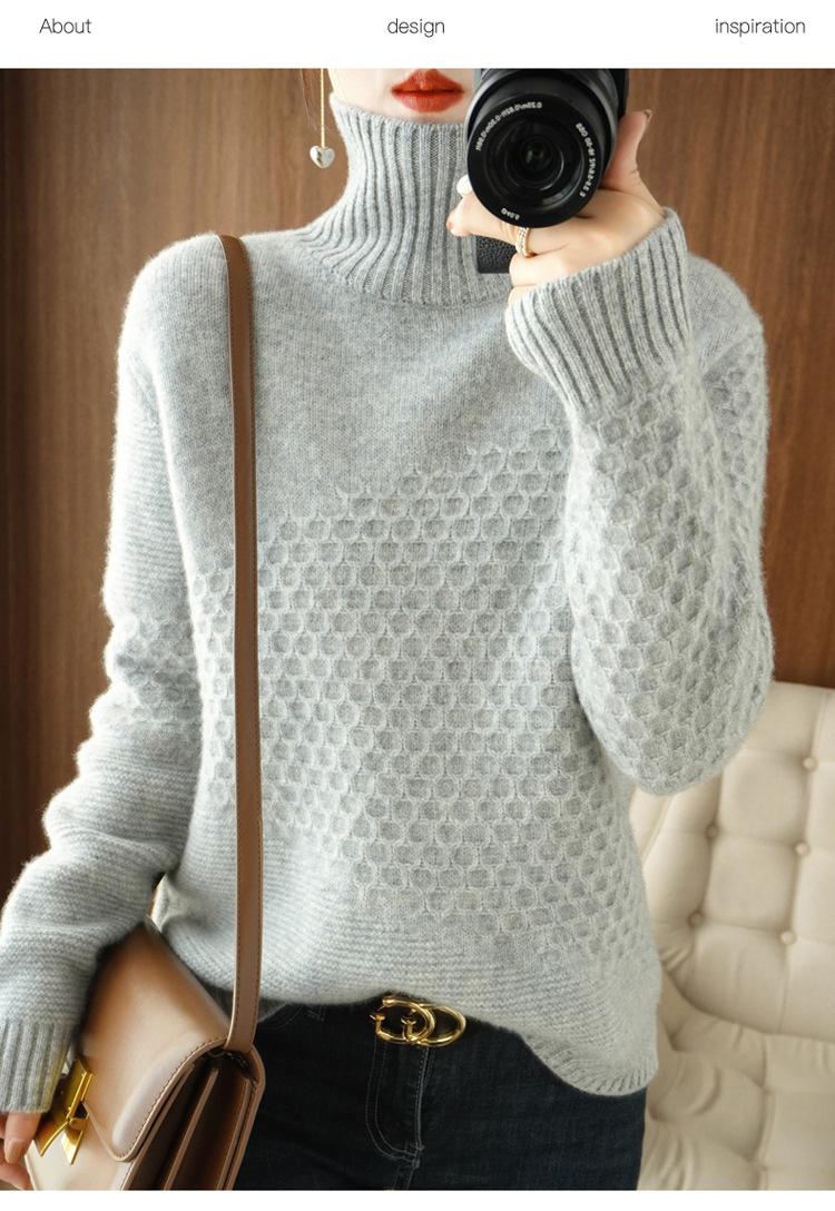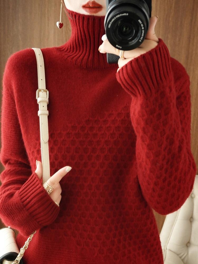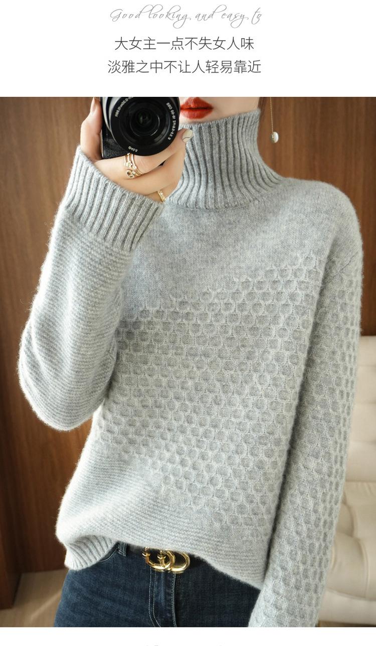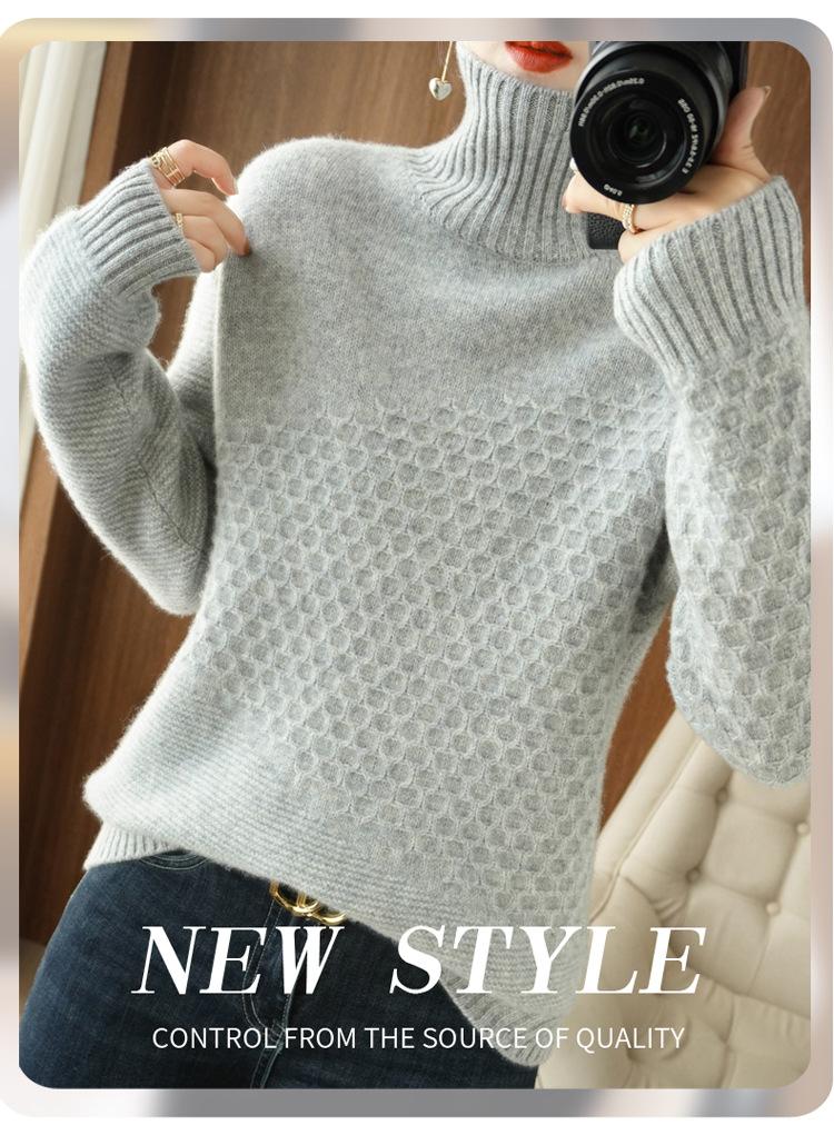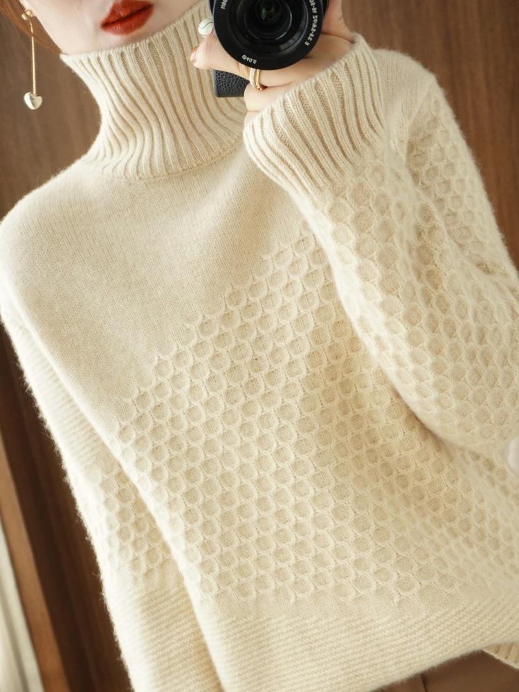 2025 Otoño/Invierno Nuevo Suéter de Cuello Alto para Mujer Suéter Holgado Versátil Tejido Grueso Top Capa Base
