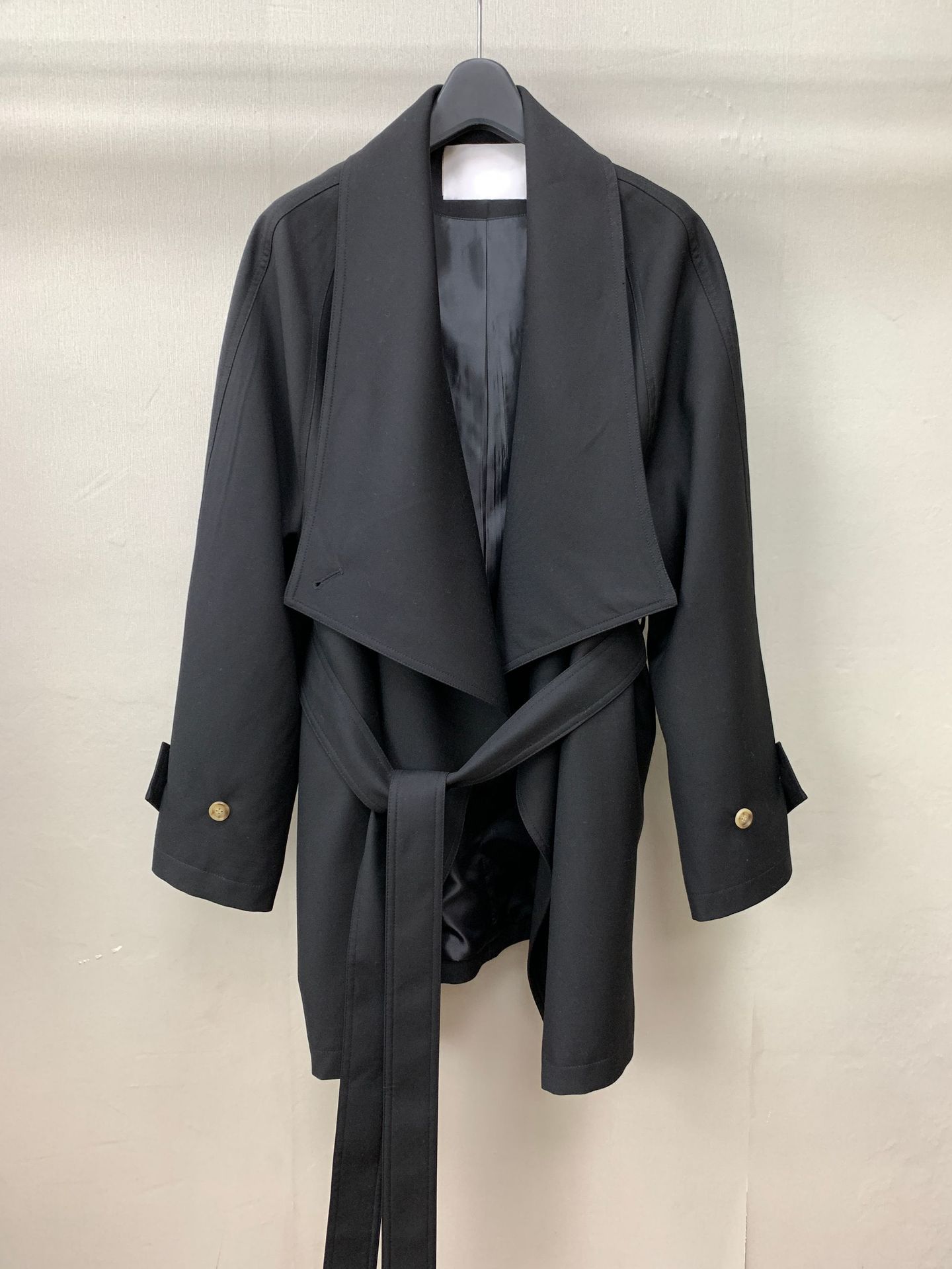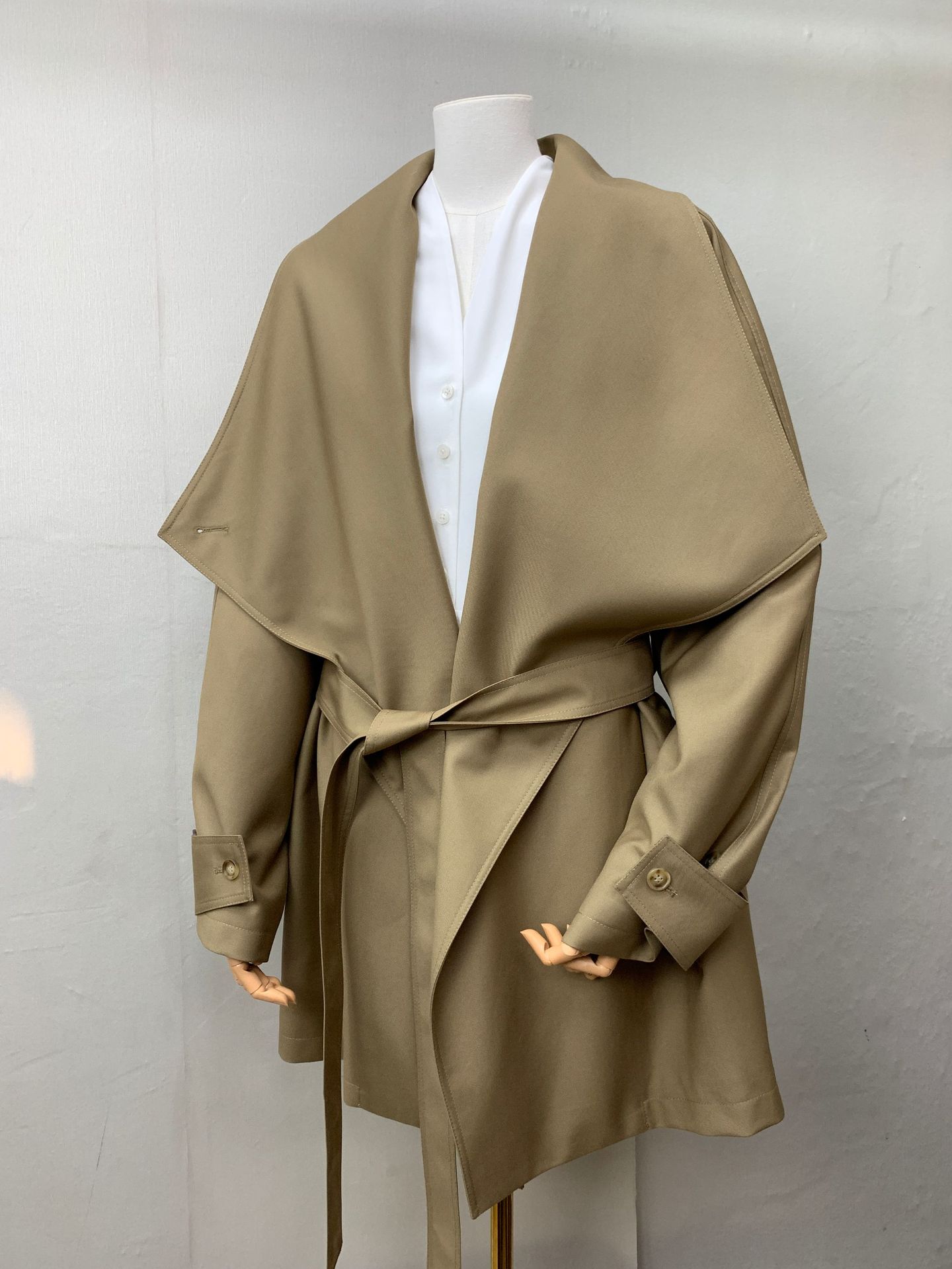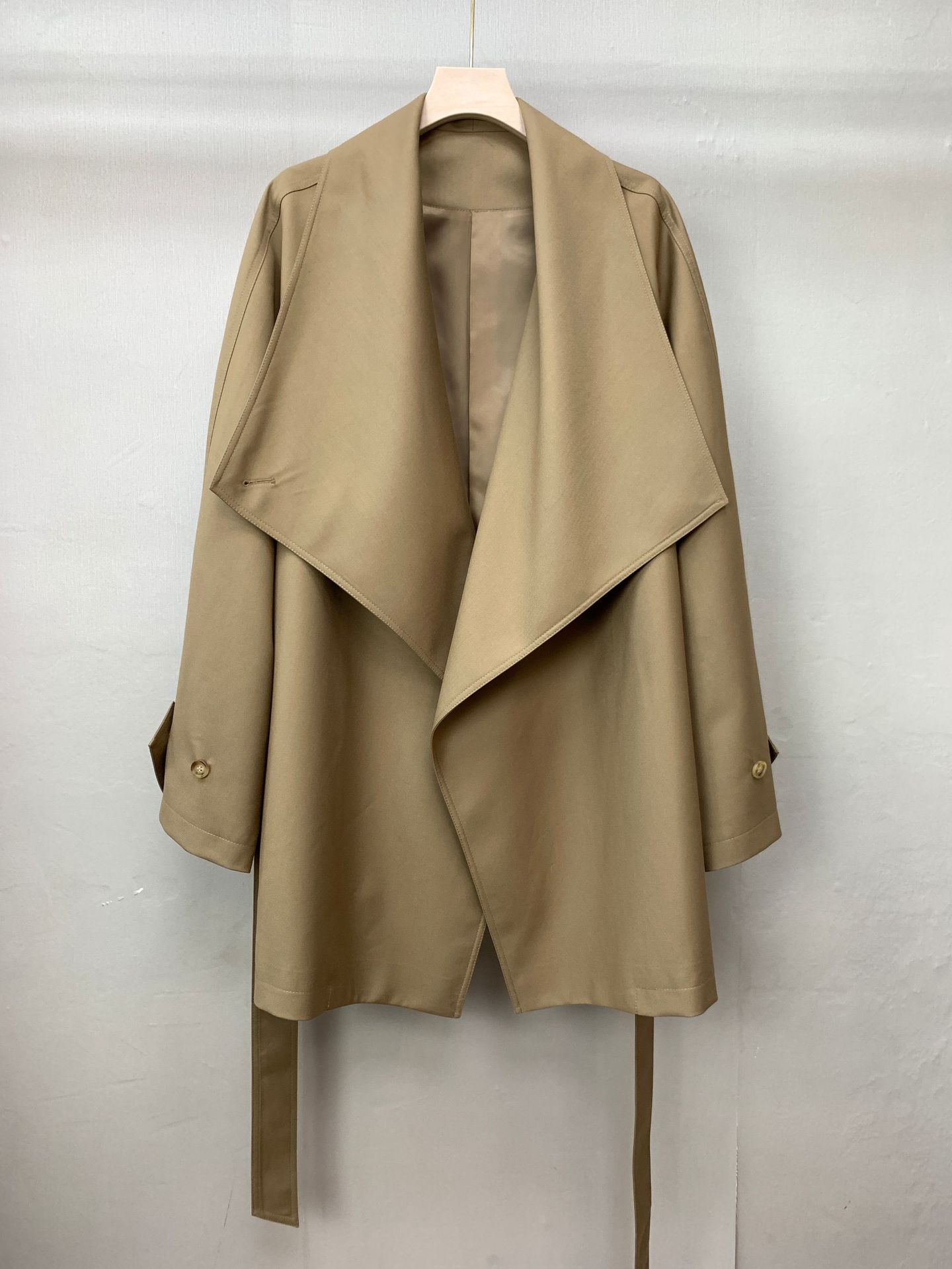 Corto Caqui Europeo y Americano Silueta Holgada Ropa de Trabajo Simple Negro Diseño de Solapa Grande Cortavientos 25 Otoño Ropa de Mujer Dalian