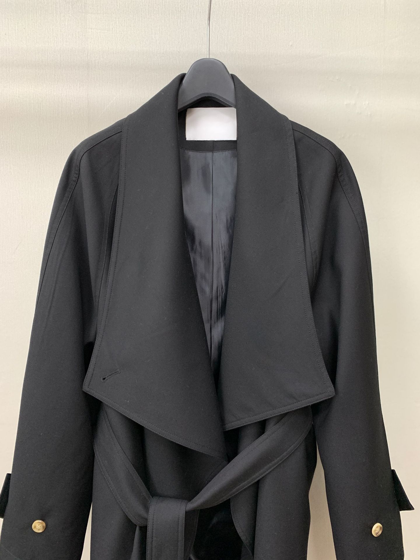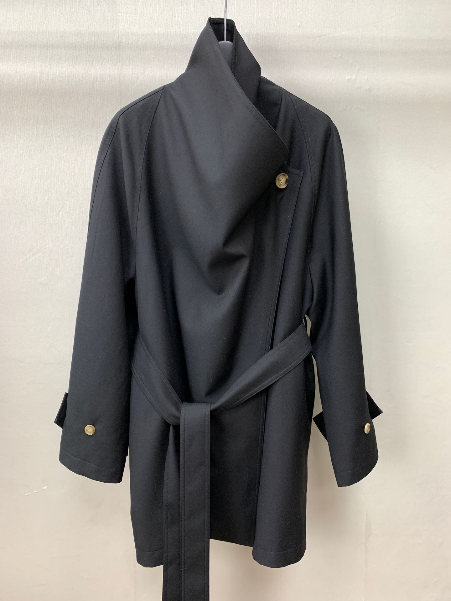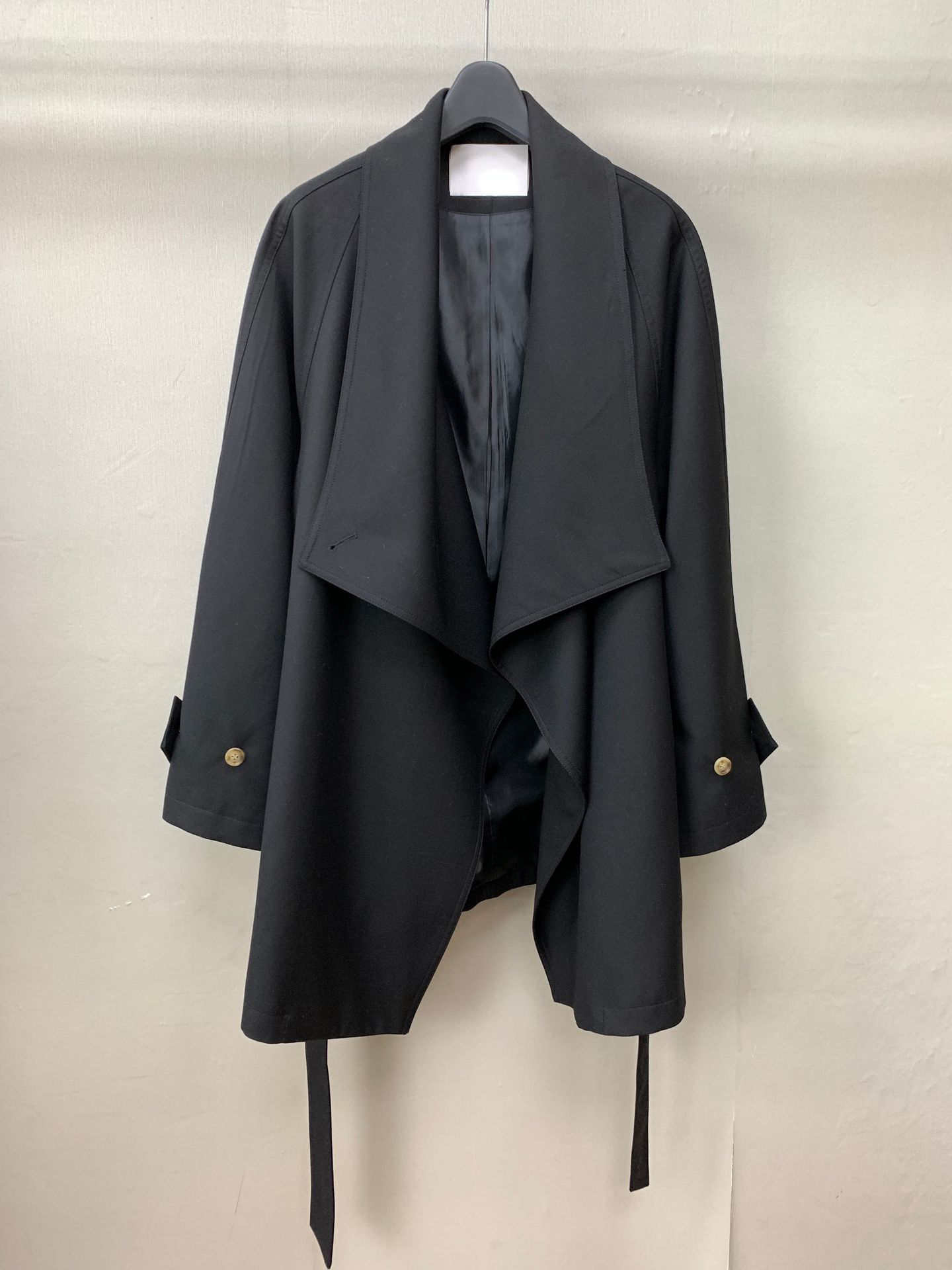 Corto Caqui Europeo y Americano Silueta Holgada Ropa de Trabajo Simple Negro Diseño de Solapa Grande Cortavientos 25 Otoño Ropa de Mujer Dalian
