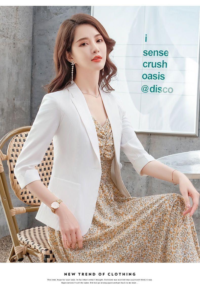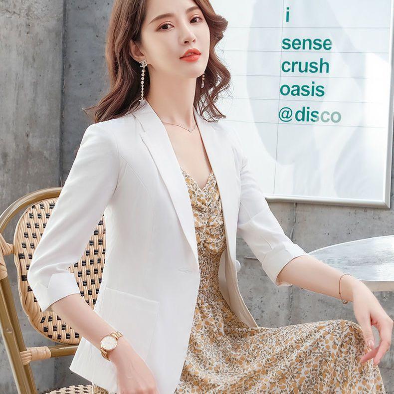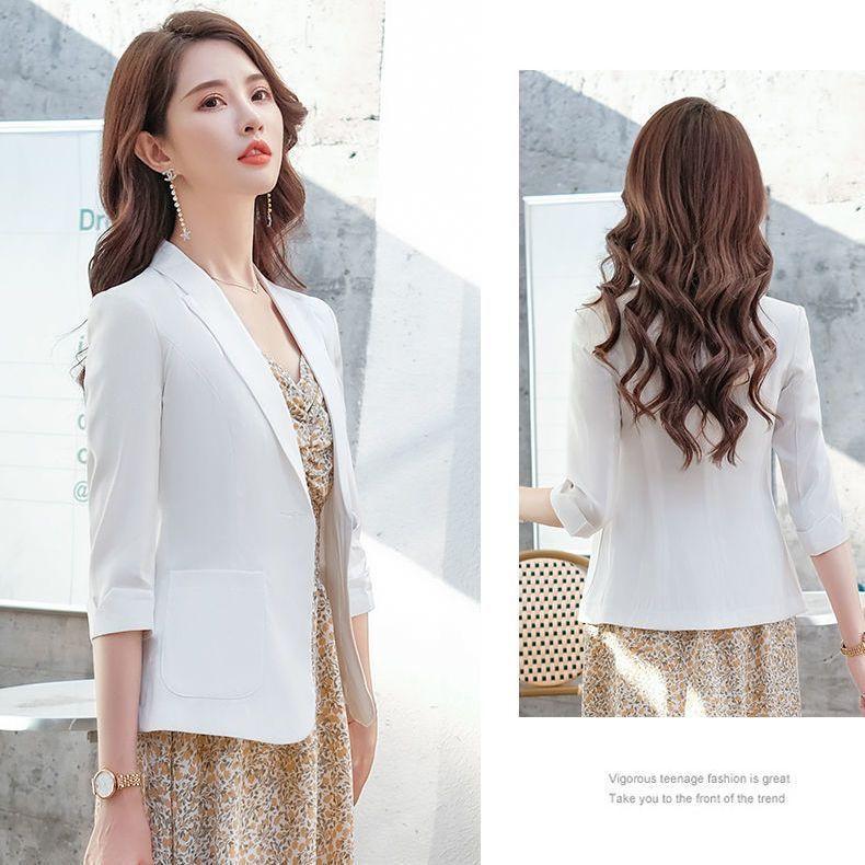 2025 Traje de Siete Mangas Cortas Nuevo Moda Primavera Otoño Temperamento Chaqueta Delgada Estilo Coreano Casual Adelgazante Top Traje