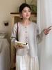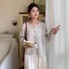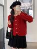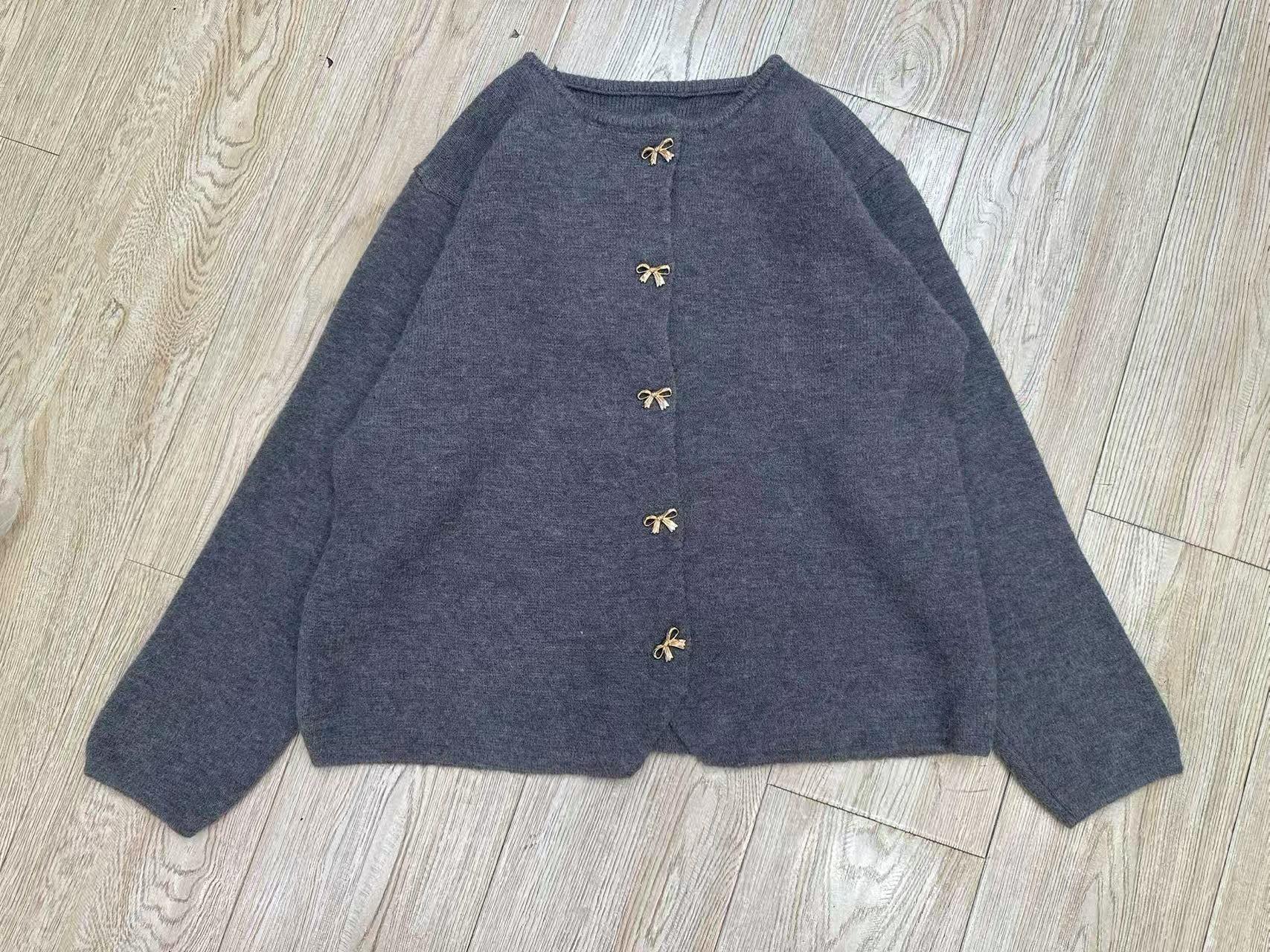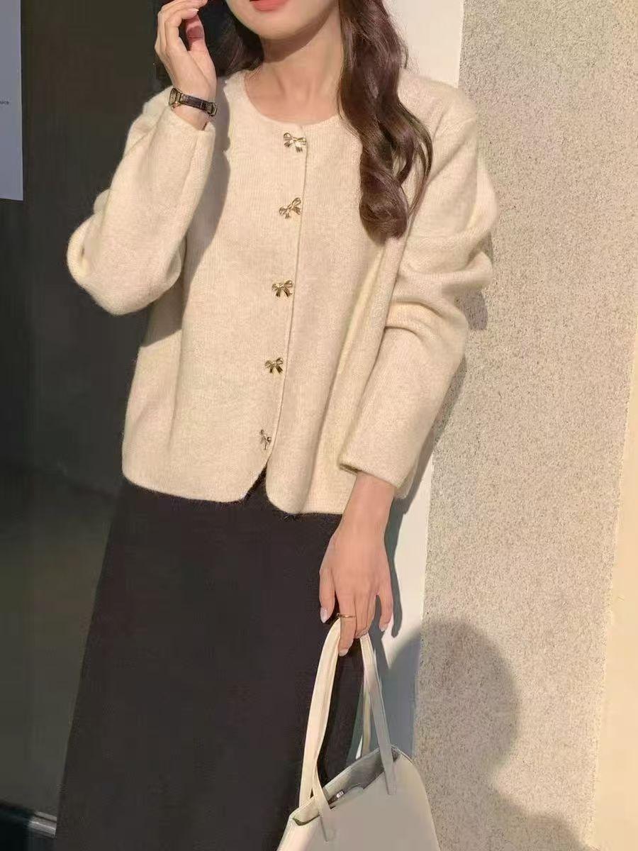 Cárdigan de punto estilo Chanel pequeño francés con lazo otoño e invierno nuevo hebilla metálica elegante versátil suéter holgado abrigo mujeres