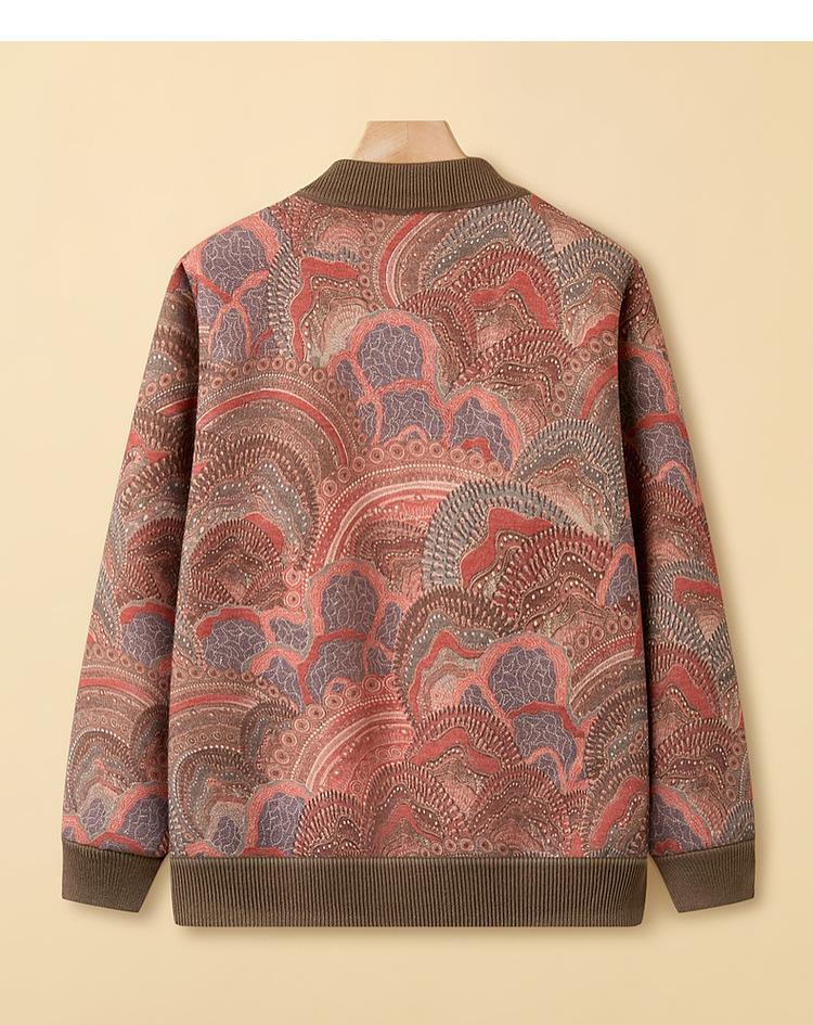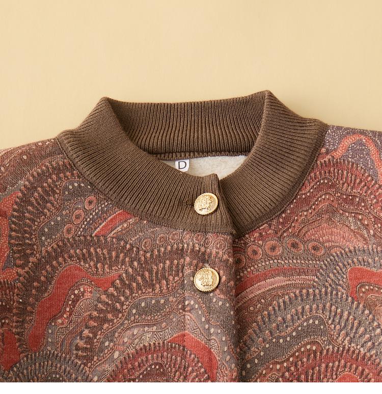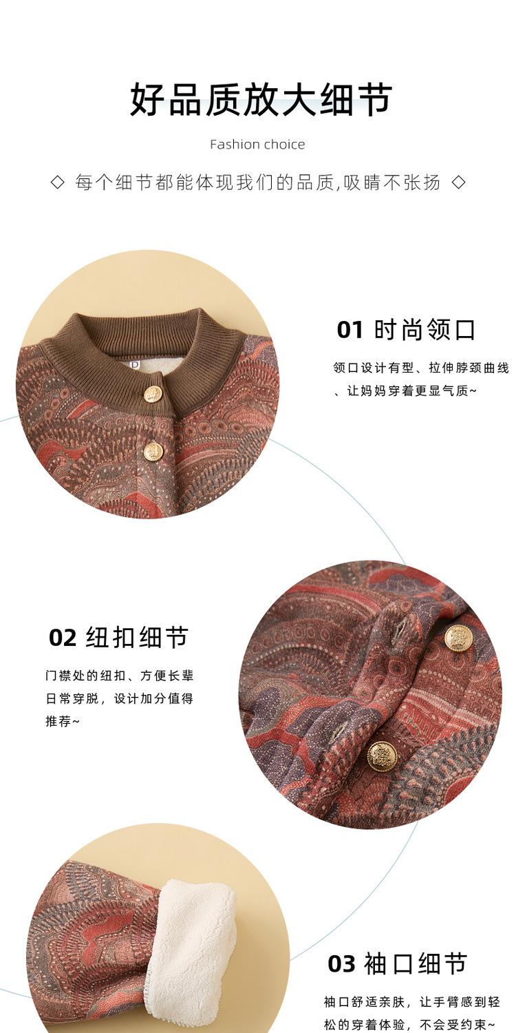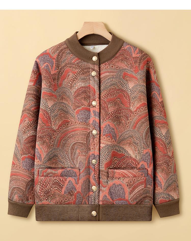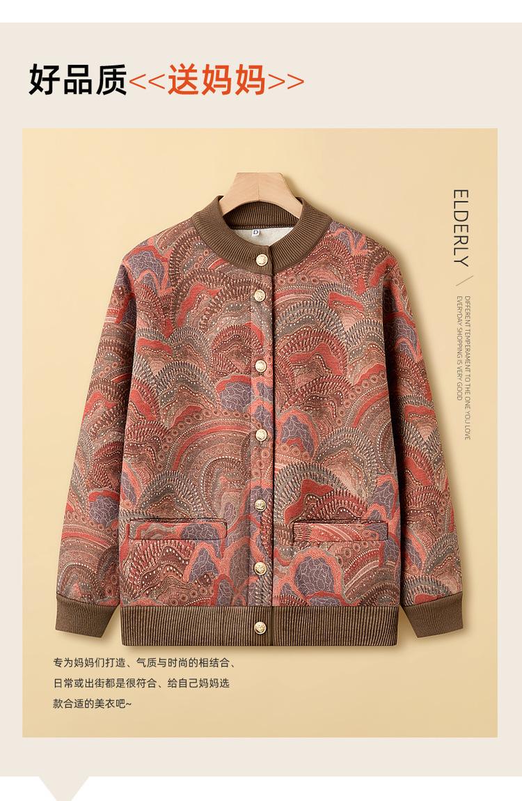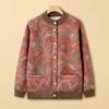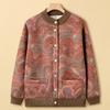 Ropa para madre de mediana edad y anciana estilo nuevo 2025 otoño e invierno de punto grueso con forro polar cuello redondo cárdigan para mujer abrigo casual holgado