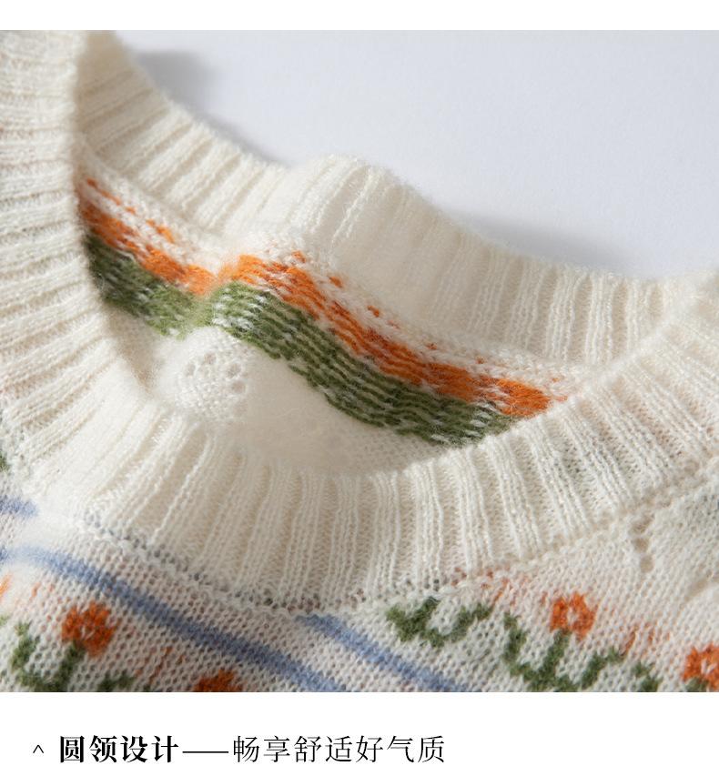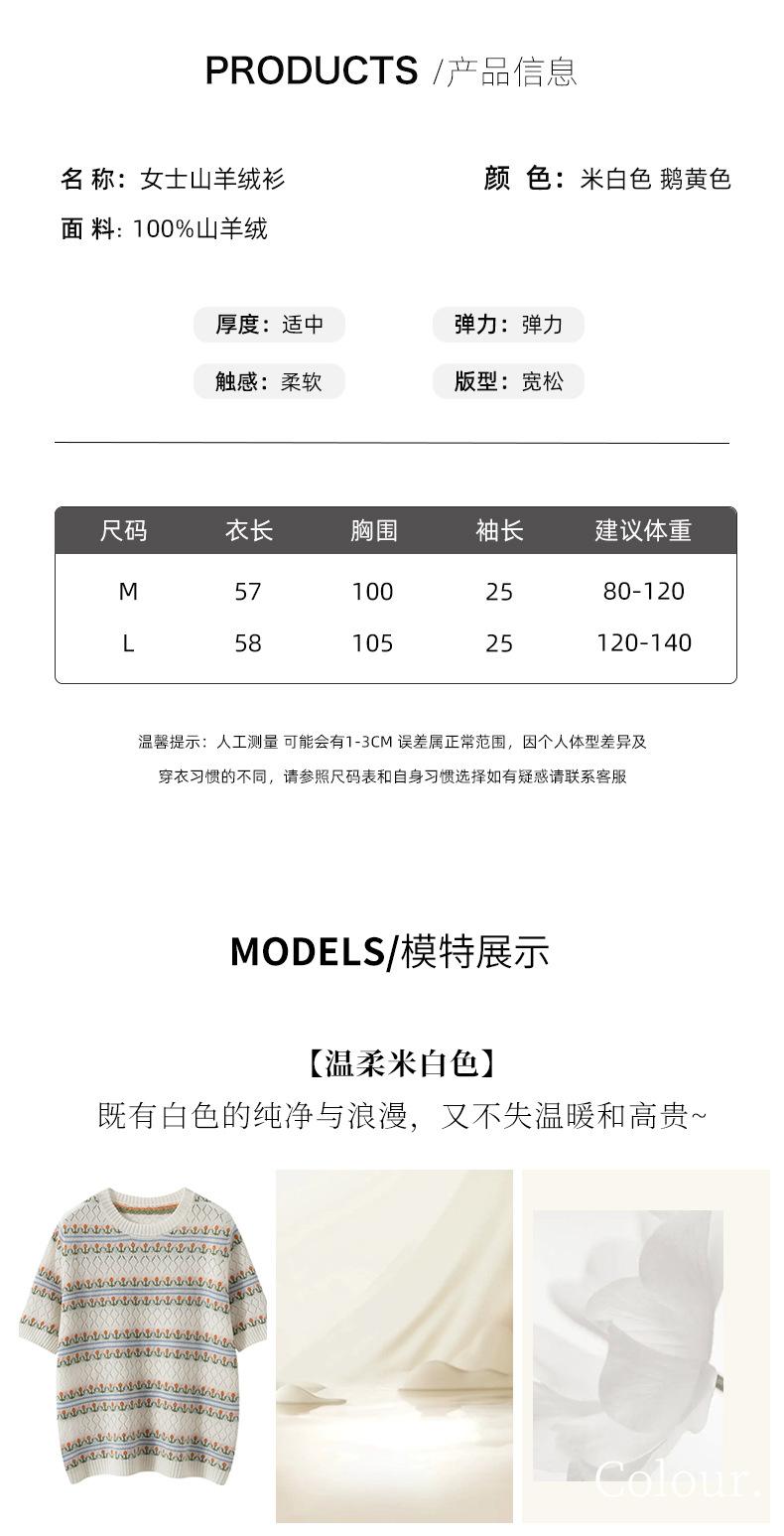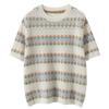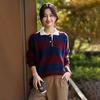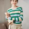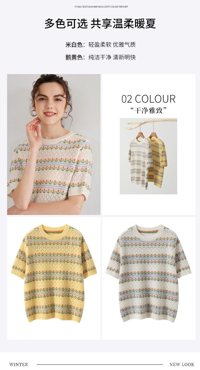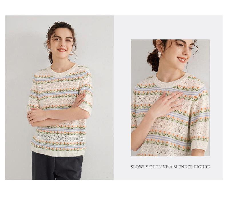 Nuevo Otoño e Invierno Casual Versátil Rayado Jacquard Cuello Redondo Jersey Tejido de Cachemira Suéter de Cachemira Pura de Manga Corta para Mujer