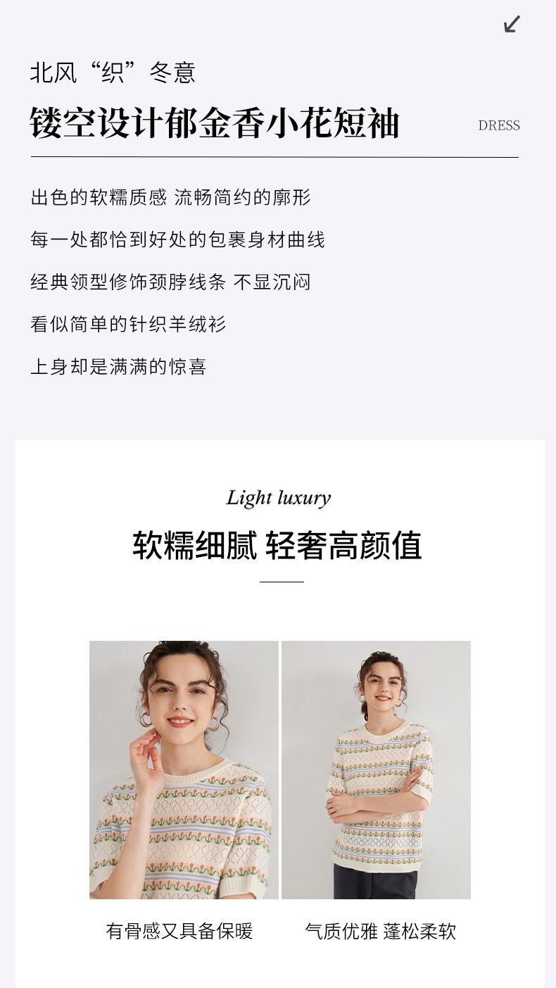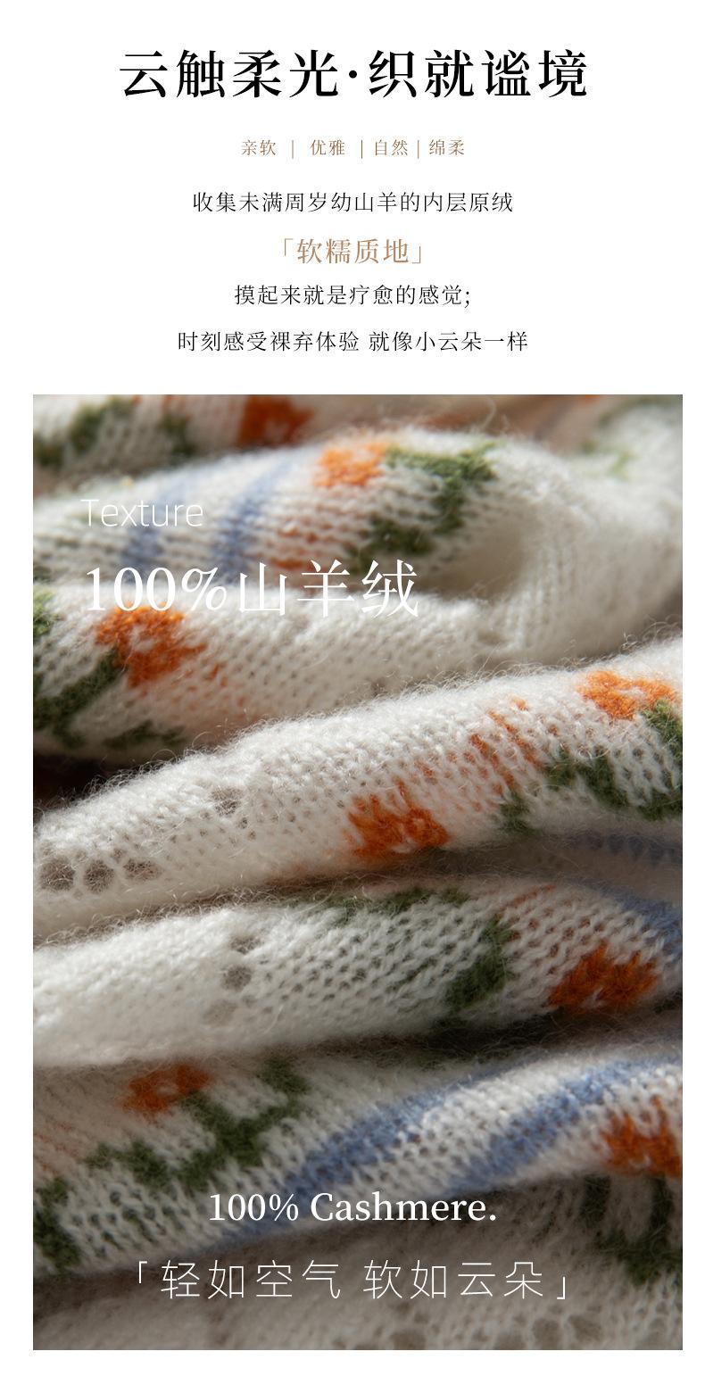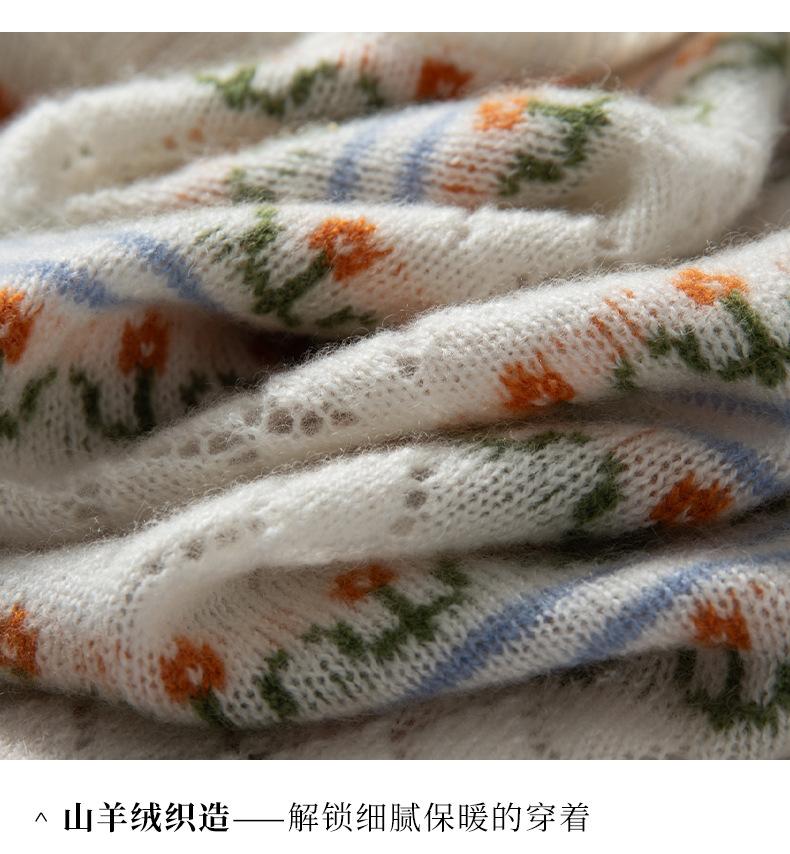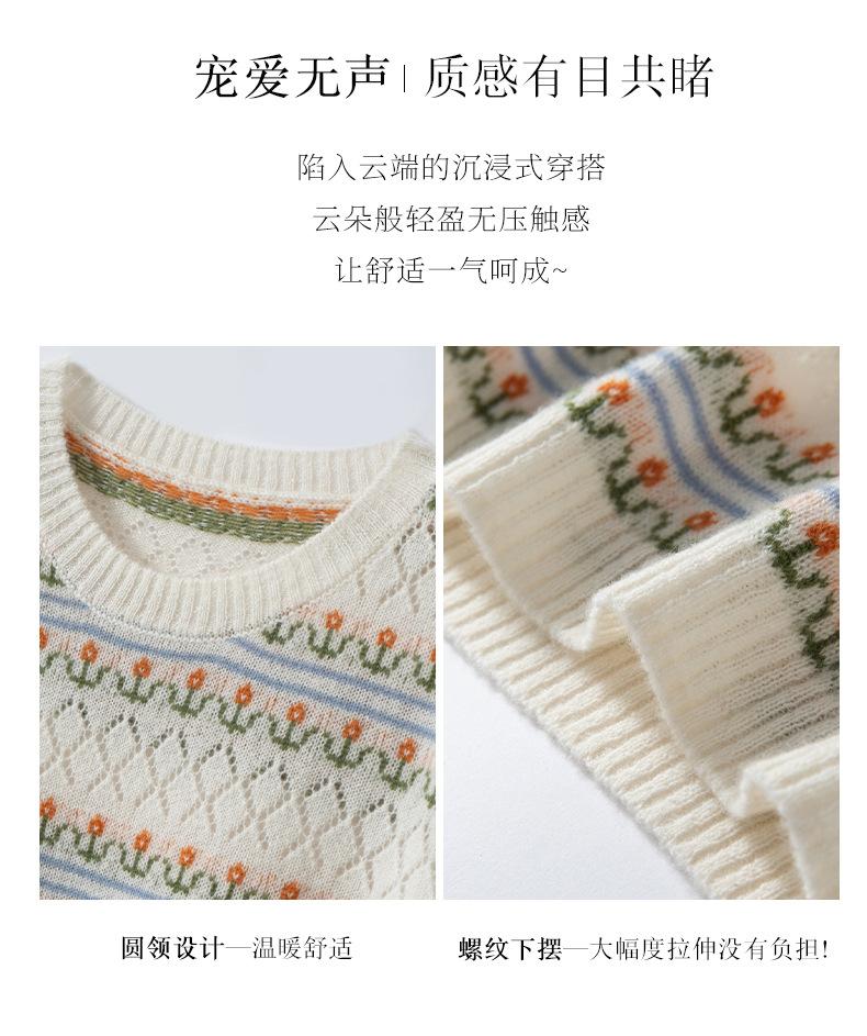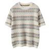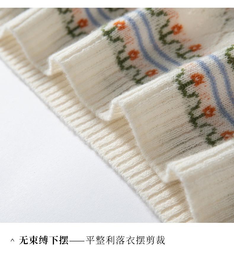 Nuevo Otoño e Invierno Casual Versátil Rayado Jacquard Cuello Redondo Jersey Tejido de Cachemira Suéter de Cachemira Pura de Manga Corta para Mujer
