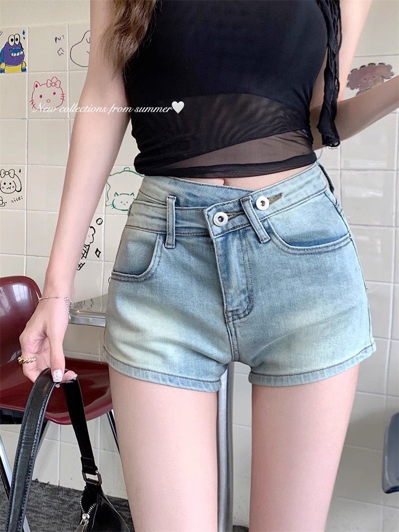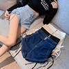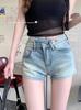 Shorts de mezclilla American High Street para mujer 2024 Verano Diseño retro Nicho Cintura alta Slim Hot Girl Línea A Pantalones cortos