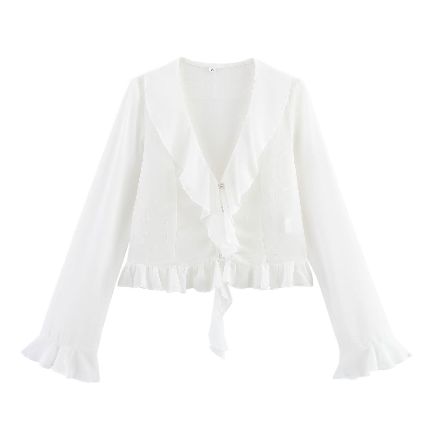 Ropa de Mujer Nueva Primavera 2025 Estilo Europeo y Americano Moda Simple Versátil Camisa de Manga Larga con Cuello en V 3666053