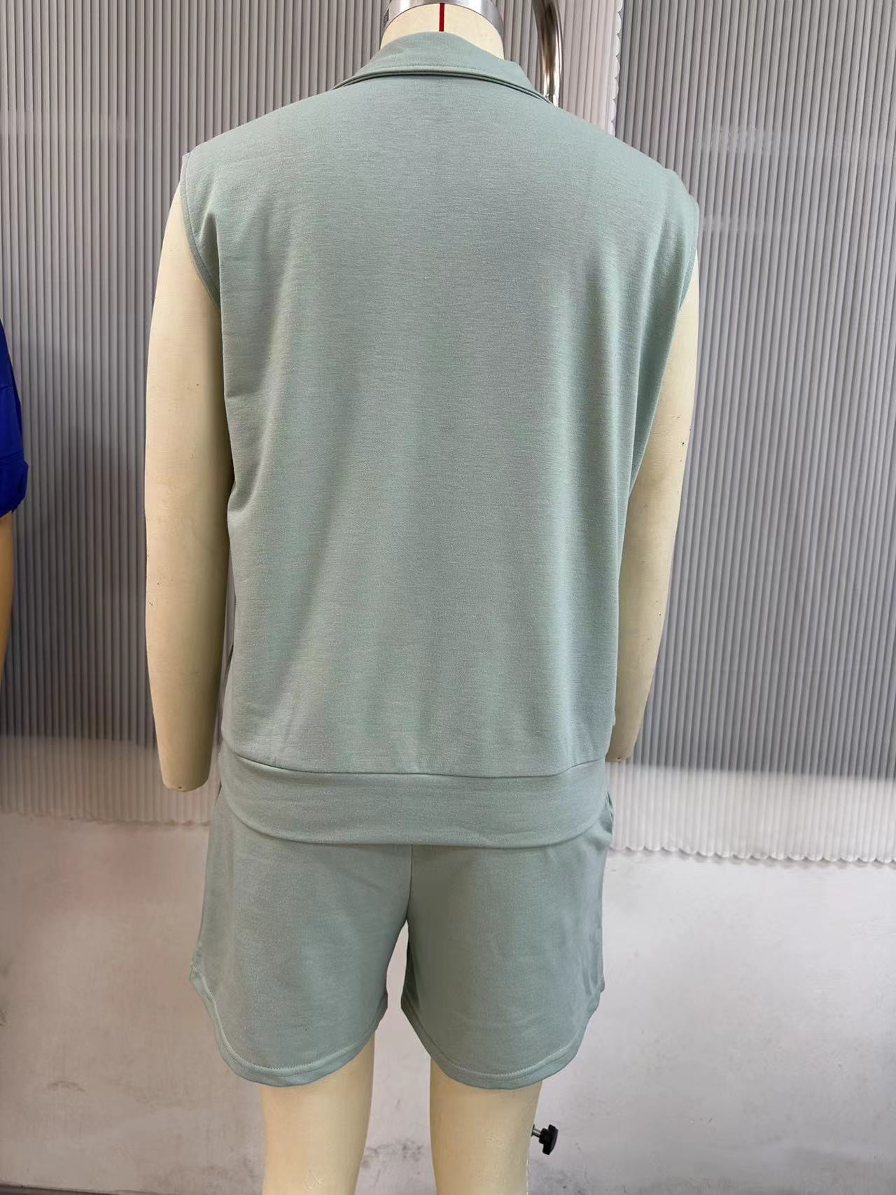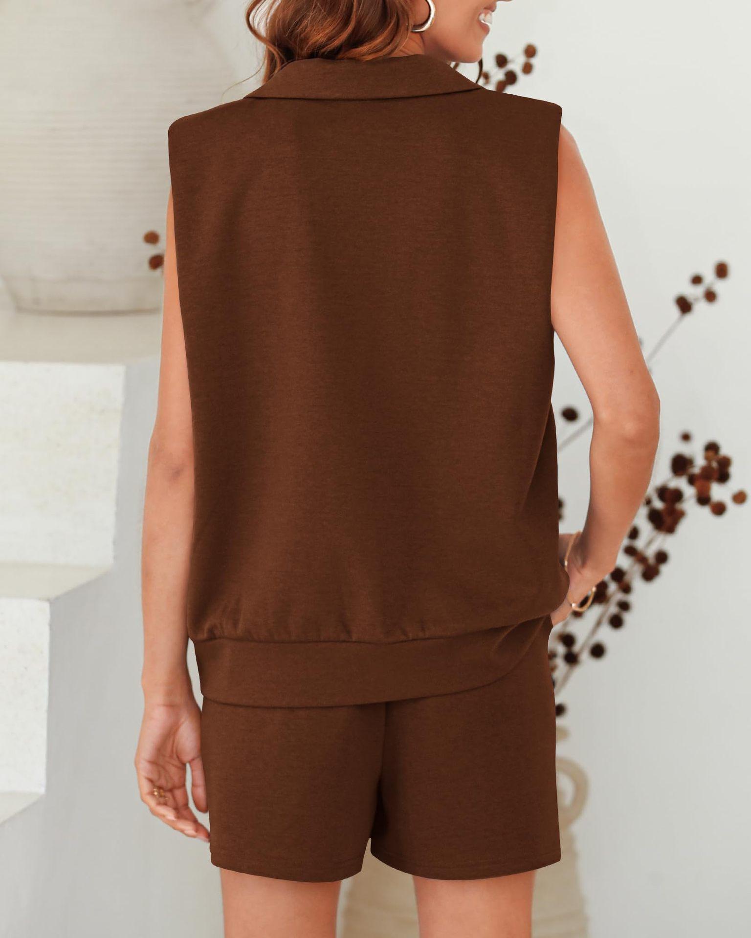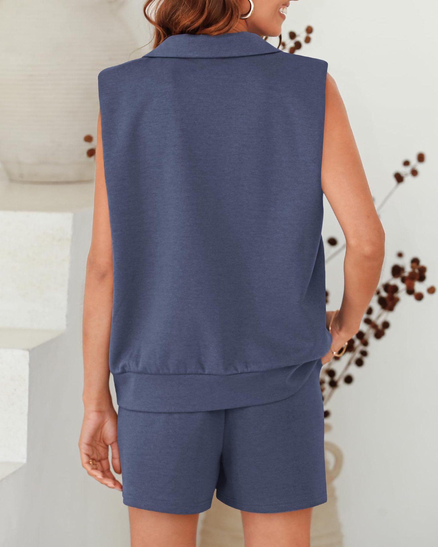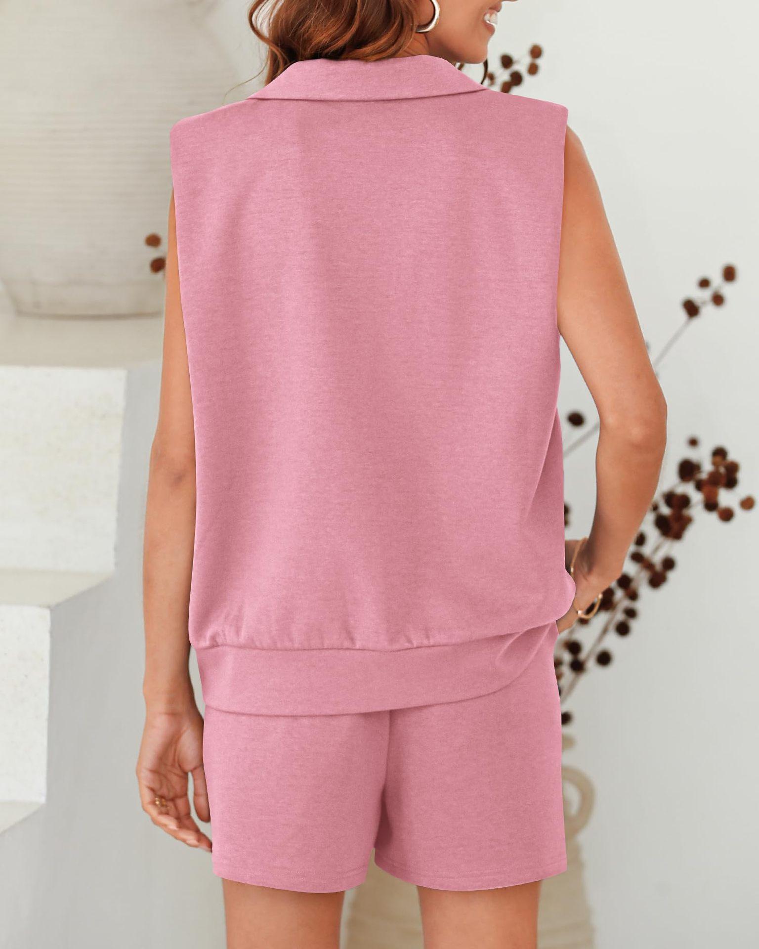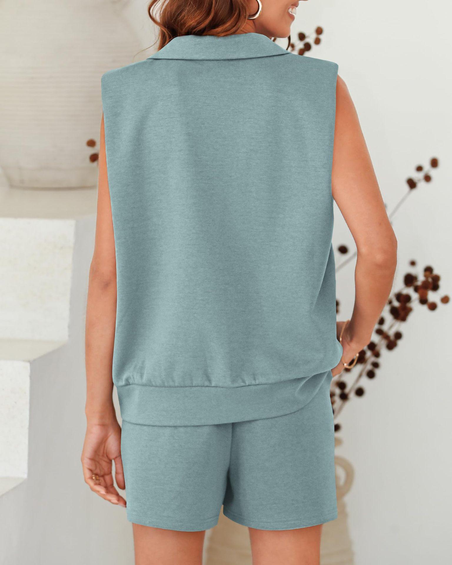Conjunto de 2 piezas sin mangas estilo europeo y americano 2024 de Amazon, sudadera y shorts, ropa deportiva casual con bolsillos