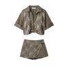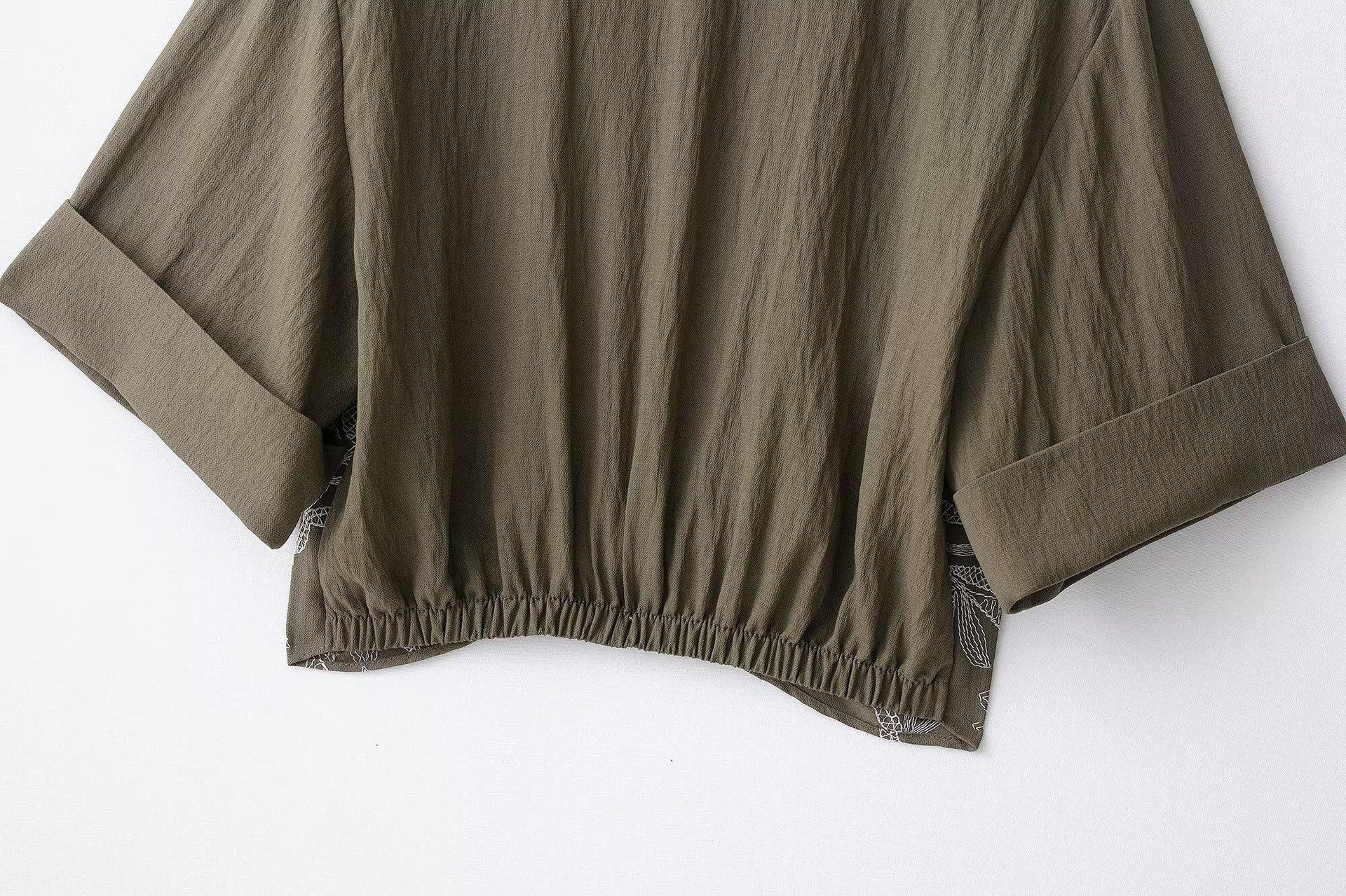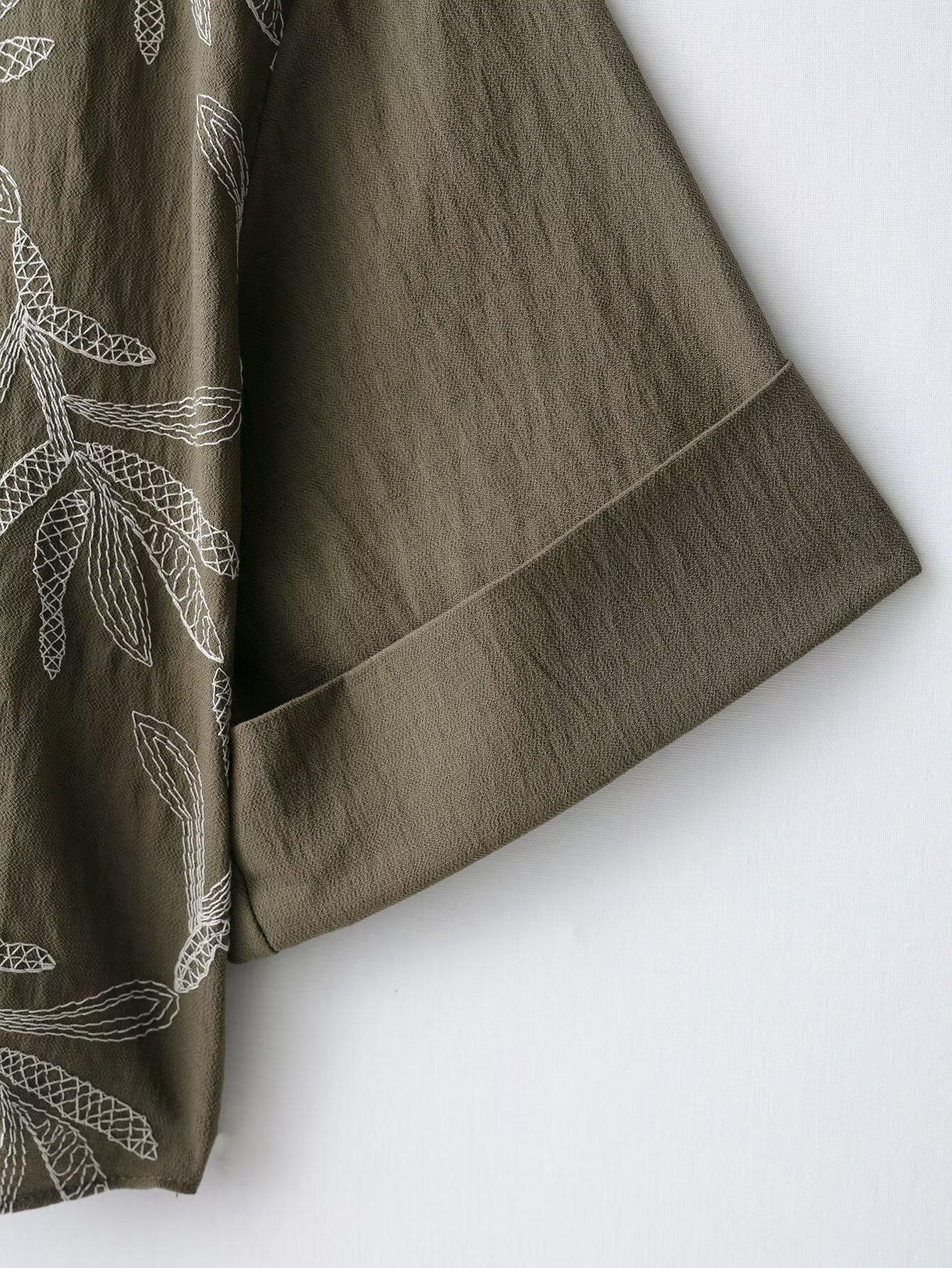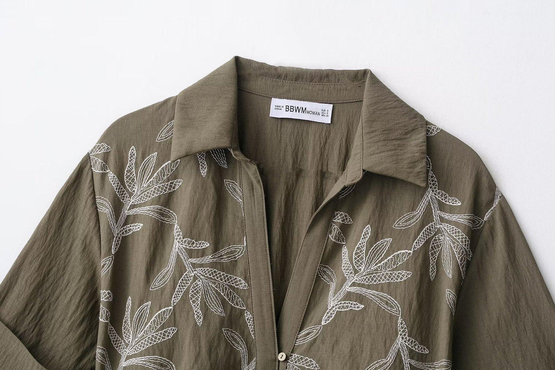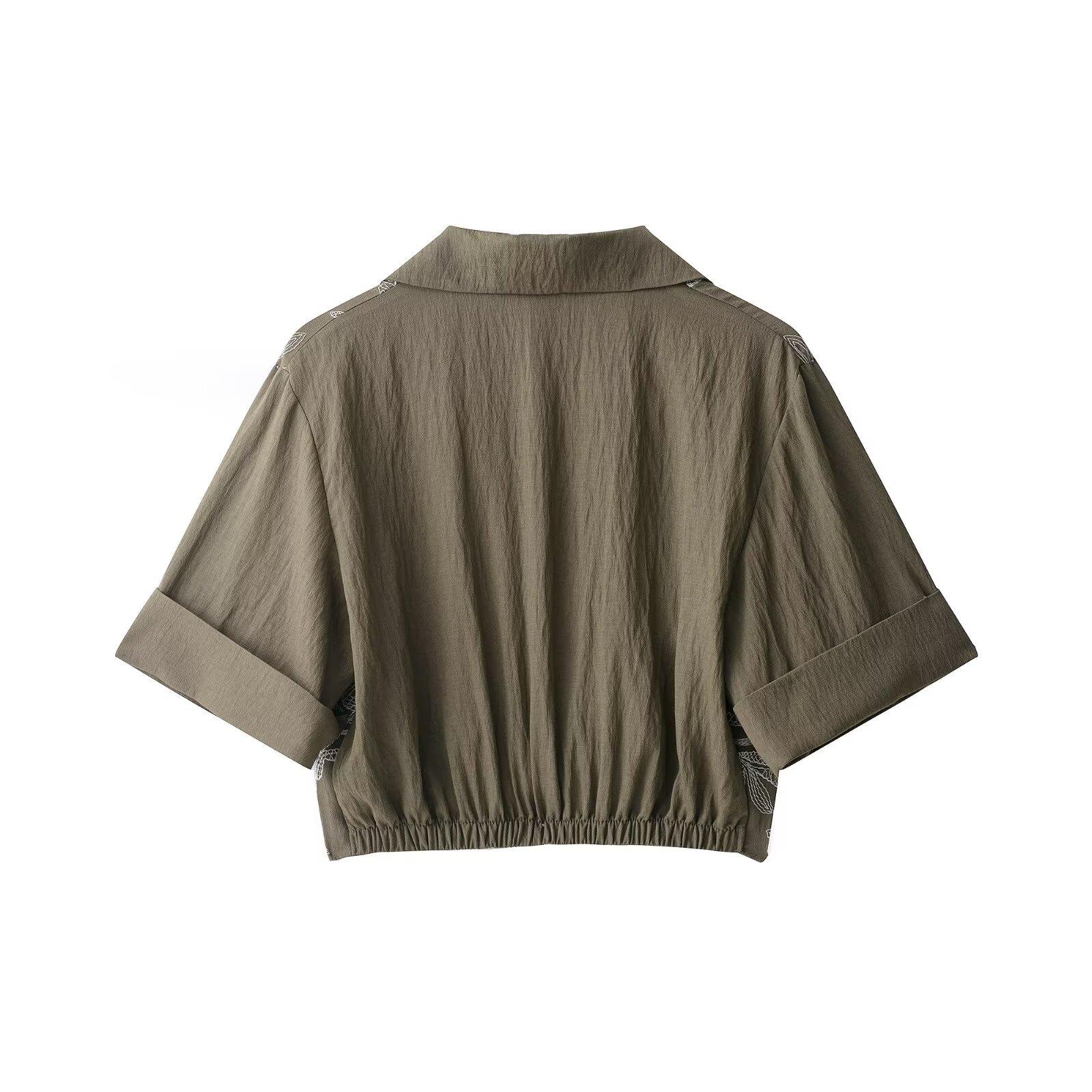 Ropa de Mujer Otoño 2025 Nuevo Estilo Europeo y Americano Camisa Bordada de Manga Corta Culottes Cruzados 3564156 3564157