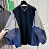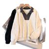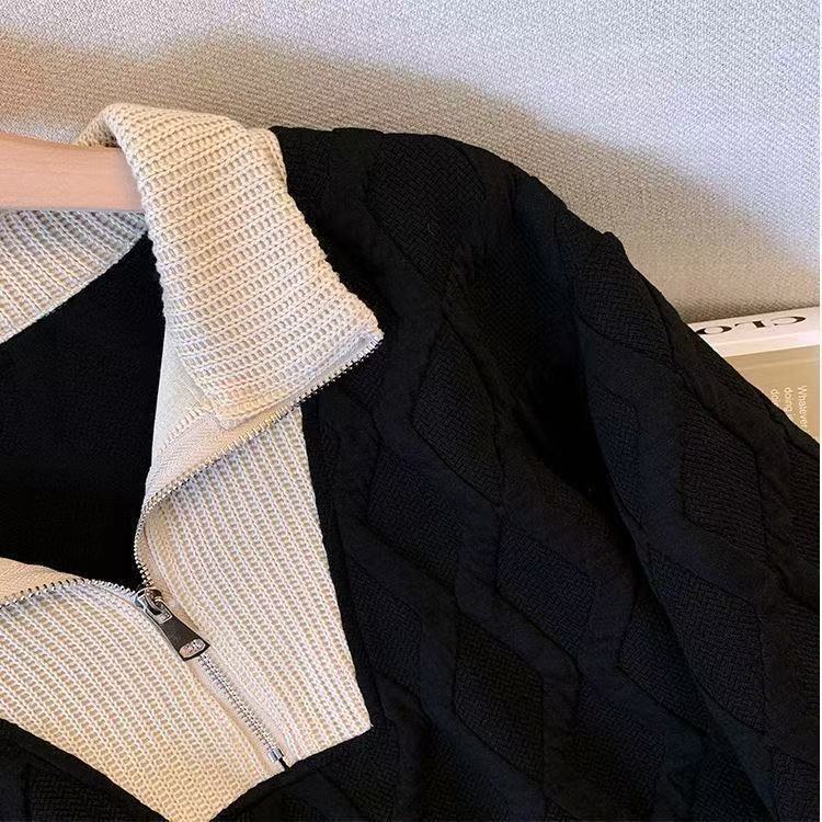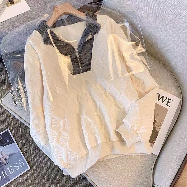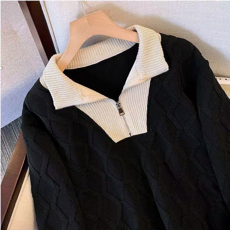 Sudadera de talla grande para gorditas de 300 jin con sentido del diseño, cuello alto, media cremallera, bloques de color, para mujer, primavera y otoño, holgada, versátil, exterior de nicho