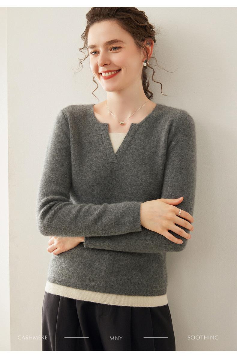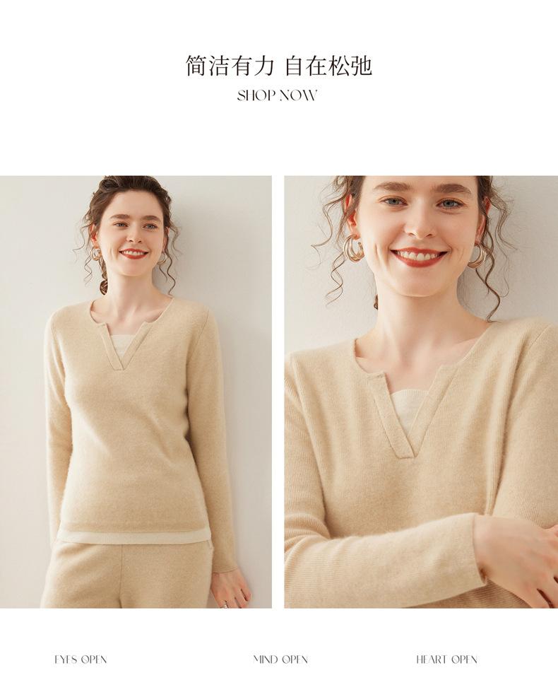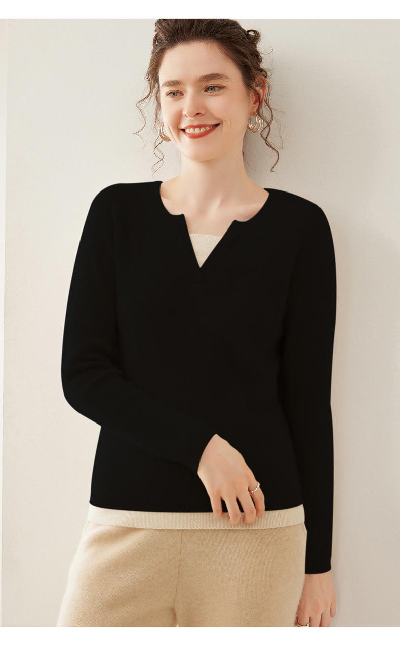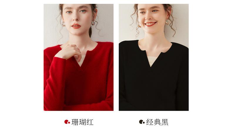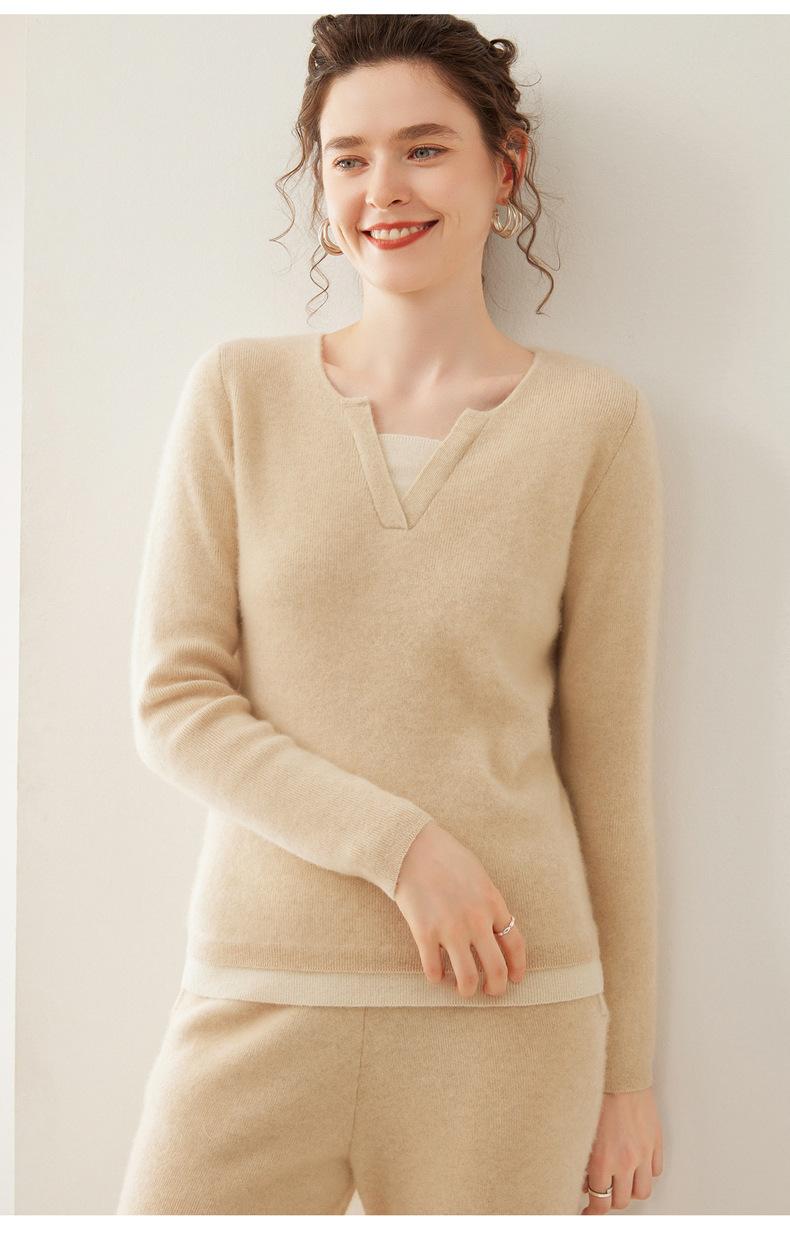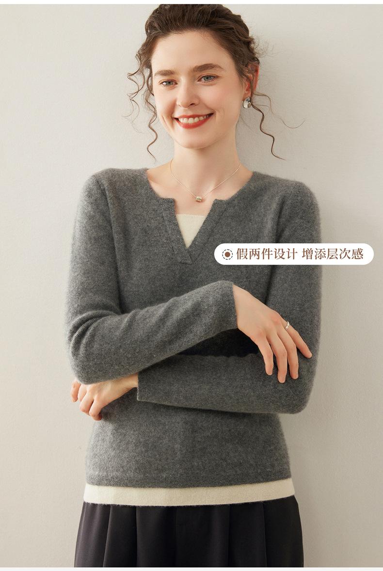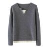 Suéter de Cachemira de Otoño e Invierno para Mujer Cuello en V Falso de Dos Piezas Doble Capa Cuello Redondo Suéter Básico Holgado Color Sólido Top de Punto