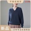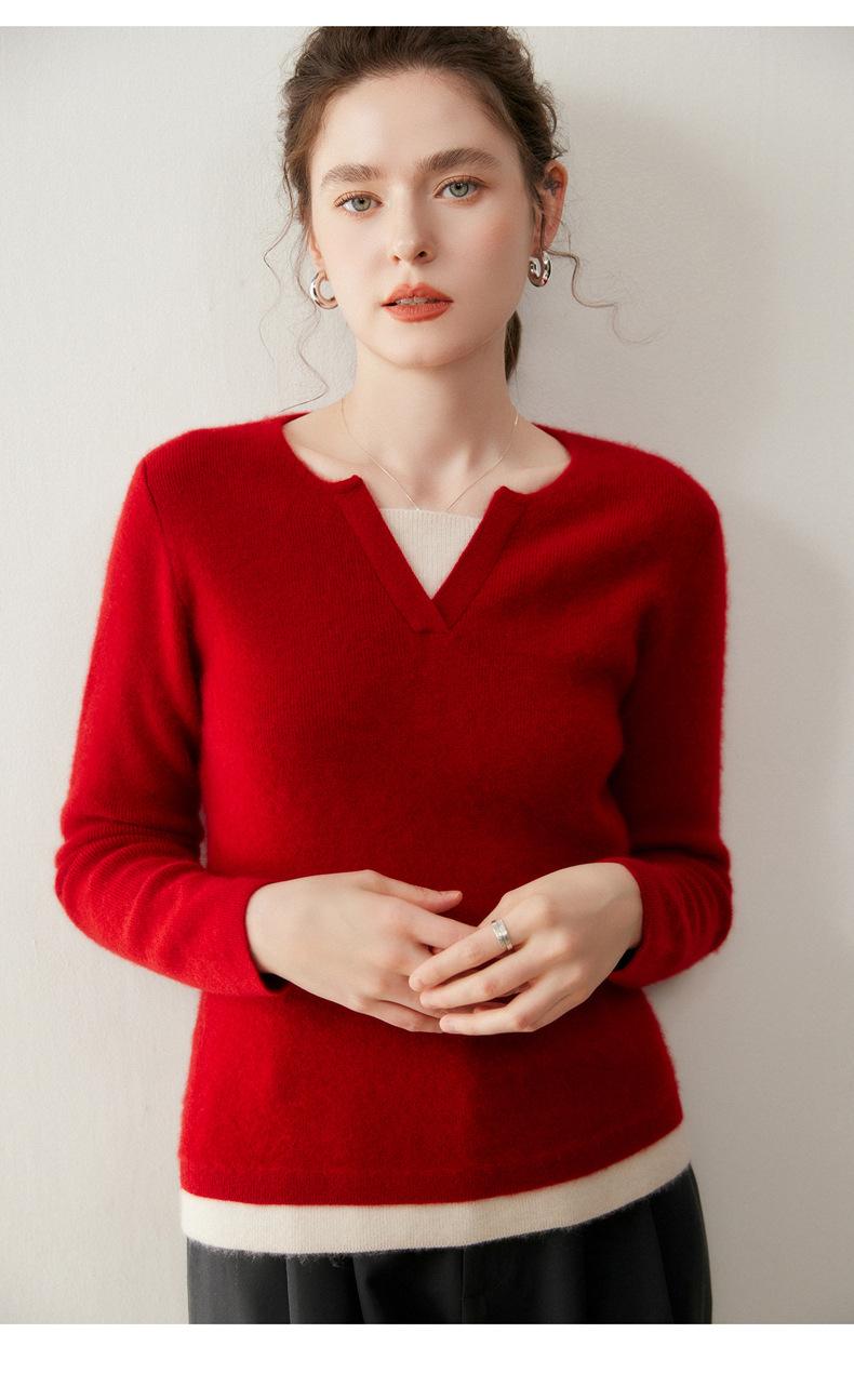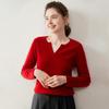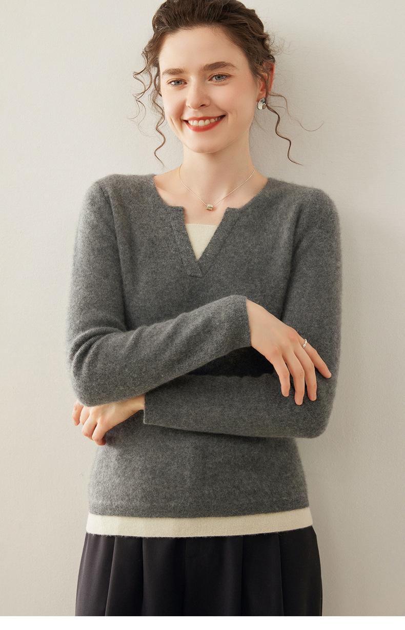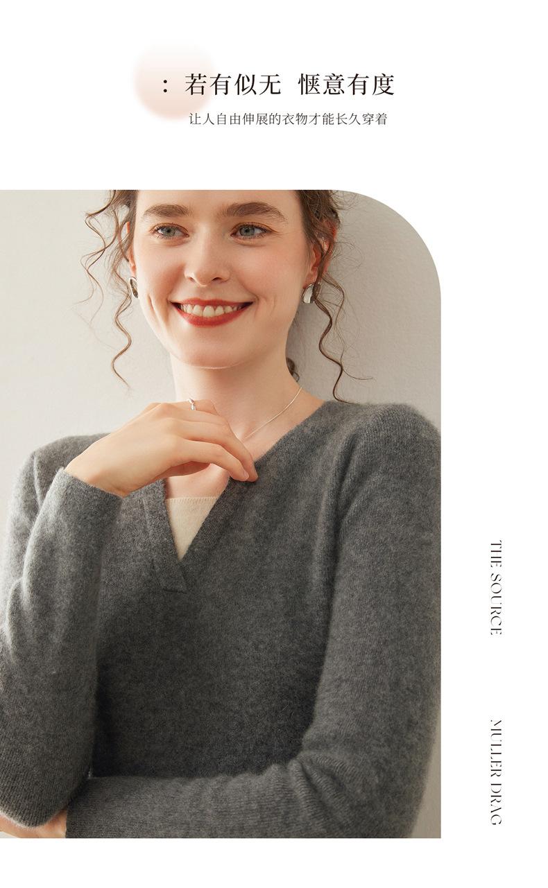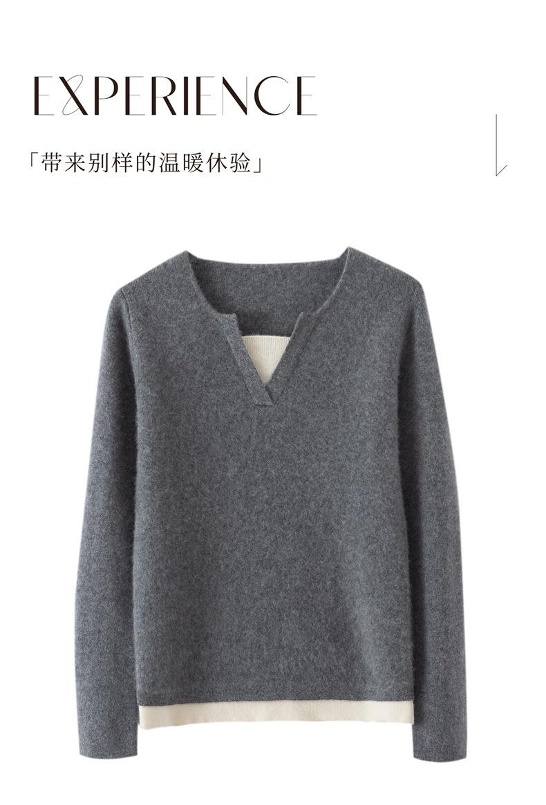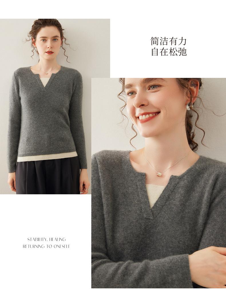 Suéter de Cachemira de Otoño e Invierno para Mujer Cuello en V Falso de Dos Piezas Doble Capa Cuello Redondo Suéter Básico Holgado Color Sólido Top de Punto