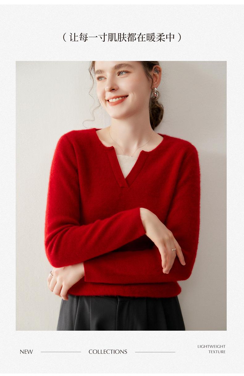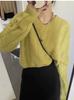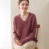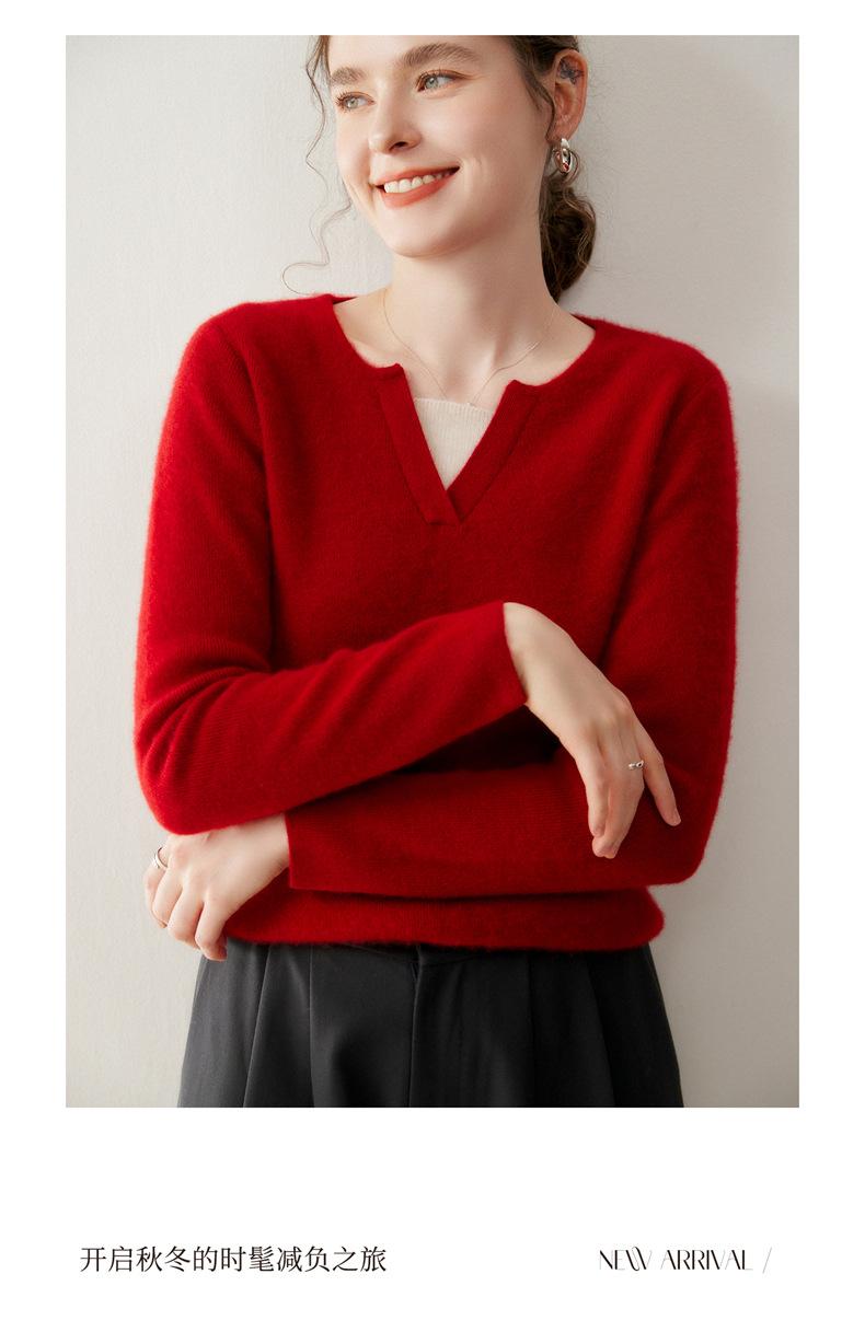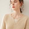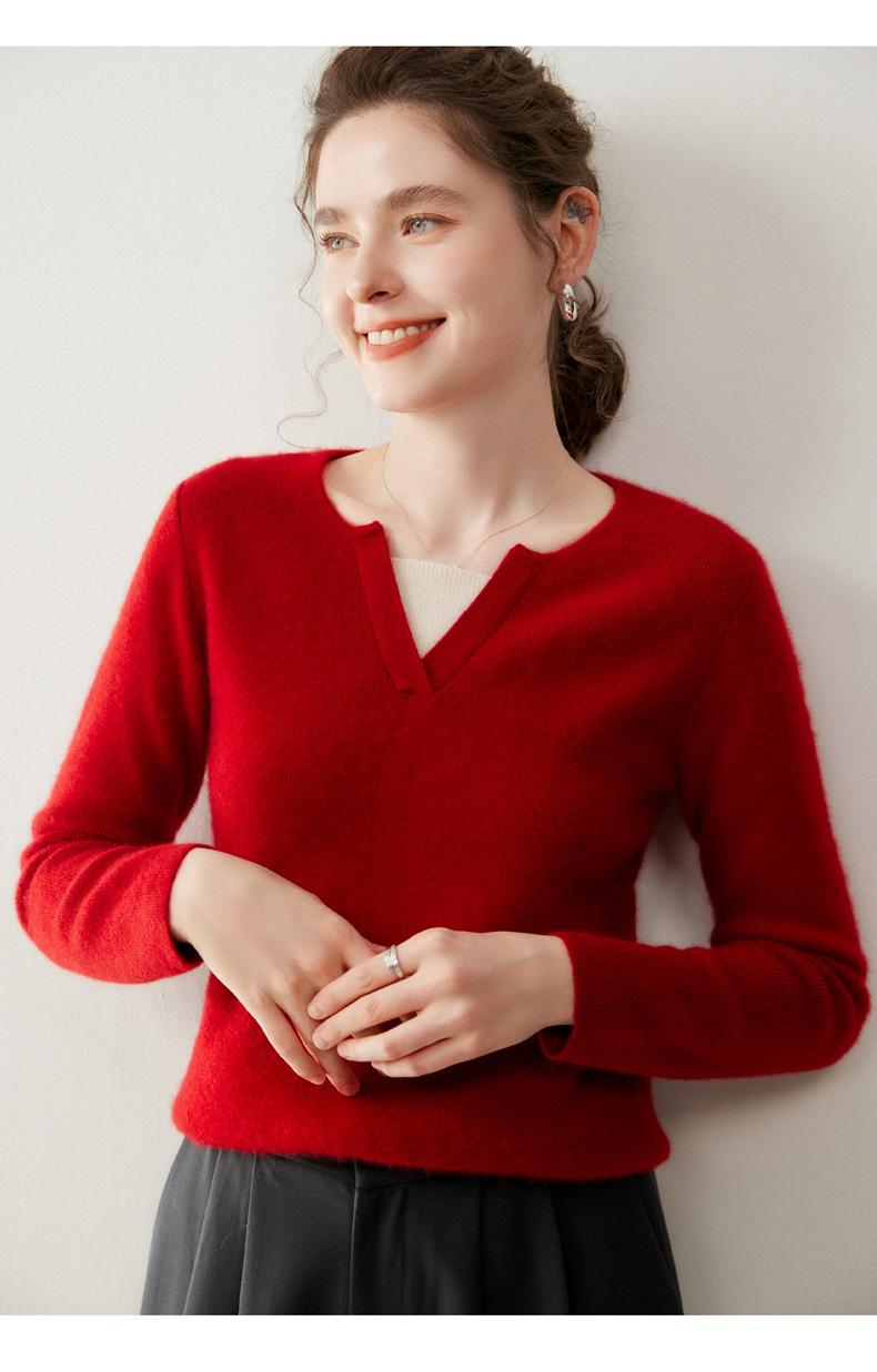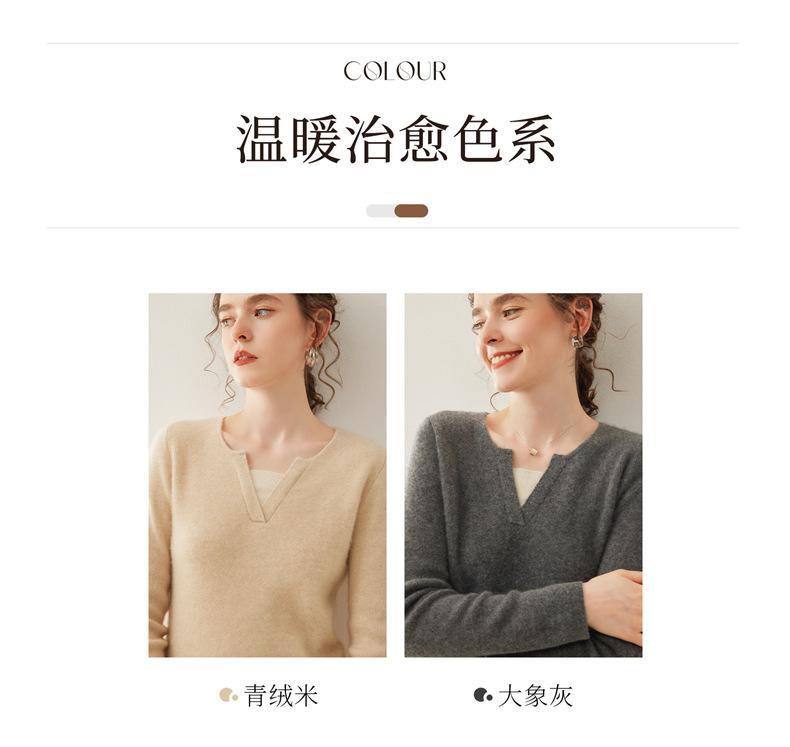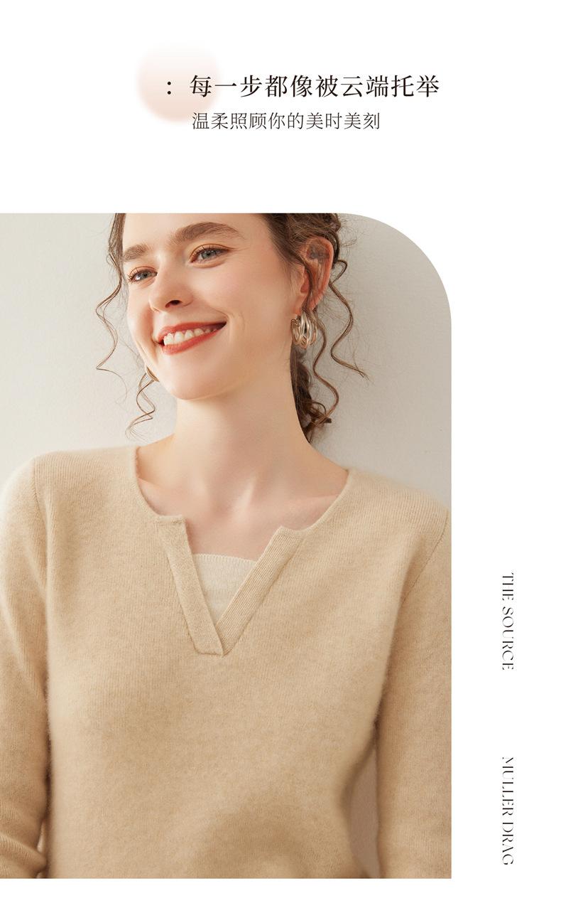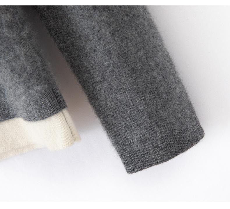 Suéter de Cachemira de Otoño e Invierno para Mujer Cuello en V Falso de Dos Piezas Doble Capa Cuello Redondo Suéter Básico Holgado Color Sólido Top de Punto