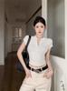 Camiseta de Manga Corta con Diseño de Botones y Cuello en V para Chica Caliente de Estilo Americano para Mujer Verano 2025 Nuevo Estilo Coreano Ajustada Nicho Top Trendy