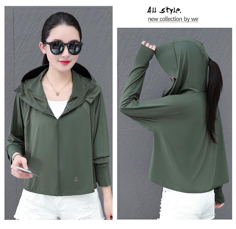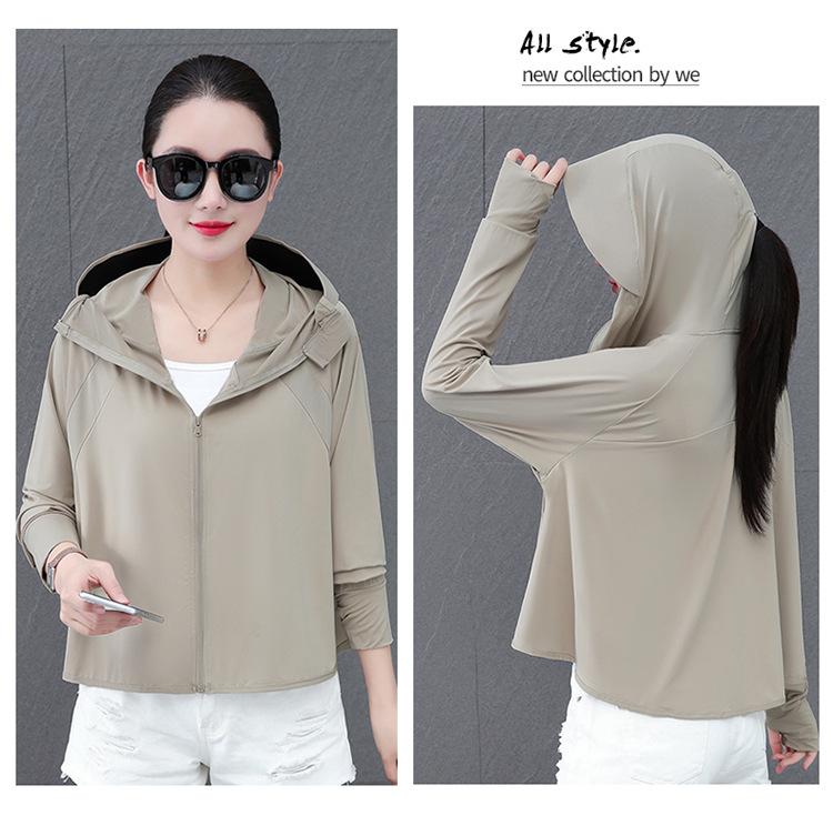 Capa Suelta Protector Solar para Mujer Anti-UV Nueva Seda de Hielo Transpirable Cortavientos Cárdigan con Capucha Manga Larga Protector Solar Verano