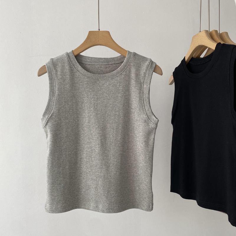 Estilo Europeo y Americano Color Sólido Chaleco Corto Camisola de Verano para Mujer Estilo Coreano Ajustado Adelgazante para Usar Interior y Exterior Top sin Mangas