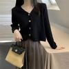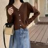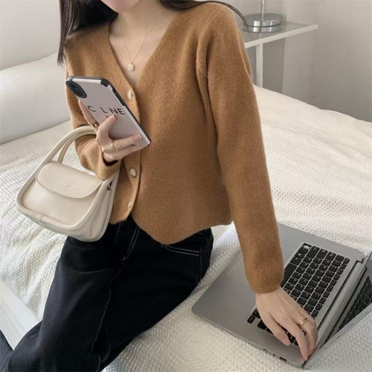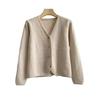 Cárdigan de Punto de Color Sólido con Cuello en V para Mujer Otoño/Invierno Nuevo Estilo Coreano Casual Versátil Manga Larga Pecho Sencillo Top Corto