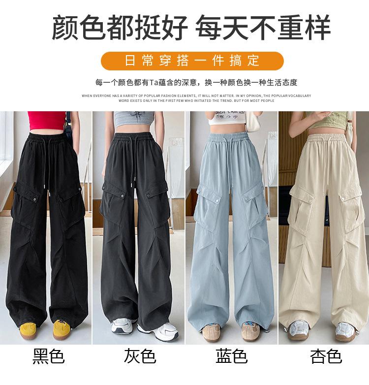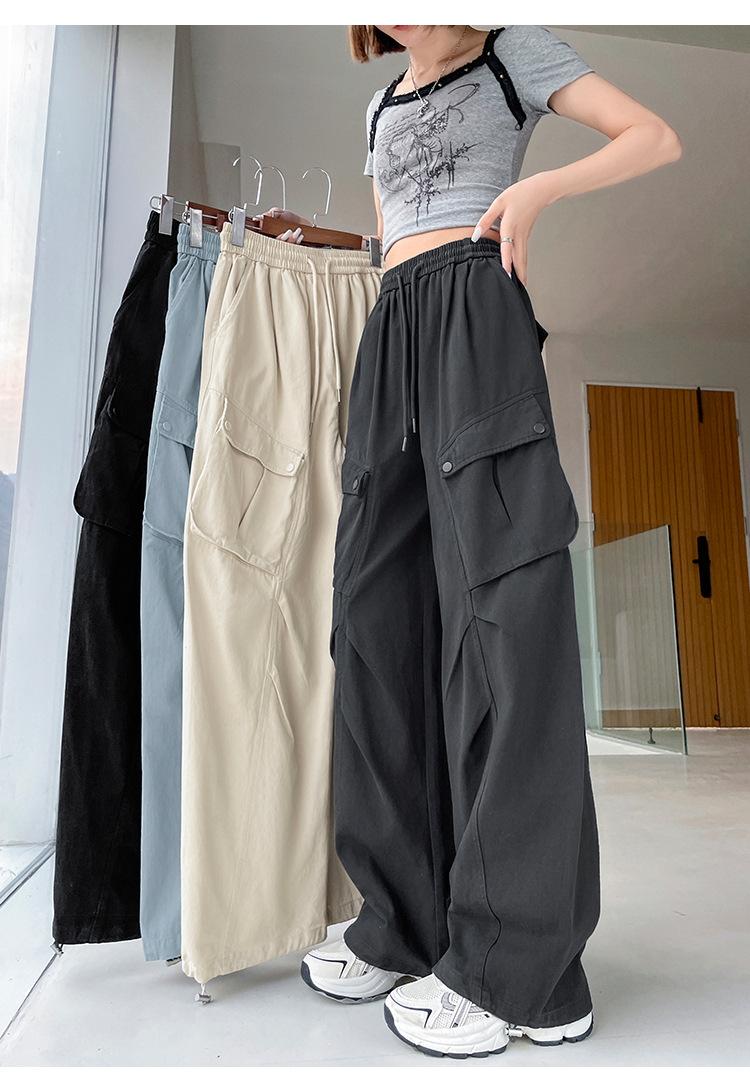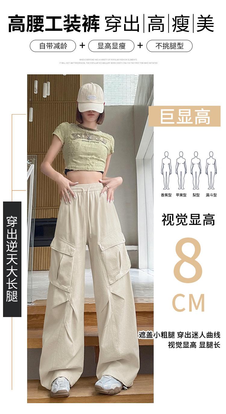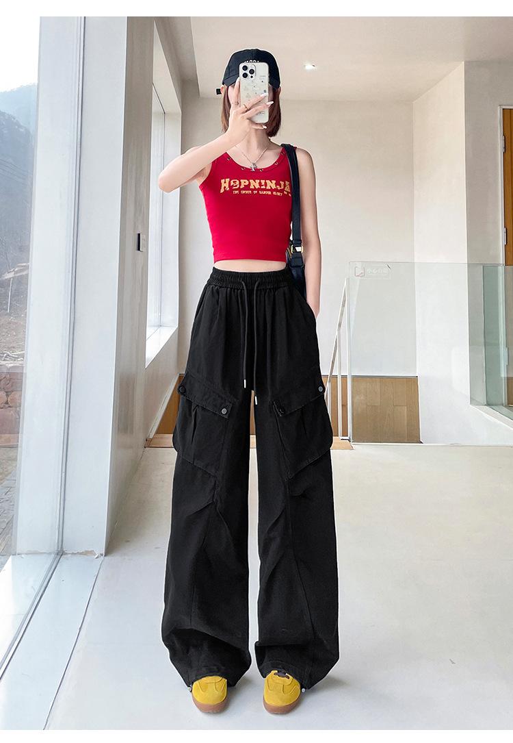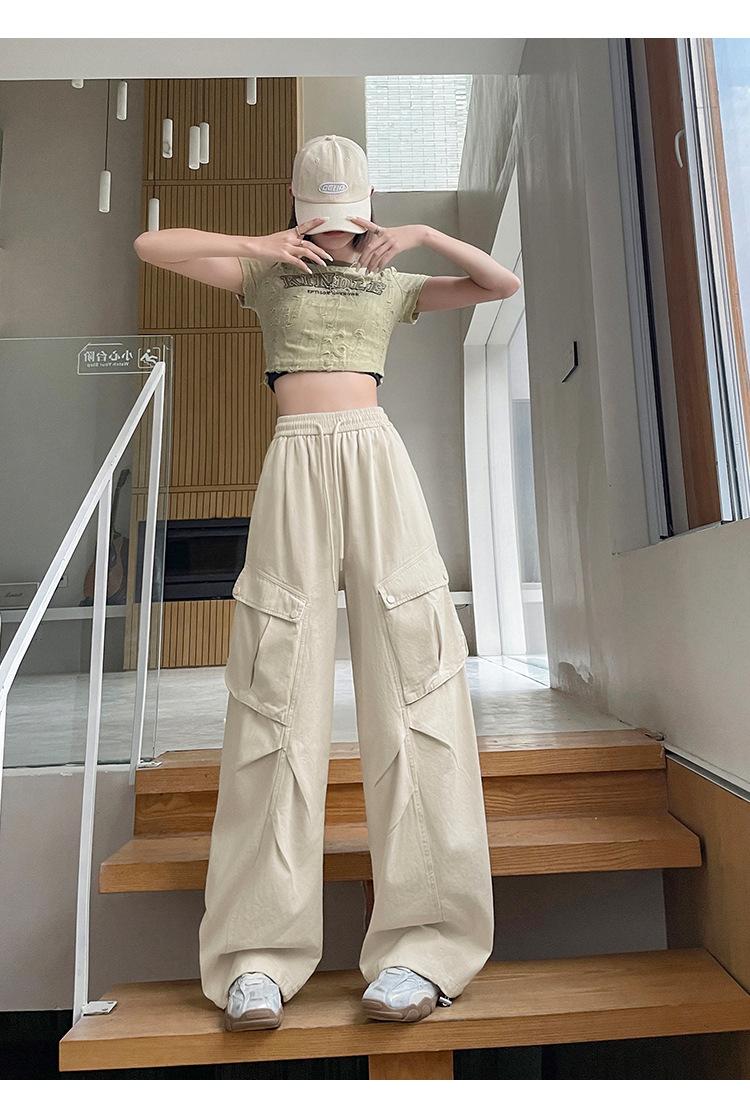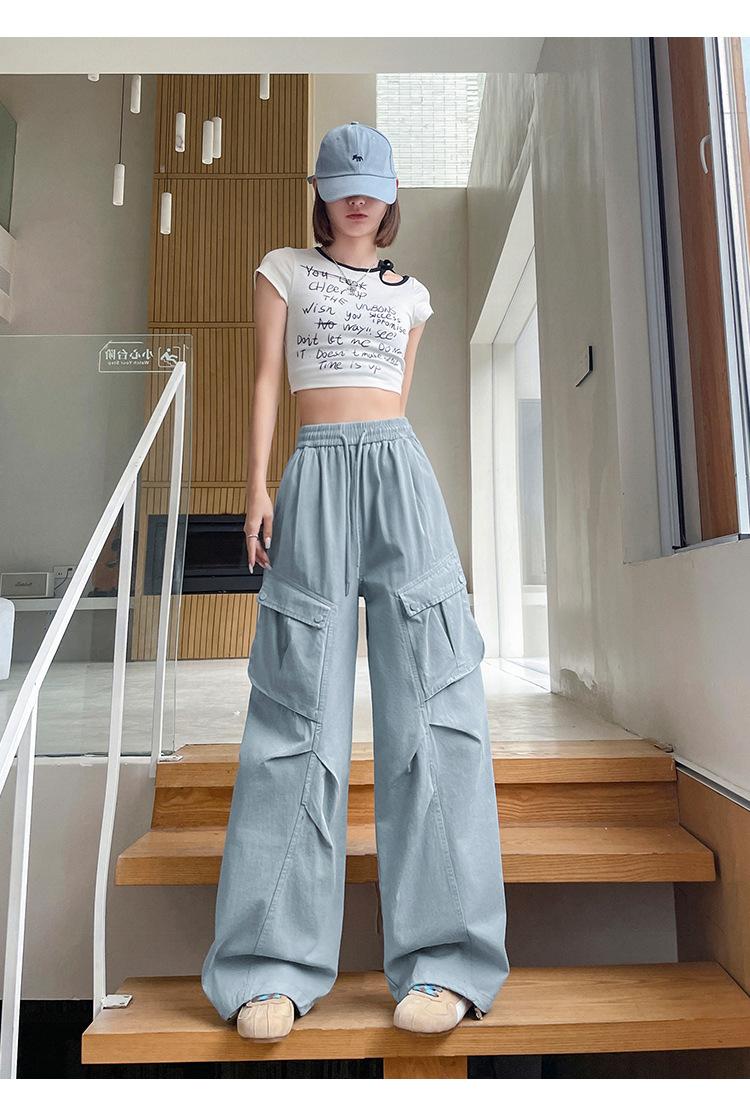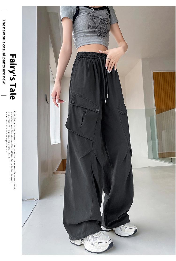 Pantalones Cargo de Bolsillo Grande Estilo Americano para Mujer Otoño Estilo Caliente 2025 Nuevo Cintura Alta Drapeado Mop Pierna Ancha Pierna Recta