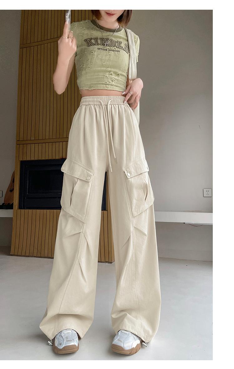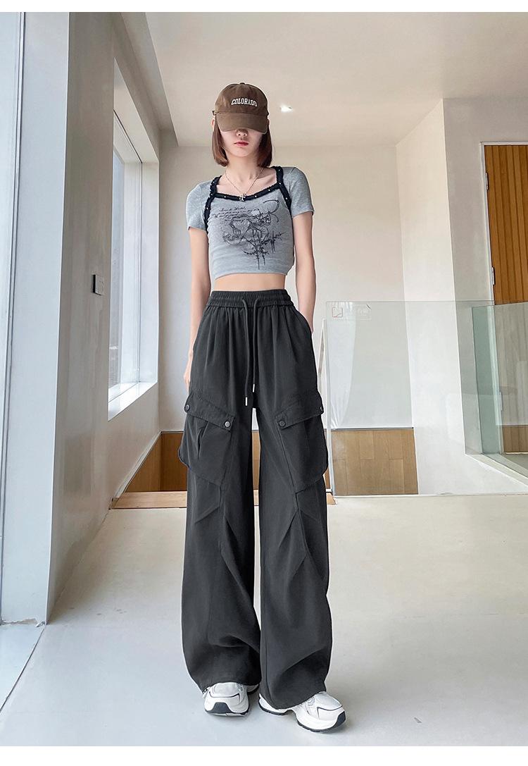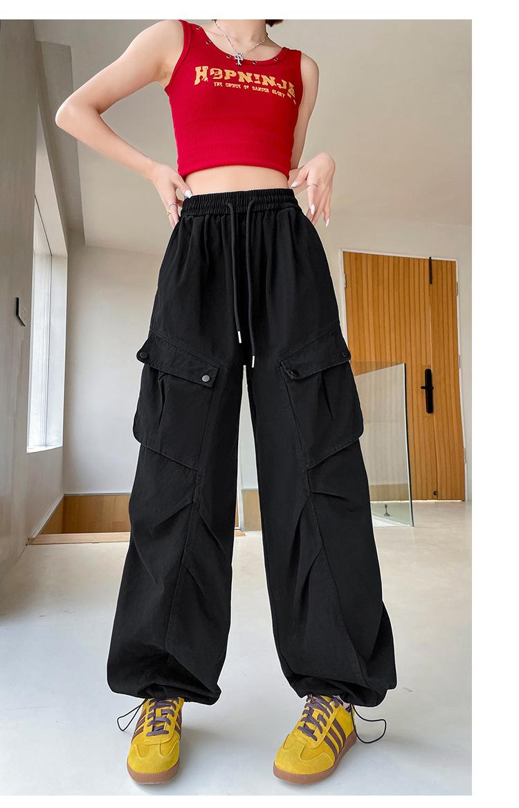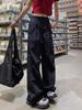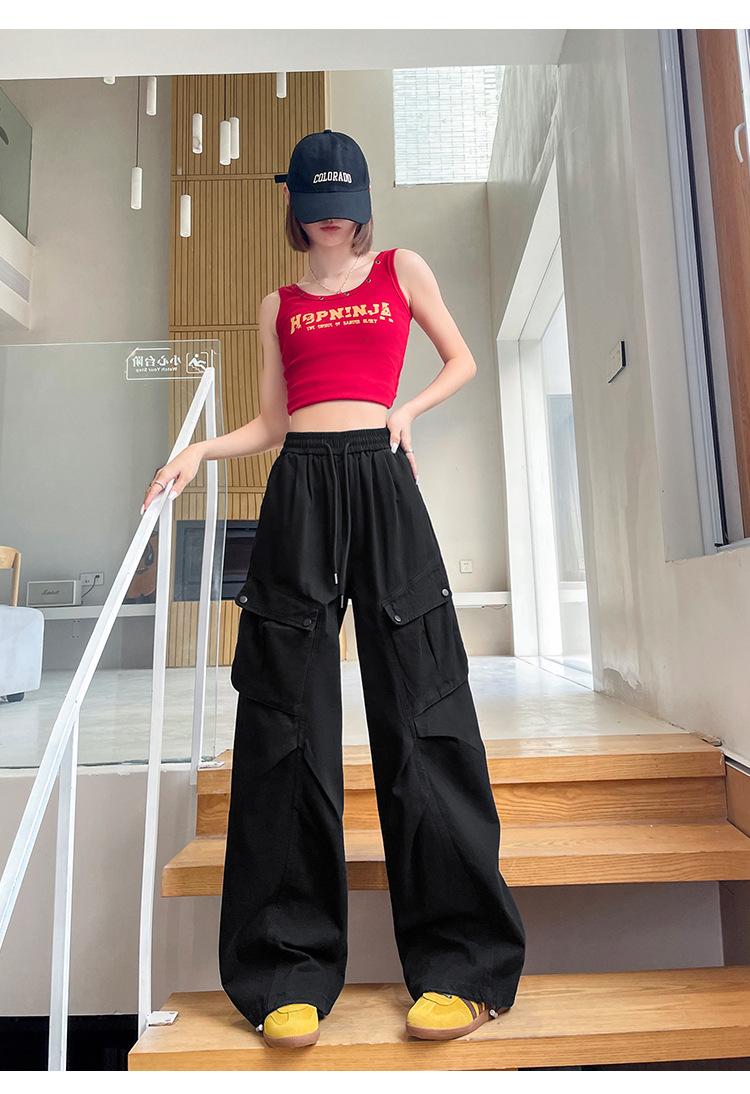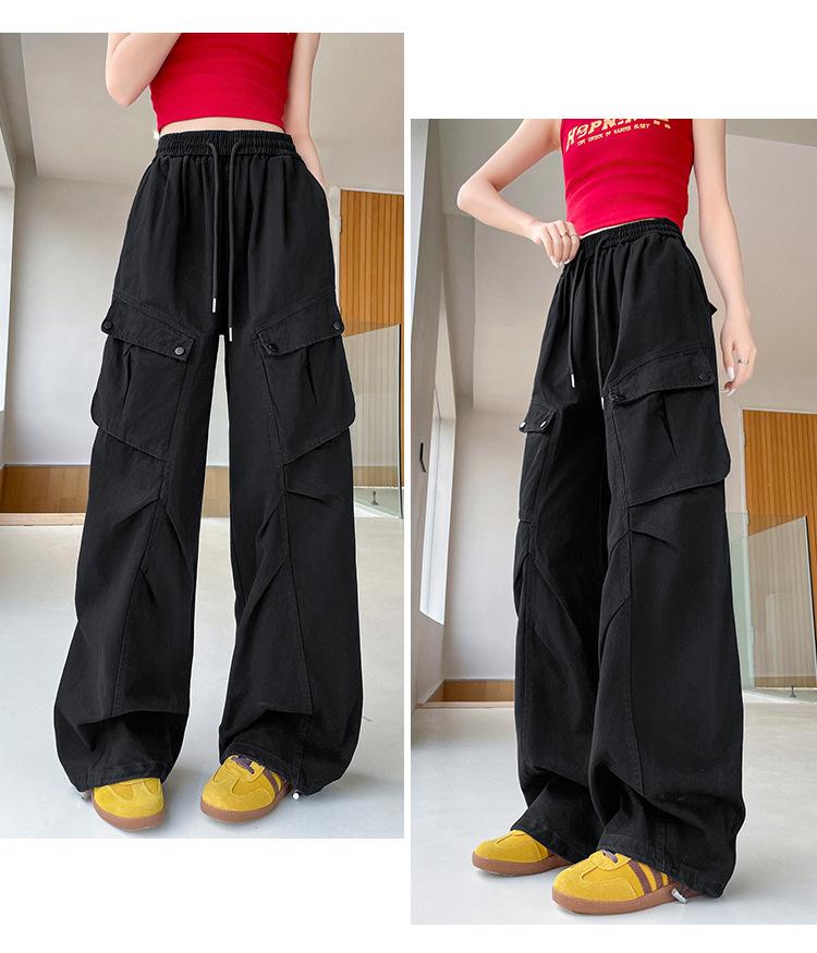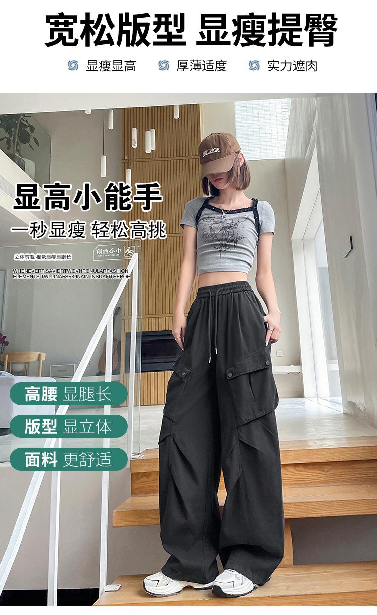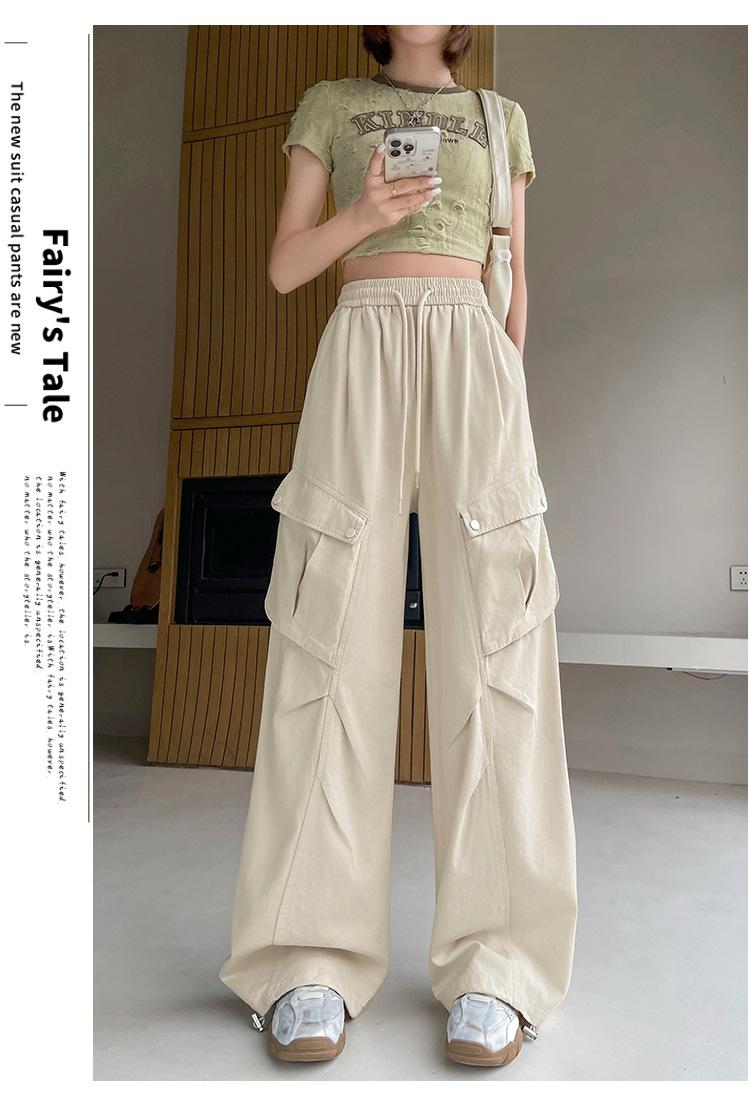 Pantalones Cargo de Bolsillo Grande Estilo Americano para Mujer Otoño Estilo Caliente 2025 Nuevo Cintura Alta Drapeado Mop Pierna Ancha Pierna Recta