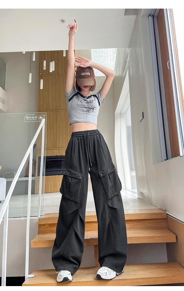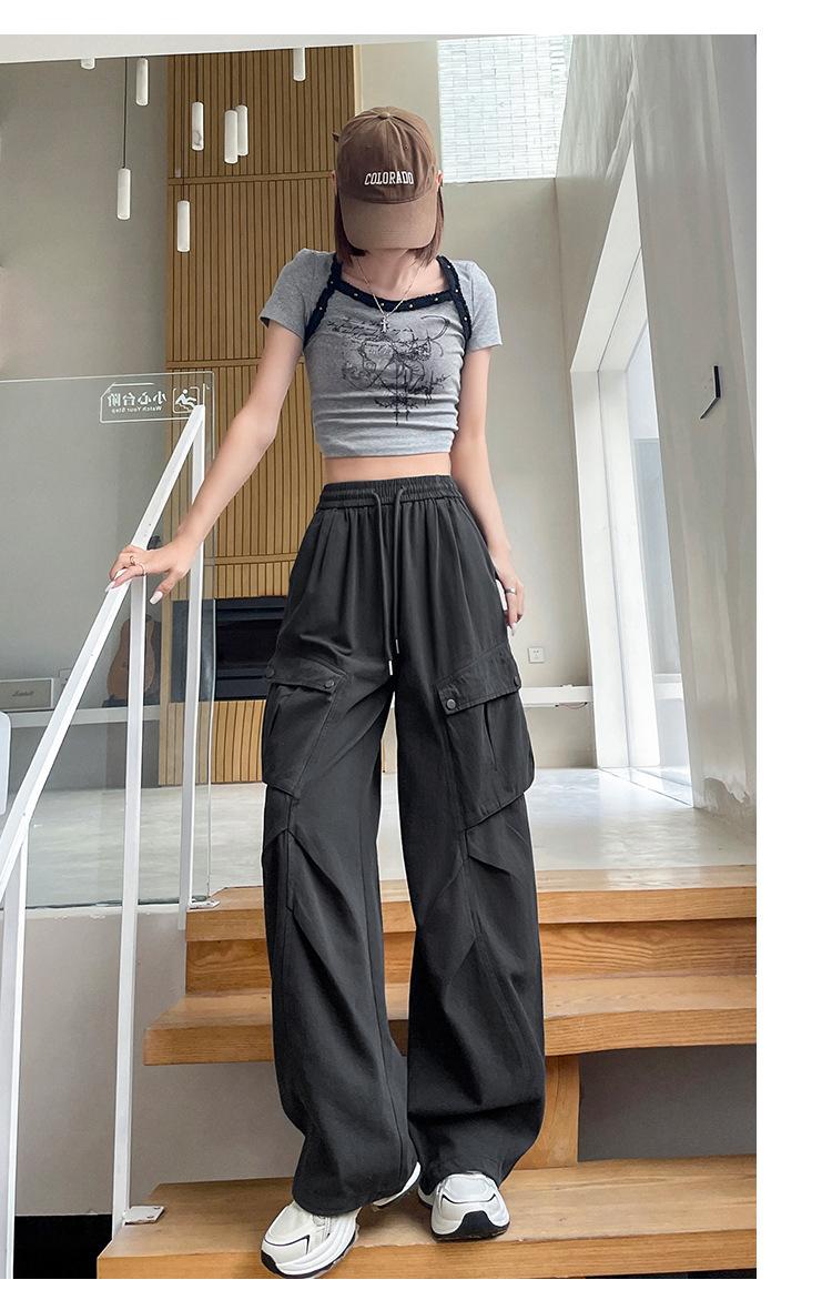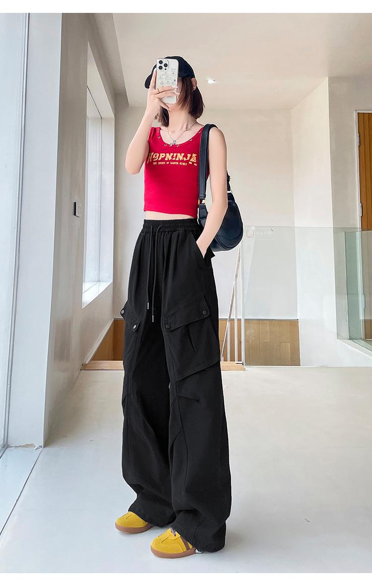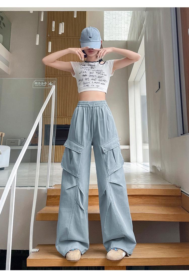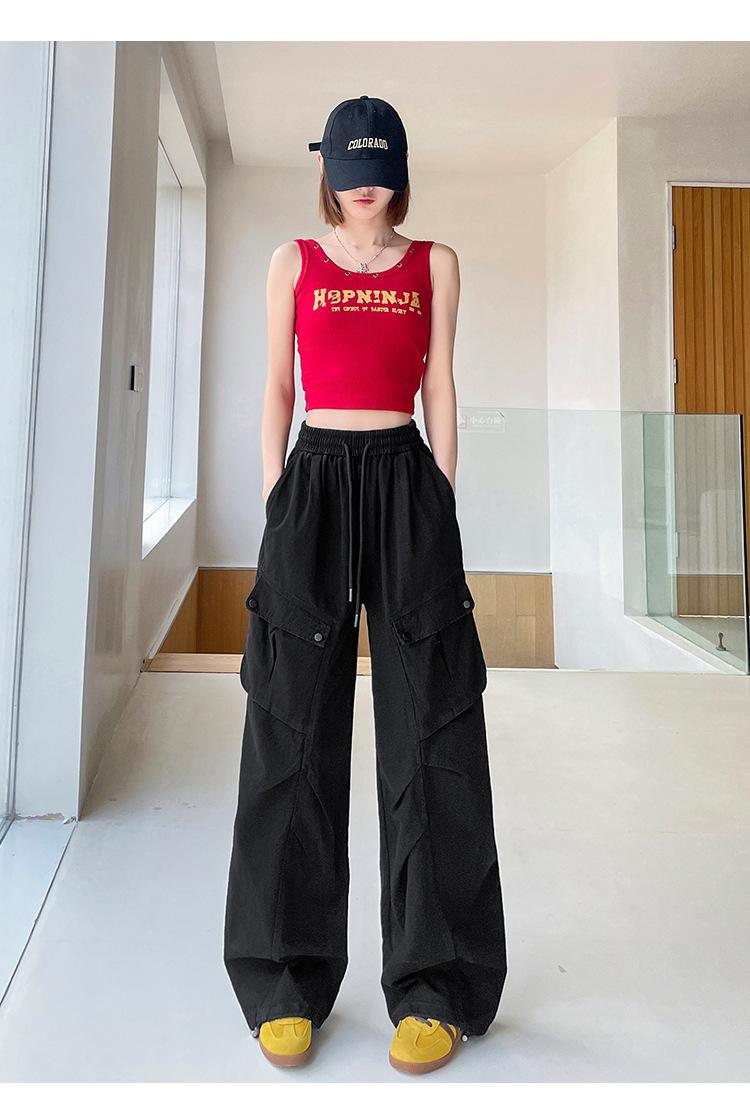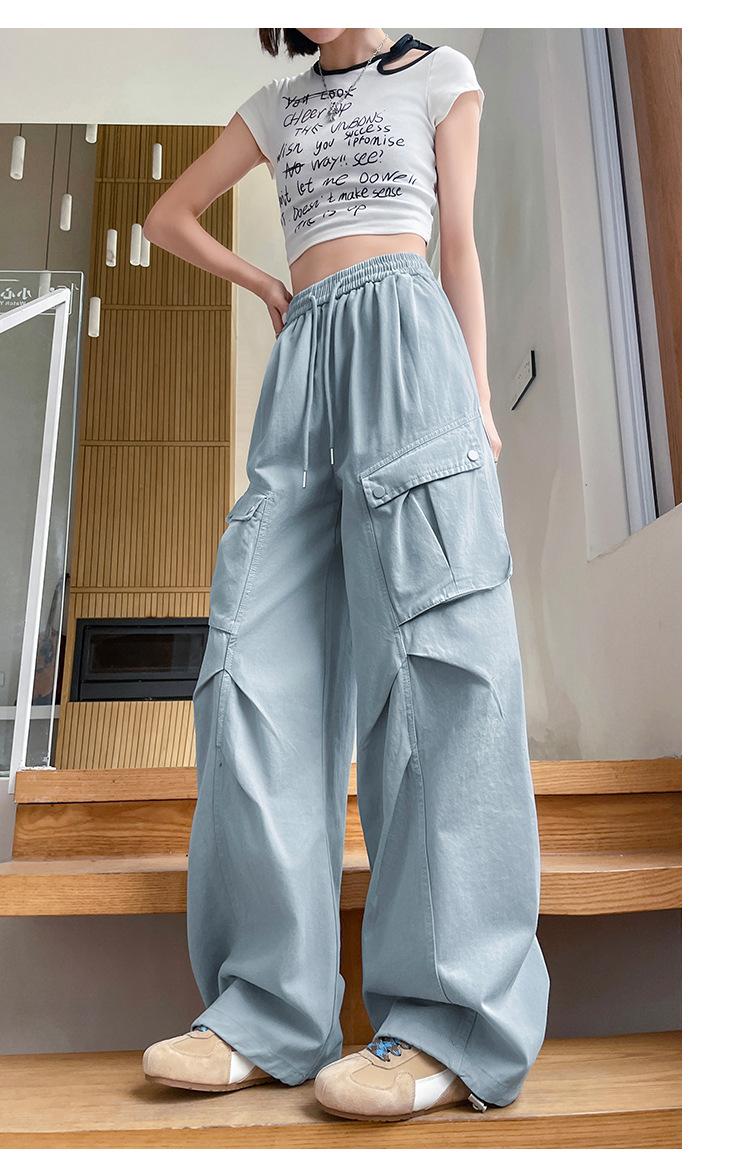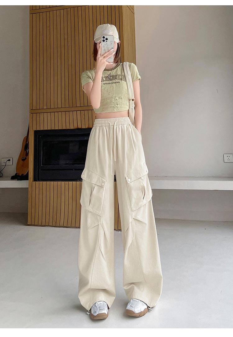 Pantalones Cargo de Bolsillo Grande Estilo Americano para Mujer Otoño Estilo Caliente 2025 Nuevo Cintura Alta Drapeado Mop Pierna Ancha Pierna Recta