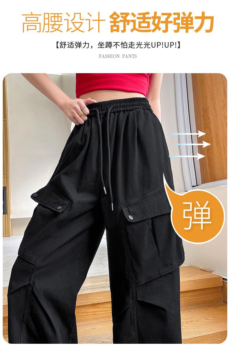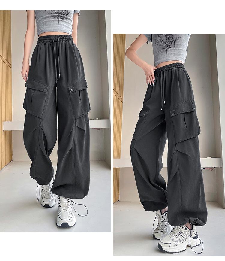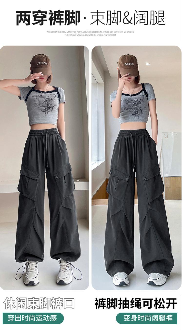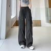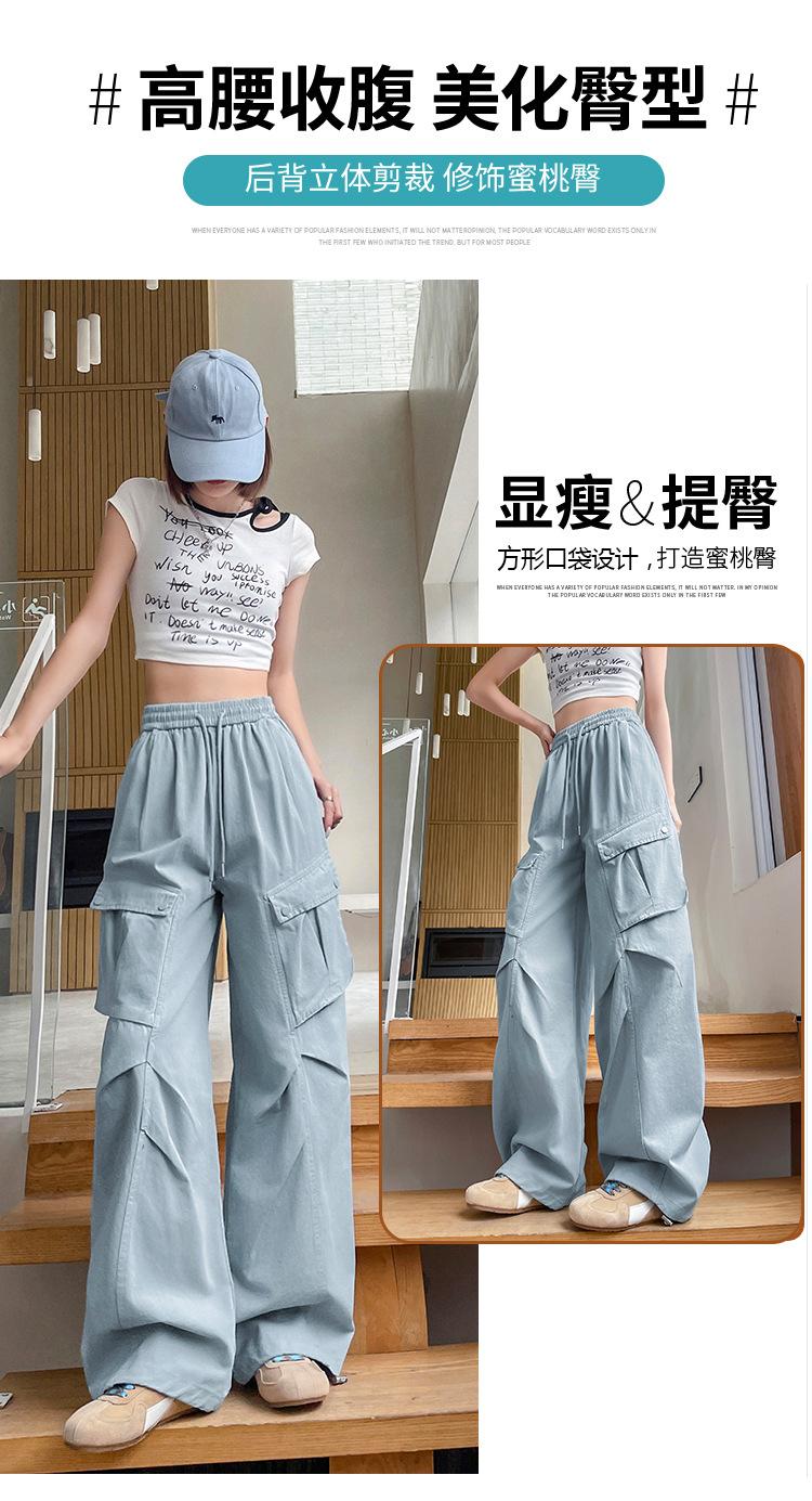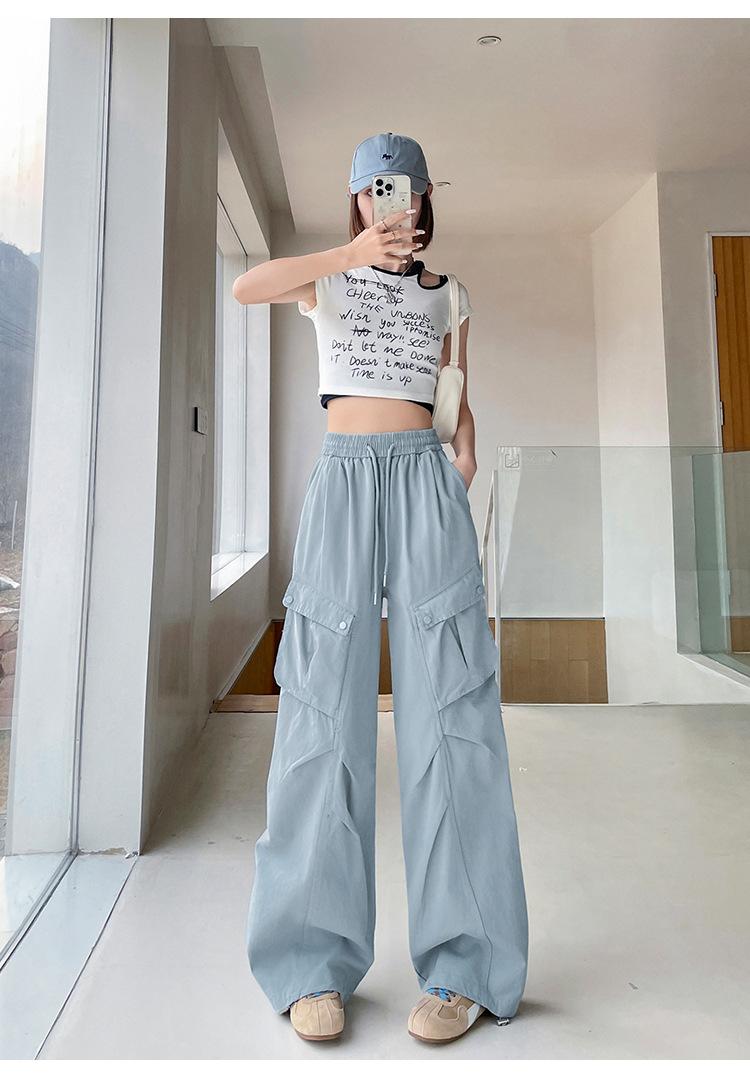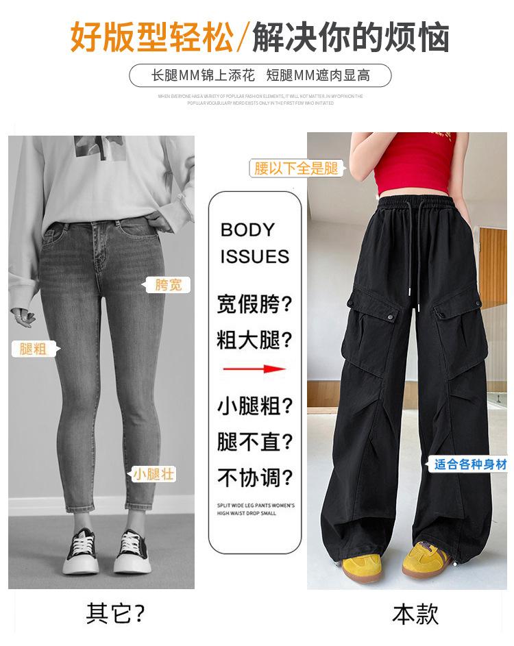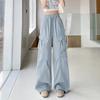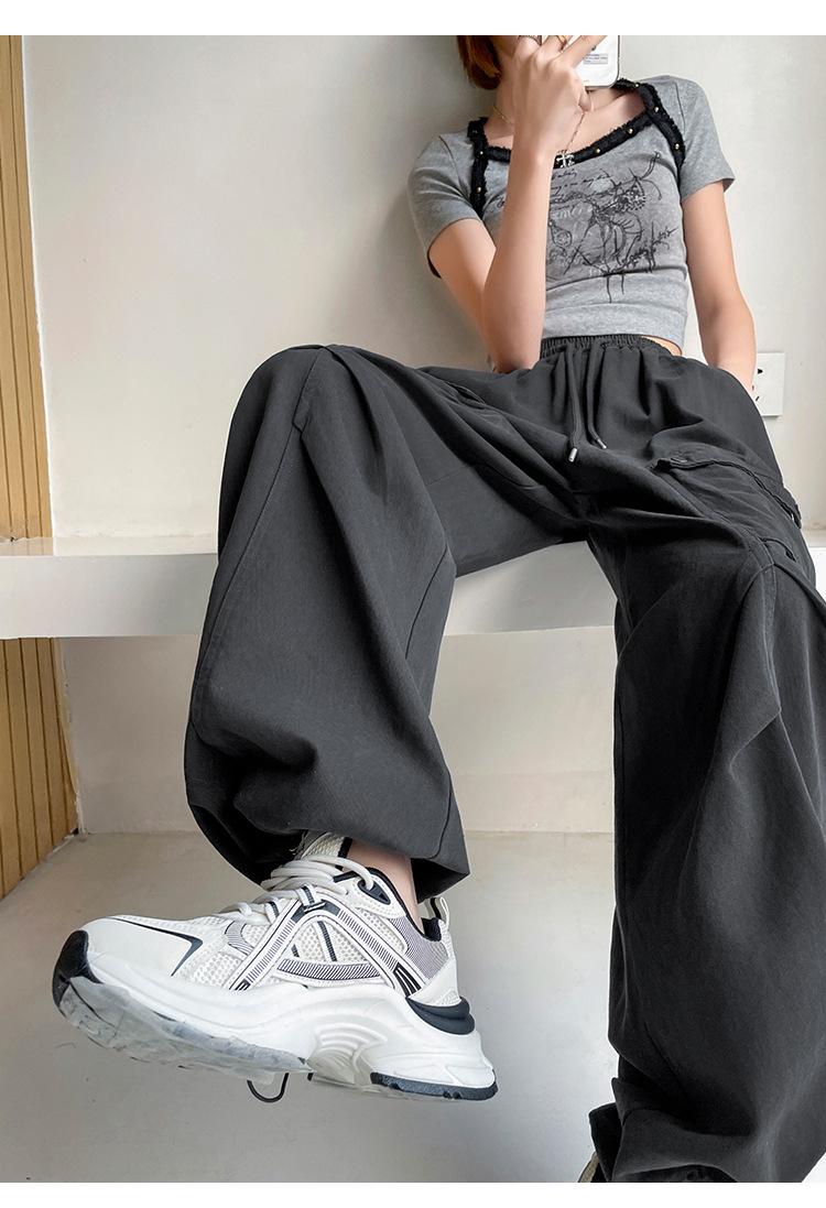 Pantalones Cargo de Bolsillo Grande Estilo Americano para Mujer Otoño Estilo Caliente 2025 Nuevo Cintura Alta Drapeado Mop Pierna Ancha Pierna Recta