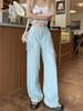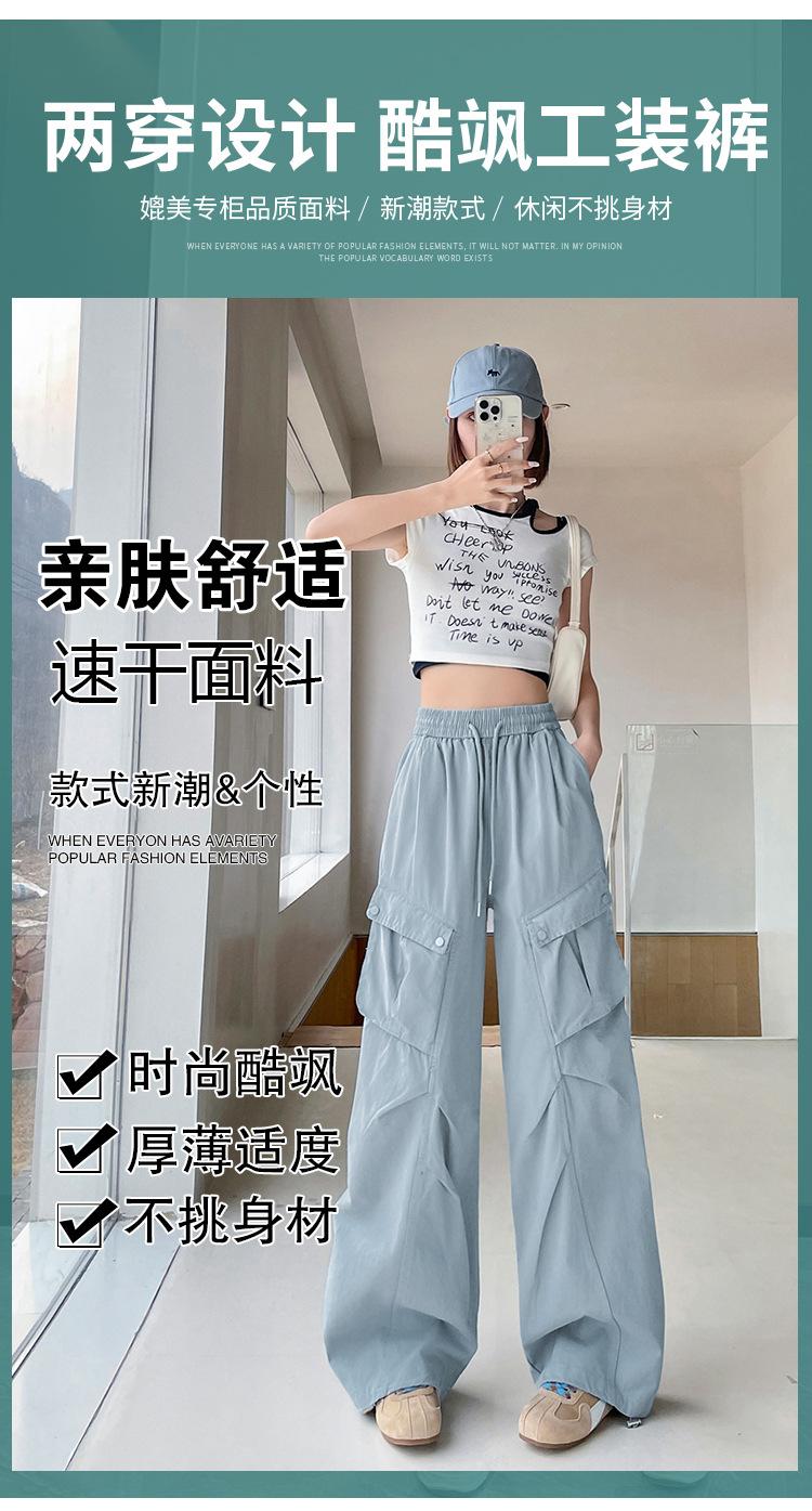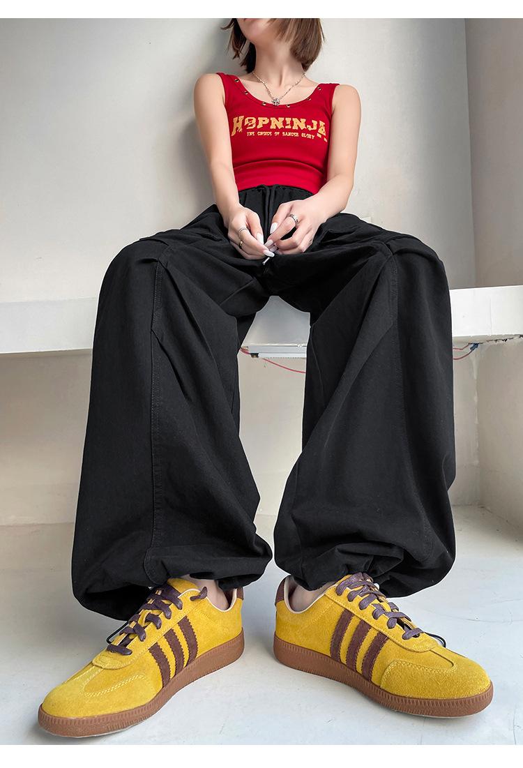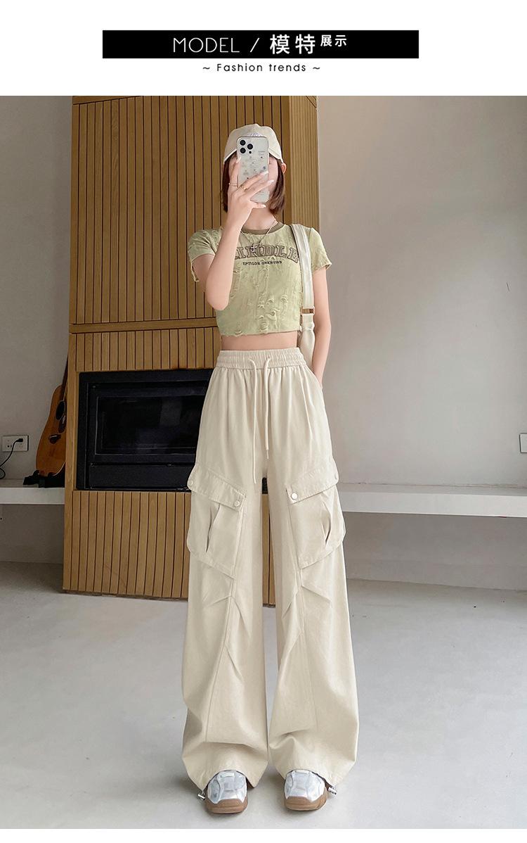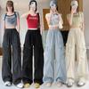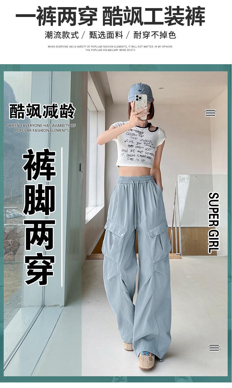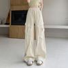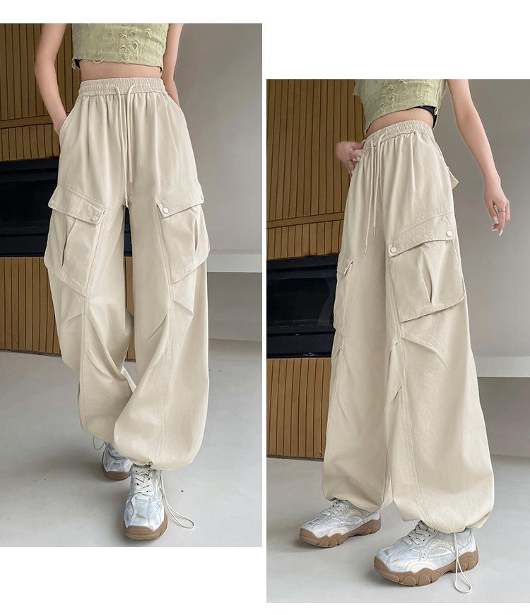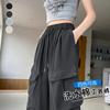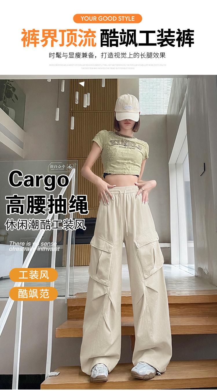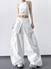 Pantalones Cargo de Bolsillo Grande Estilo Americano para Mujer Otoño Estilo Caliente 2025 Nuevo Cintura Alta Drapeado Mop Pierna Ancha Pierna Recta