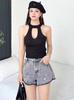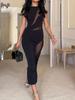 Tendencia de Moda Primavera 2024 Transfronteriza Europea y Americana Nuevo Camisola para Mujer con Encaje de Malla Ajustado con Hombros Descubiertos