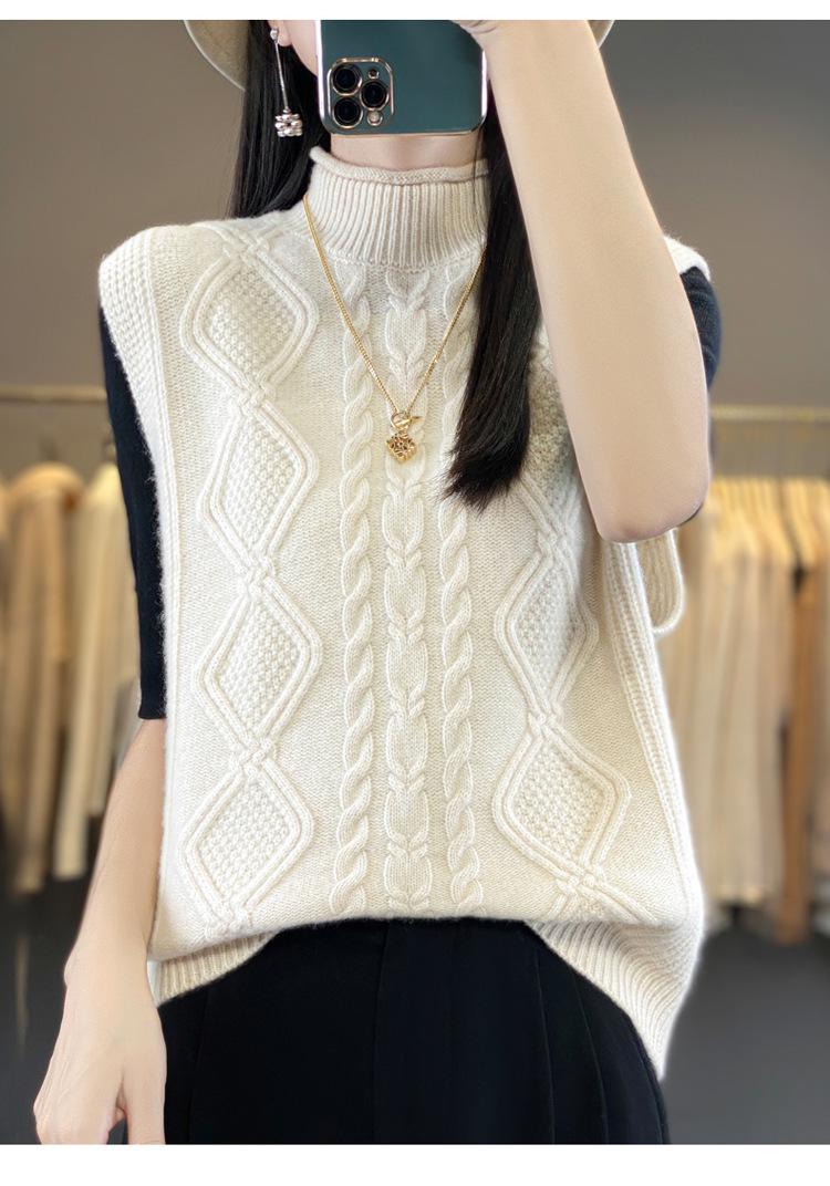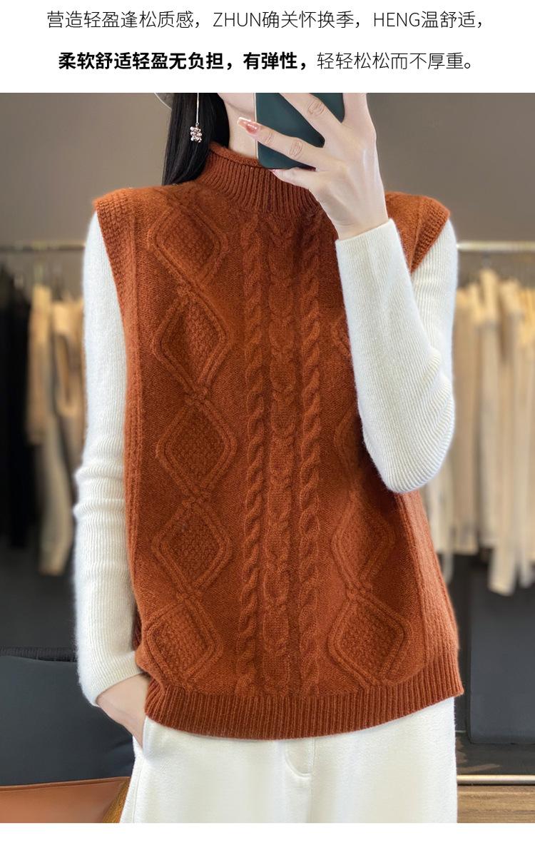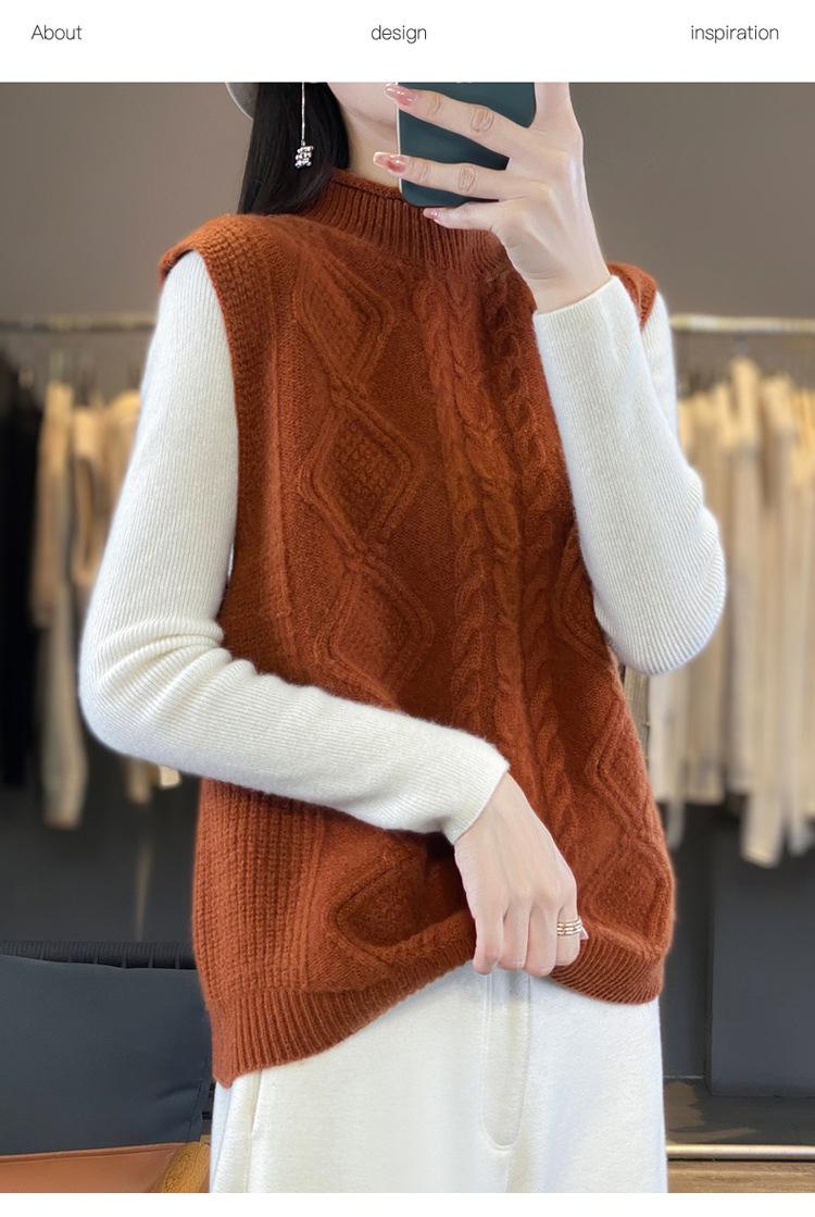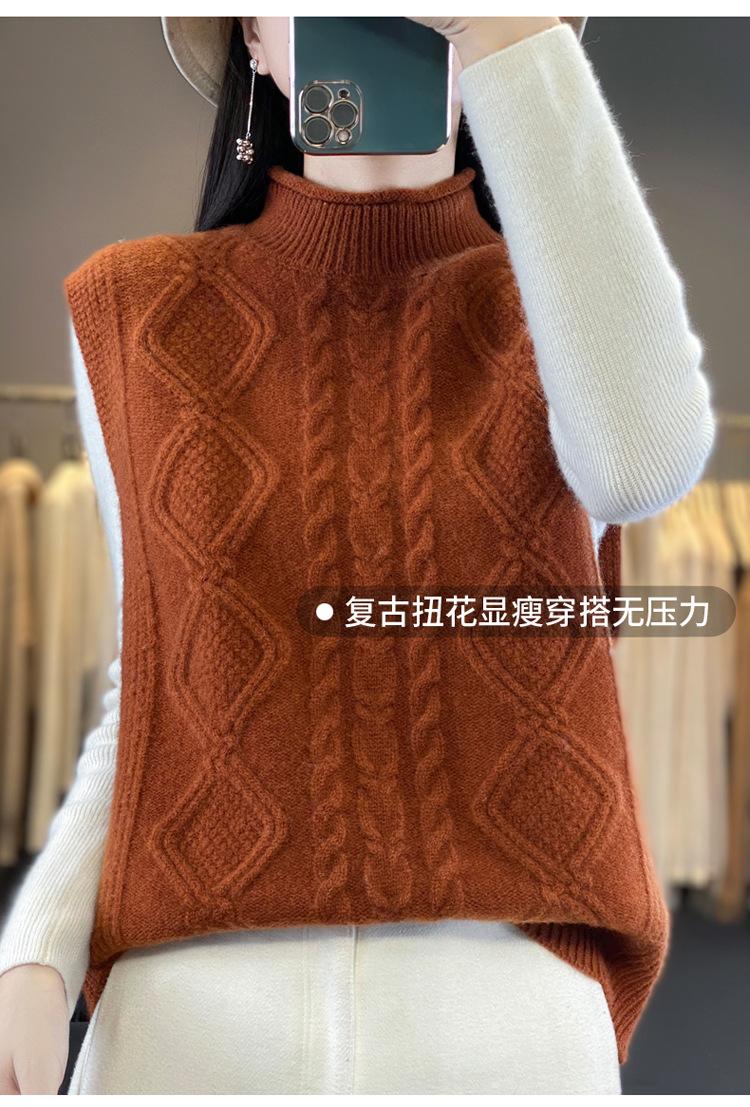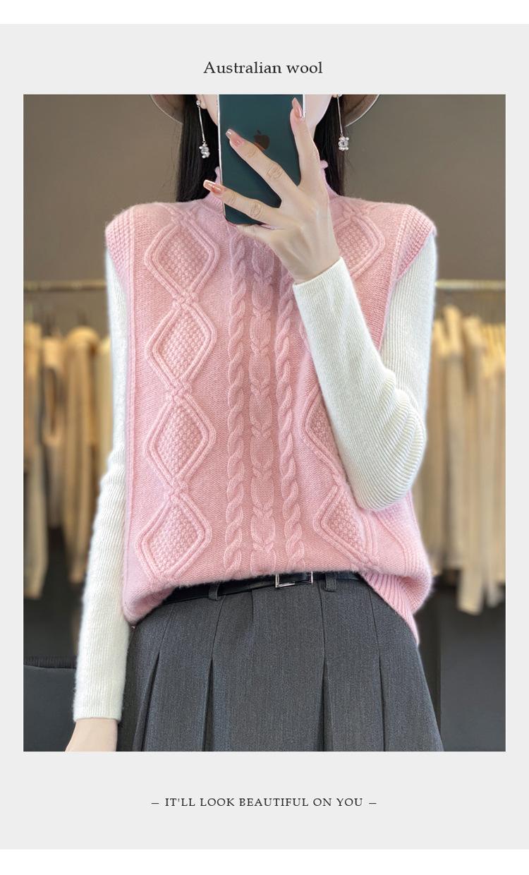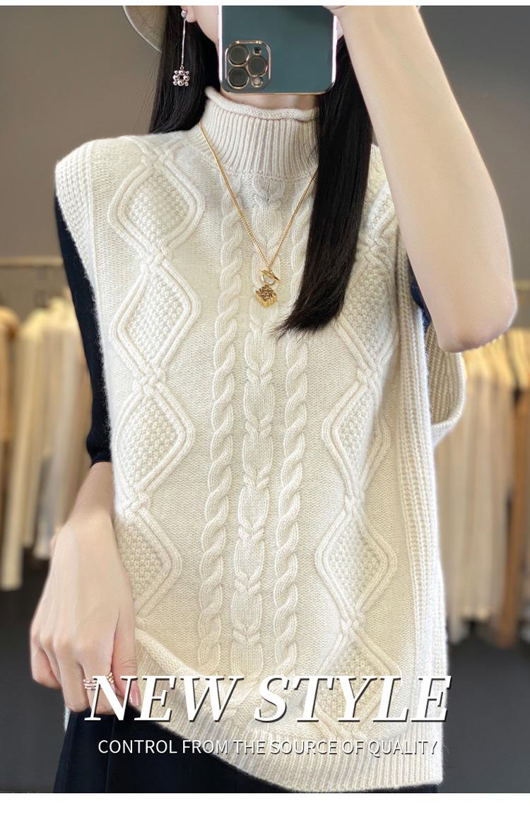 Otoño e Invierno 2024 Nuevo Chaleco Tejido de Lana Pura Pesado Jacquard Diamante Cuello Semialto Redondo Apilado Sin Mangas